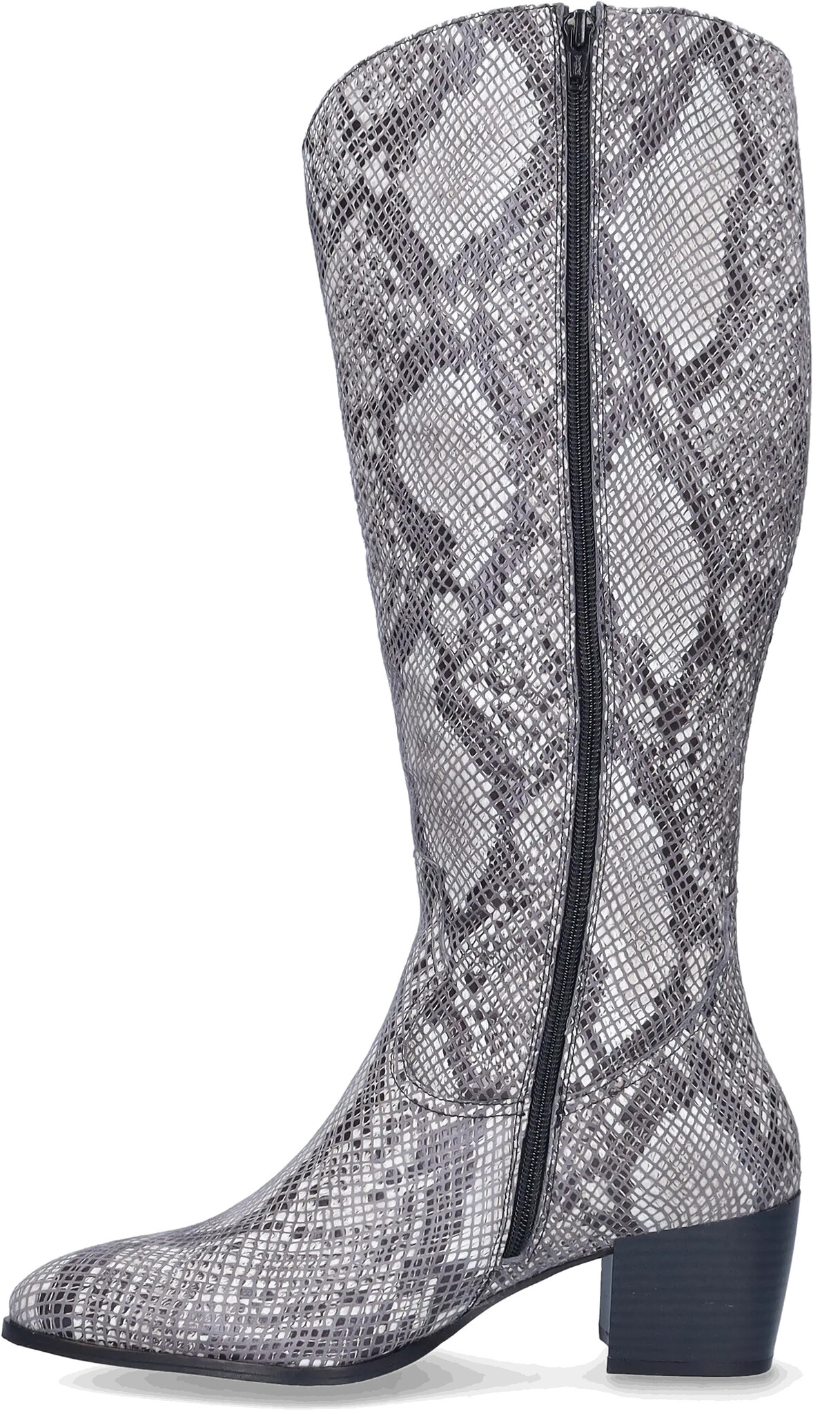 Adana ist ein schwarz-weißer Cowboy Stiefel mit extra breitem Schaft. Er hat dank des Schlangenlederprints einen trendigen Western-Look. Dieser Stiefeltyp hat ein bequemes und herausnehmbares Fußbett und ist in verschiedenen Farbvarianten erhältlich.