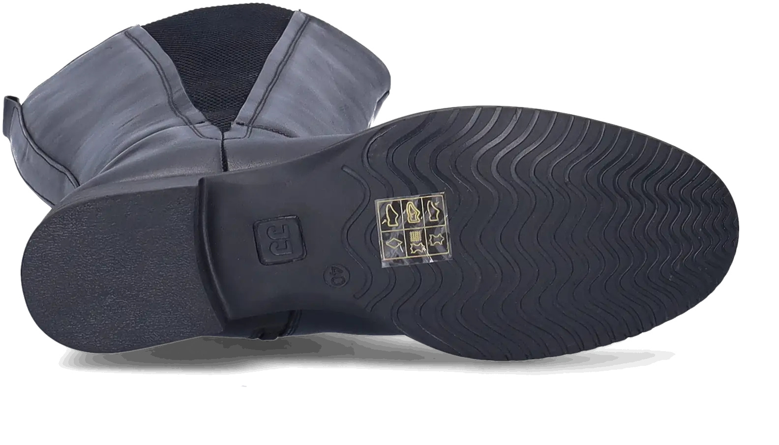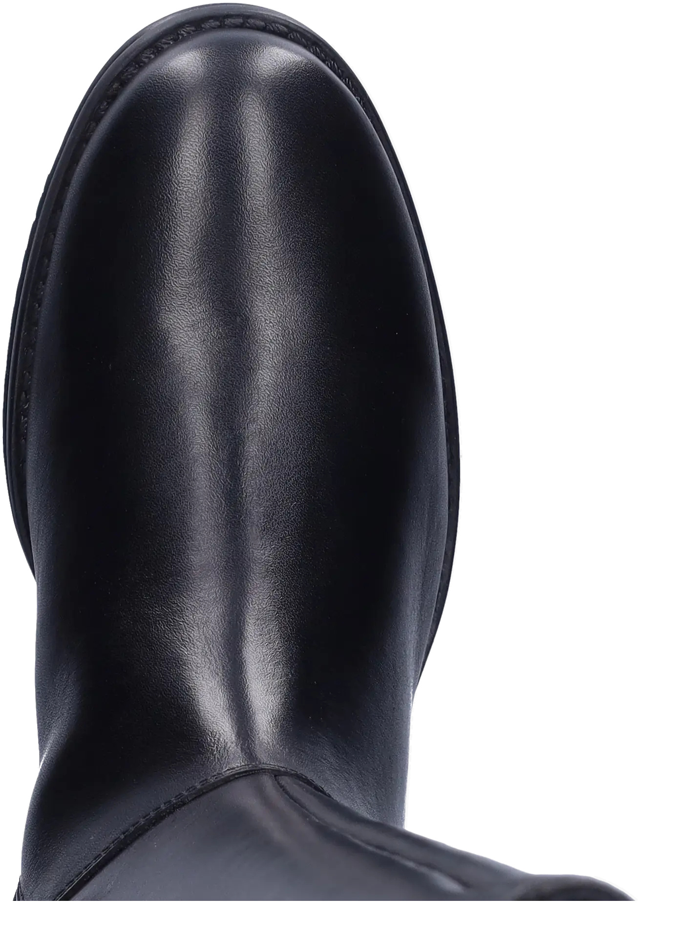 Bradstock ist ein schwarzer Stretch Weitschaftstiefel. Ausgestattet mit einem mittelhohen Absatz, runder Zehenpartie und Reißverschluss. Dieser Stiefel kann mit Einlegesohlen getragen werden.