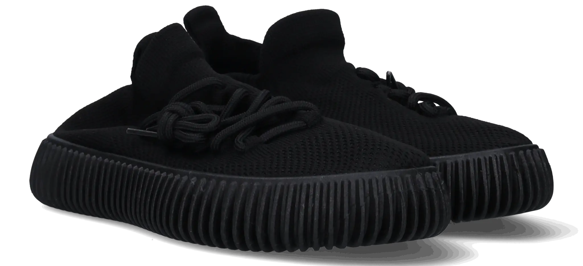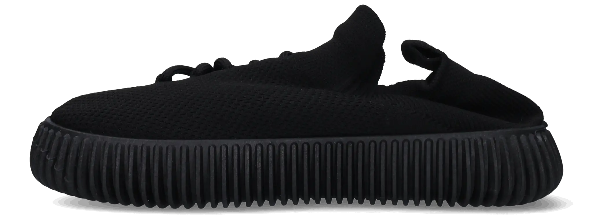 Cardigan ist ein bequemer, schwarzer Sneaker aus flexiblem Stretch-Textil, der sich perfekt an den Fuß anschmiegt. Der Schuh ist mit einer Schnürung und einer markanten, geriffelten Sohle versehen.