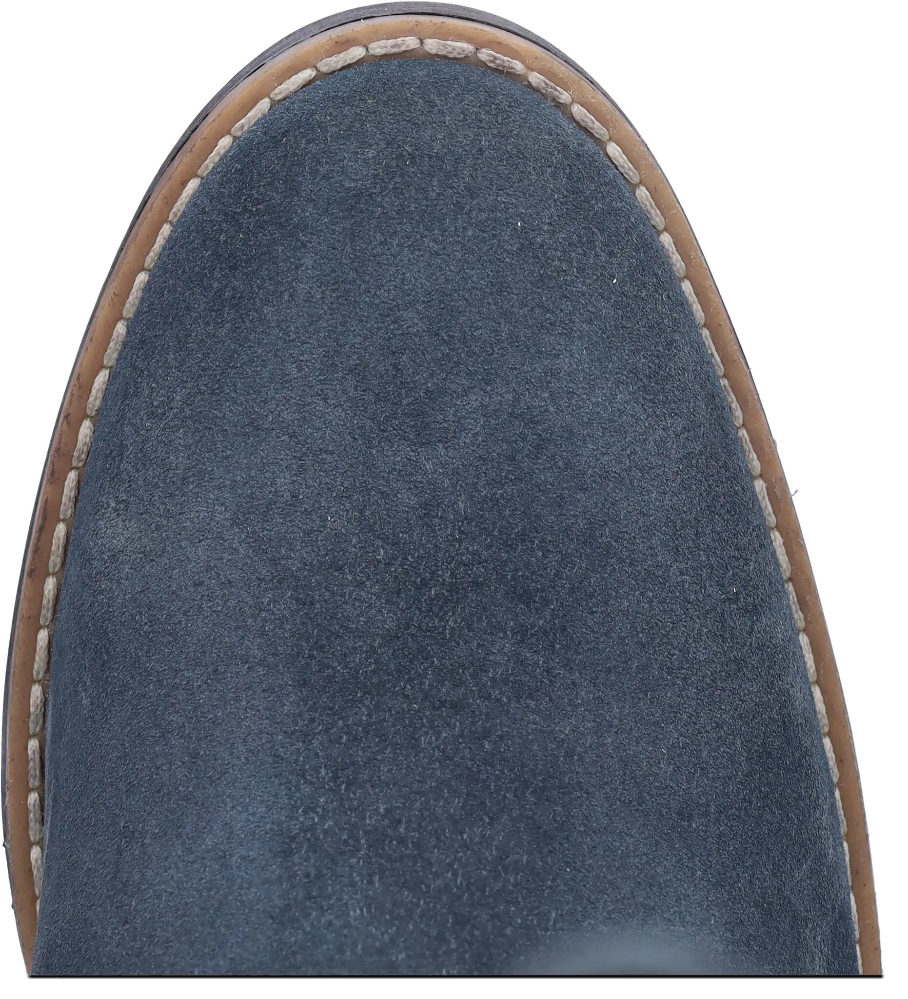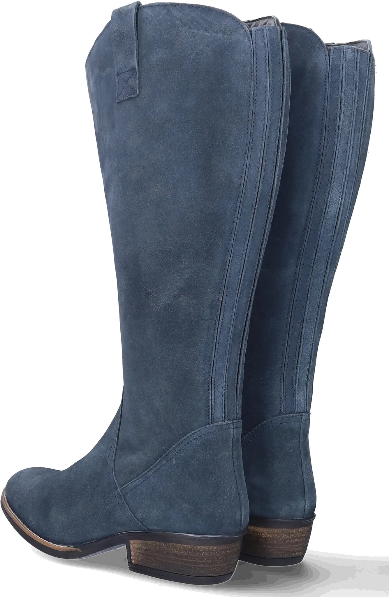 Die Jeans-Variante von Ferryhilll ist ein Wildleder Weitschaftstiefel im Cowboy-Stil. Ausgestattet mit Western-Elementen, einem kubanischen Absatz und einem seitlichen Reißverschluss. Geeignet für Einlagen.