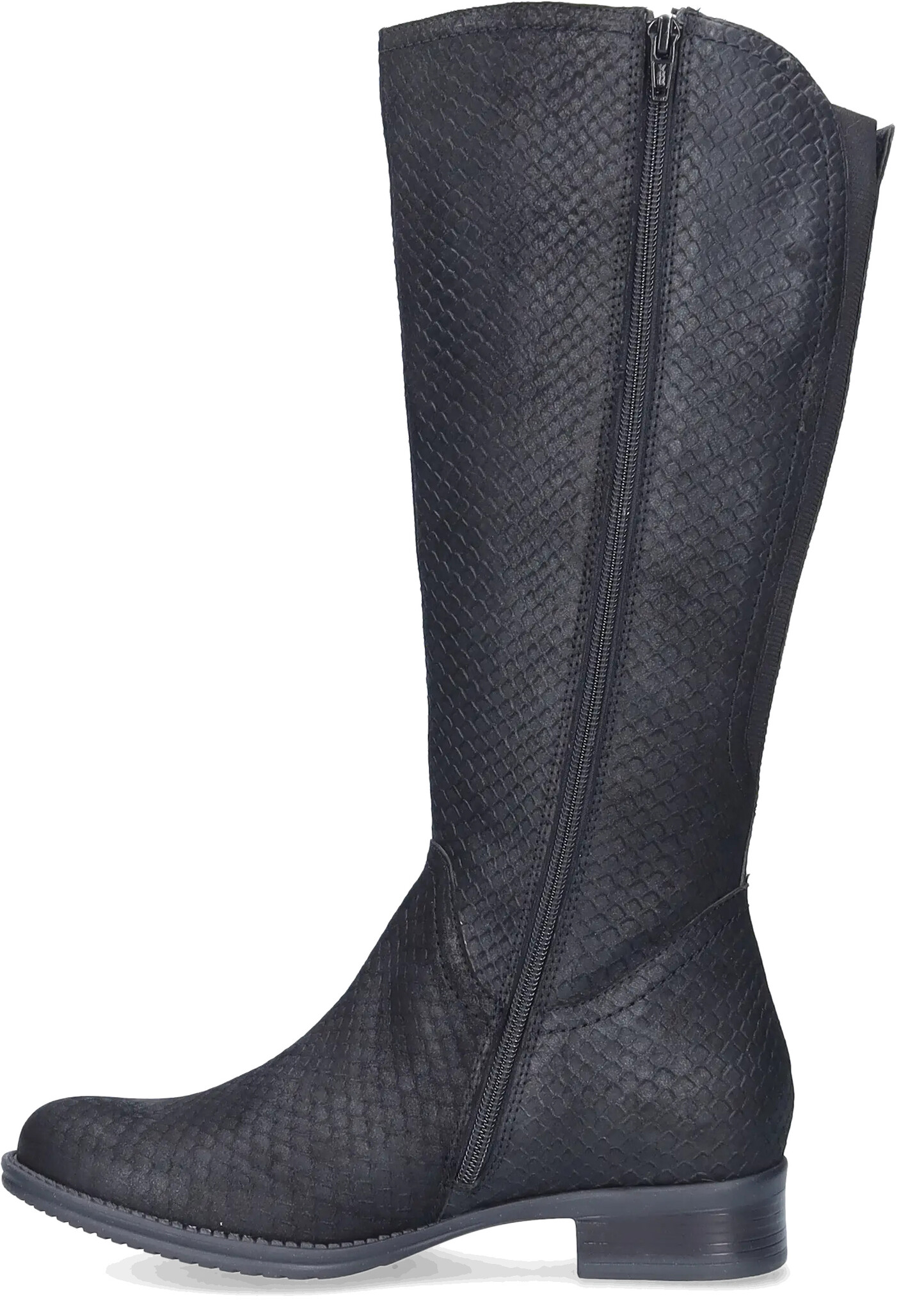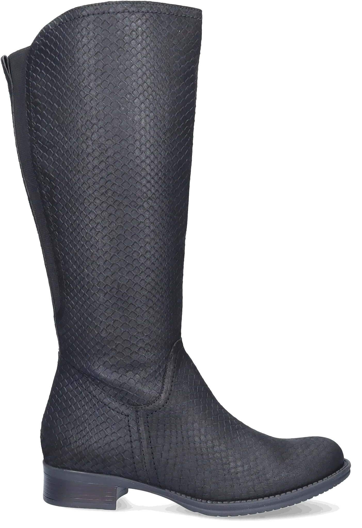 Der schwarze Flensburg ist ein Weitschaftstiefel für Damen und verfügt über eine flexible, rutschfeste Sohle, was ihn für orthopädische Einlagen geeignet macht. Erhältlich in verschiedenen Farben.