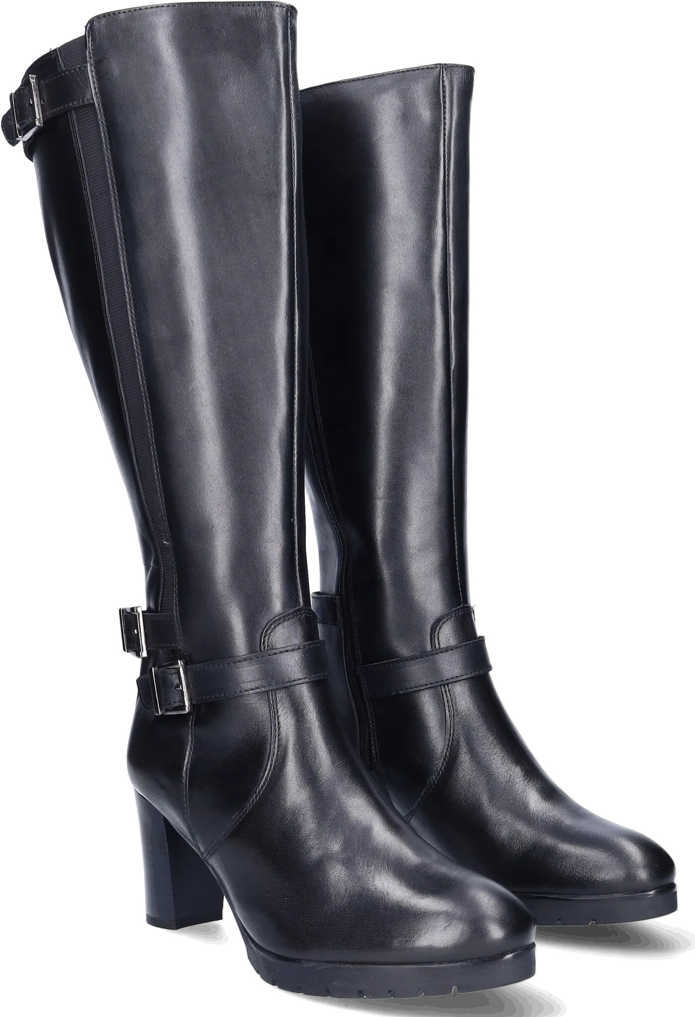 Gosford ist ein eleganter, schwarzer, kniehoher Weitschaftstiefel aus Leder mit einem hohen Absatz. Markante Schnallenverschlüsse befinden sich am Knöchel und am oberen Ende des Schafts. Dieser Stiefel hat einen durchgehenden Reißverschluss, der das An- und Ausziehen erleichtert. Darüber hinaus verfügt dieses Modell über herausnehmbare Einlagen, sodass auch orthopädische Einlagen getragen werden können. Erhältlich in verschiedenen Farbvarianten.