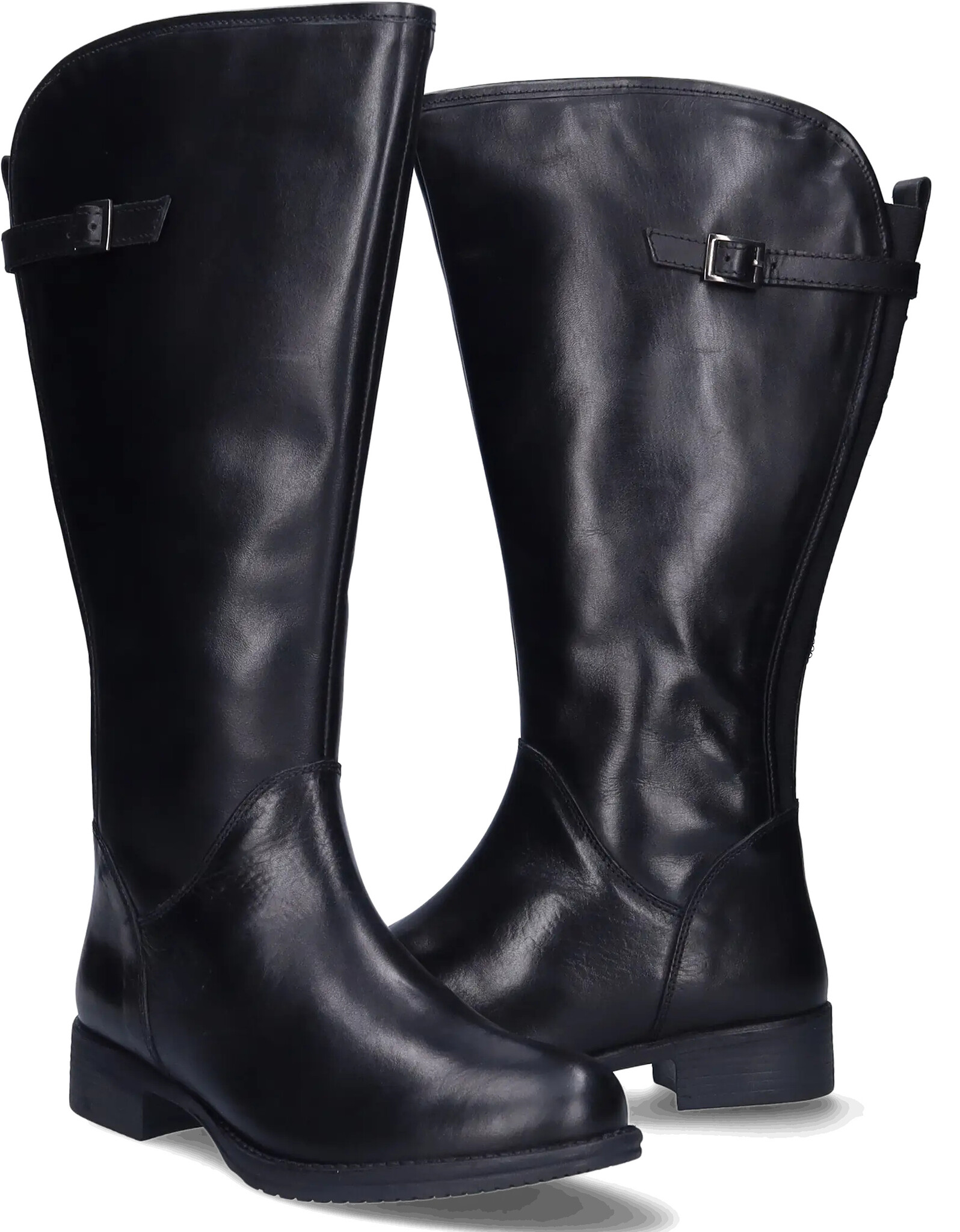 Kreta ist ein Weitschaftstiefel, gefertigt aus weichem schwarzen Leder. Es ist eine raffinierte Version des klassischen Reitstiefels, komplettiert durch ein stilvolles Schnallendetail. Dank der Stretch-Einsätze bietet der Stiefel zusätzlichen Komfort und eine flexible Passform. Die flexible Anti-Rutsch-Sohle sorgt für Stabilität und die herausnehmbaren Einlegesohlen ermöglichen das Tragen von orthopädischen Einlagen.