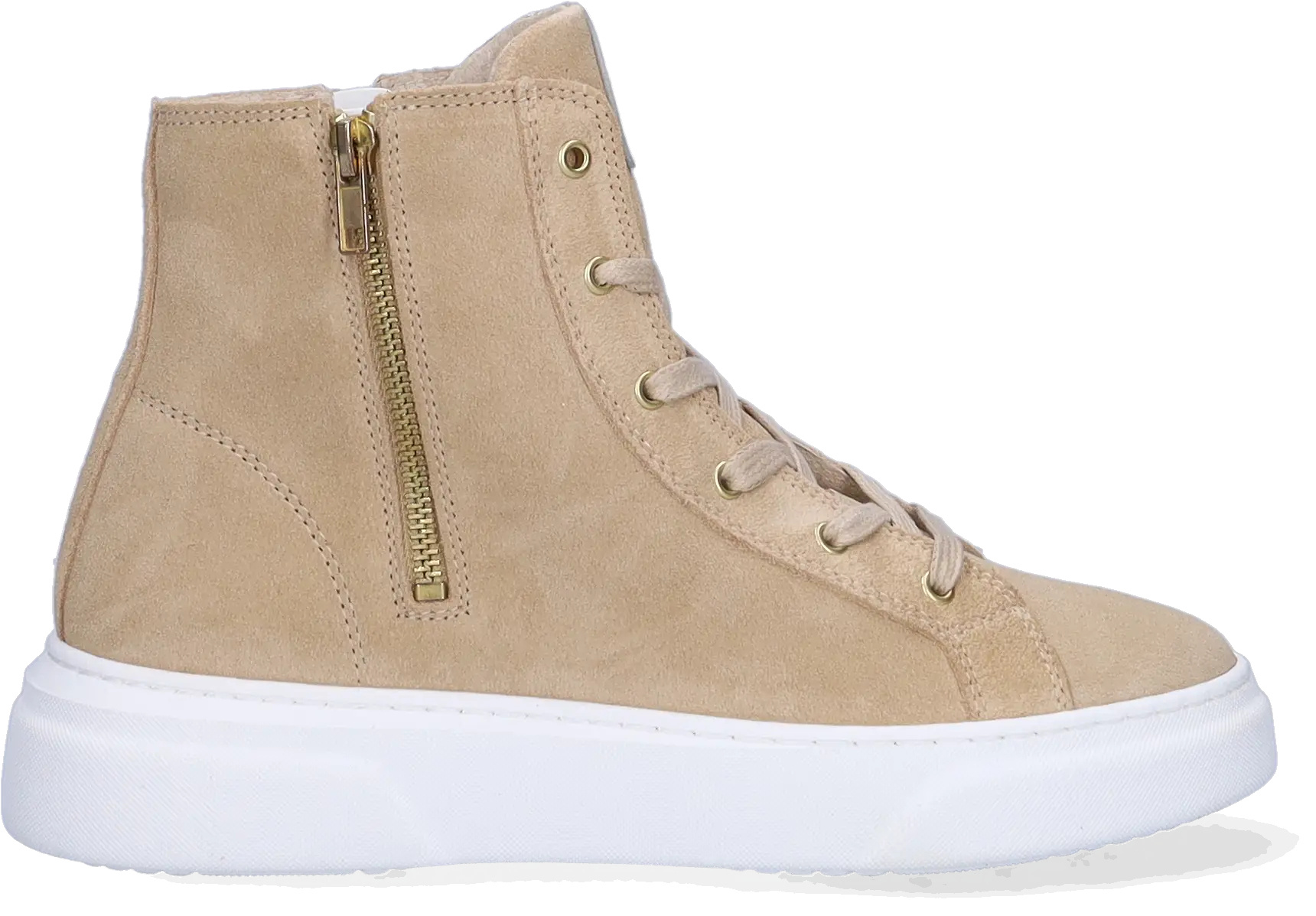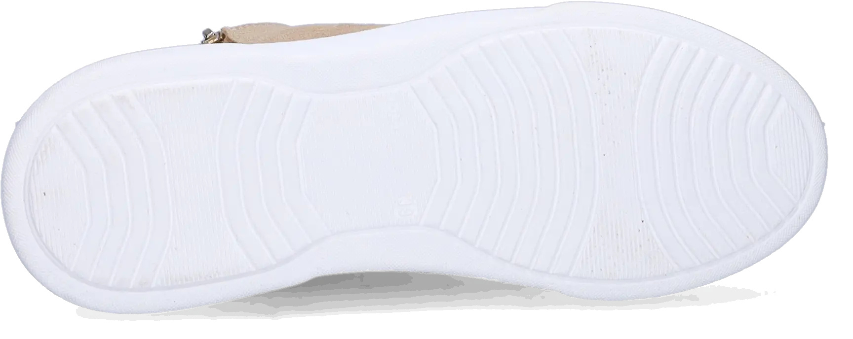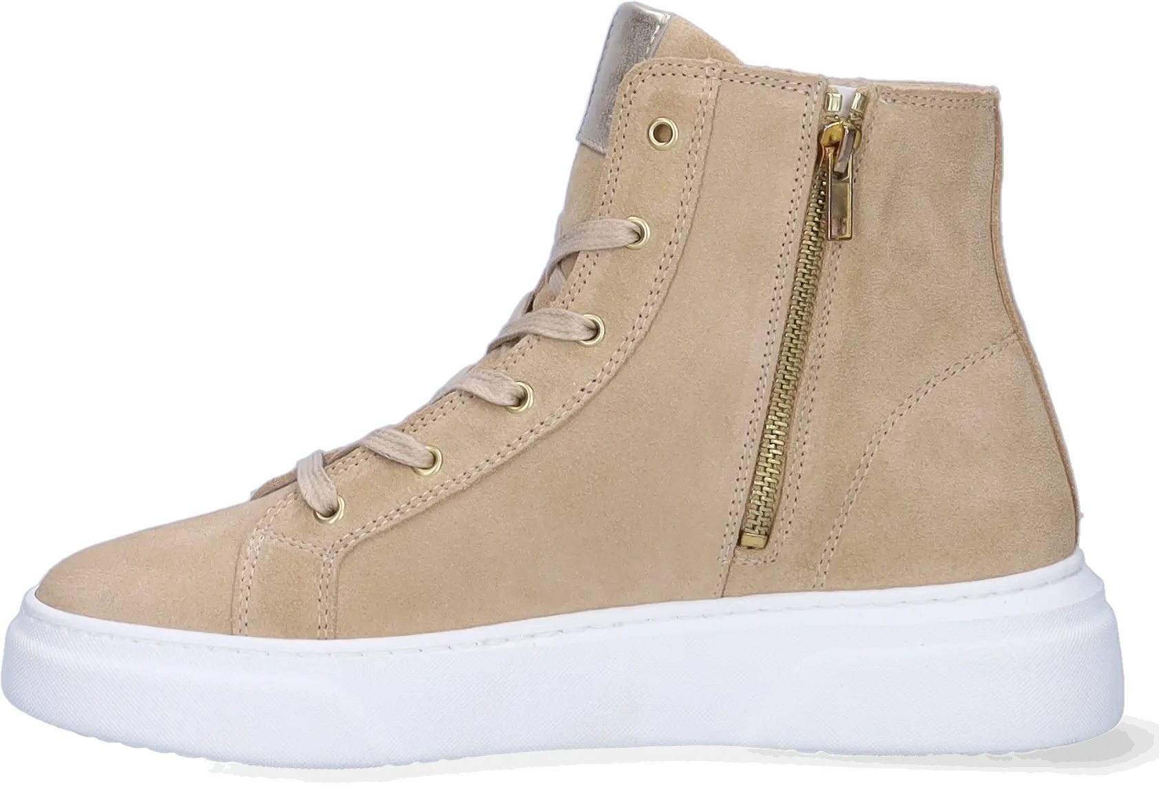 Der beige La Paz ist ein Wildleder-Sneaker für Damen mit schmalen Füßen. Ausgestattet mit einem hohen Spann, einem seitlichen Reißverschluss, Schnürung und weißer Sohle. Er verfügt über ein herausnehmbares Fußbett.