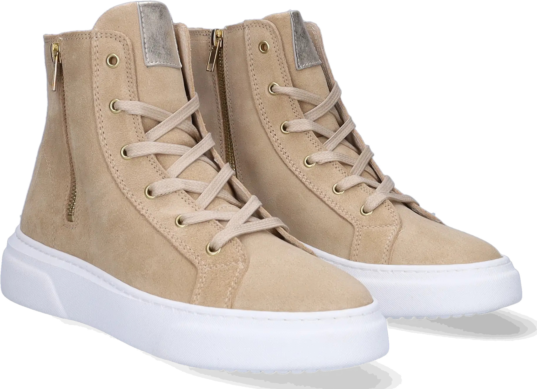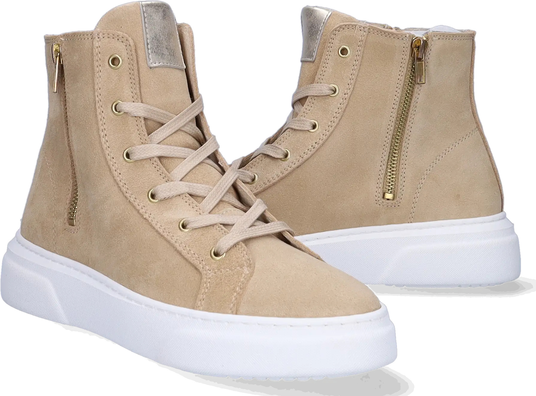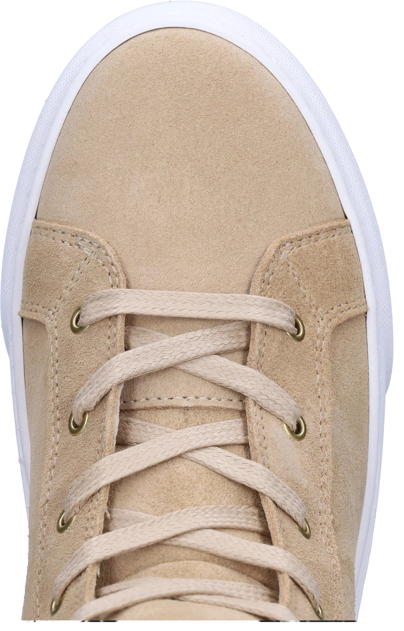 Der beige La Paz ist ein Wildleder-Sneaker für Damen mit schmalen Füßen. Ausgestattet mit einem hohen Spann, einem seitlichen Reißverschluss, Schnürung und weißer Sohle. Er verfügt über ein herausnehmbares Fußbett.