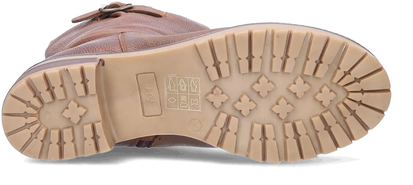 Maldon ist eine robuste, braune, schmale Stiefelette aus Leder. Ausgestattet mit einer verstellbaren Schnalle, einem Blockabsatz, einem seitlichen Reißverschluss und einer stabilen rutschfesten Gummisohle. Dieses Modell ist für das Tragen von Einlegesohlen geeignet.