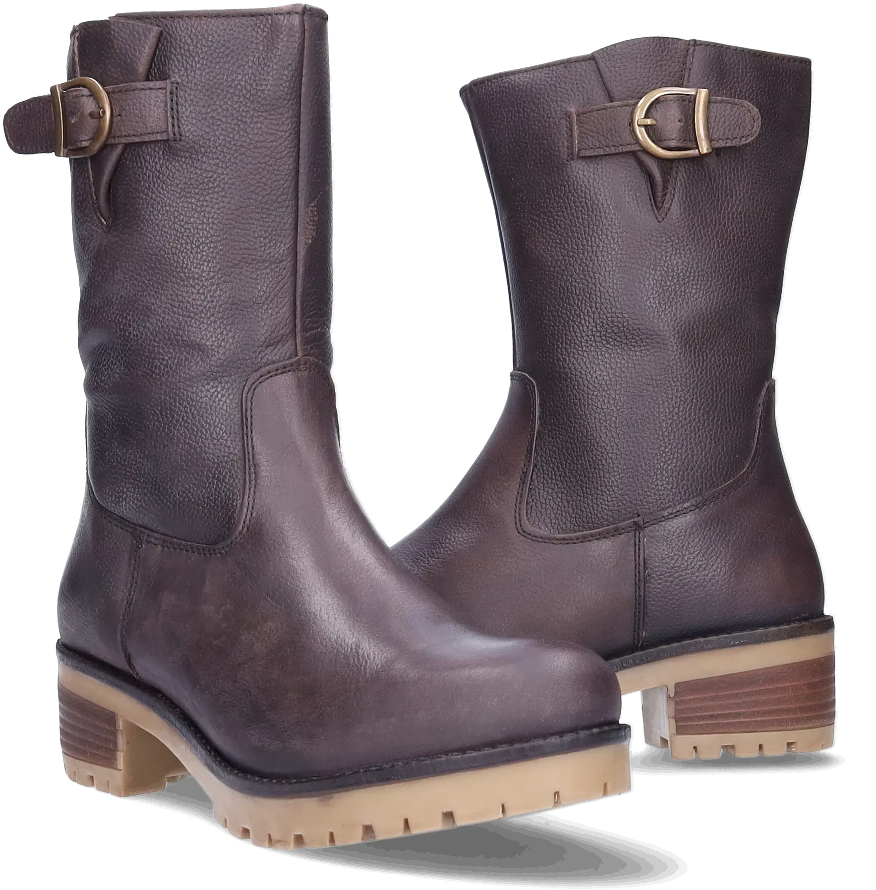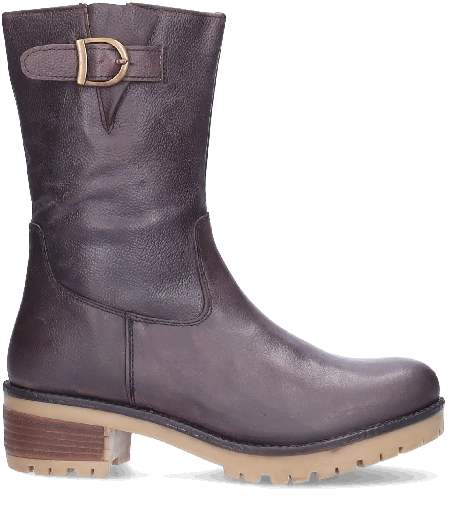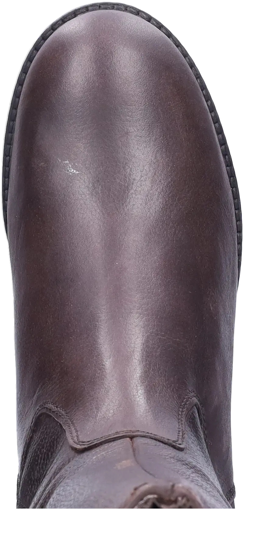 Maldon ist ein robuster, espressfarbener Leder-Stiefelette für schmale Füße. Ausgestattet mit einer verstellbaren Schnalle, einem Blockabsatz, einem seitlichen Reißverschluss und einer robusten Anti-Rutsch-Gummisohle. Dieses Modell ist für das Tragen von Einlagen geeignet.