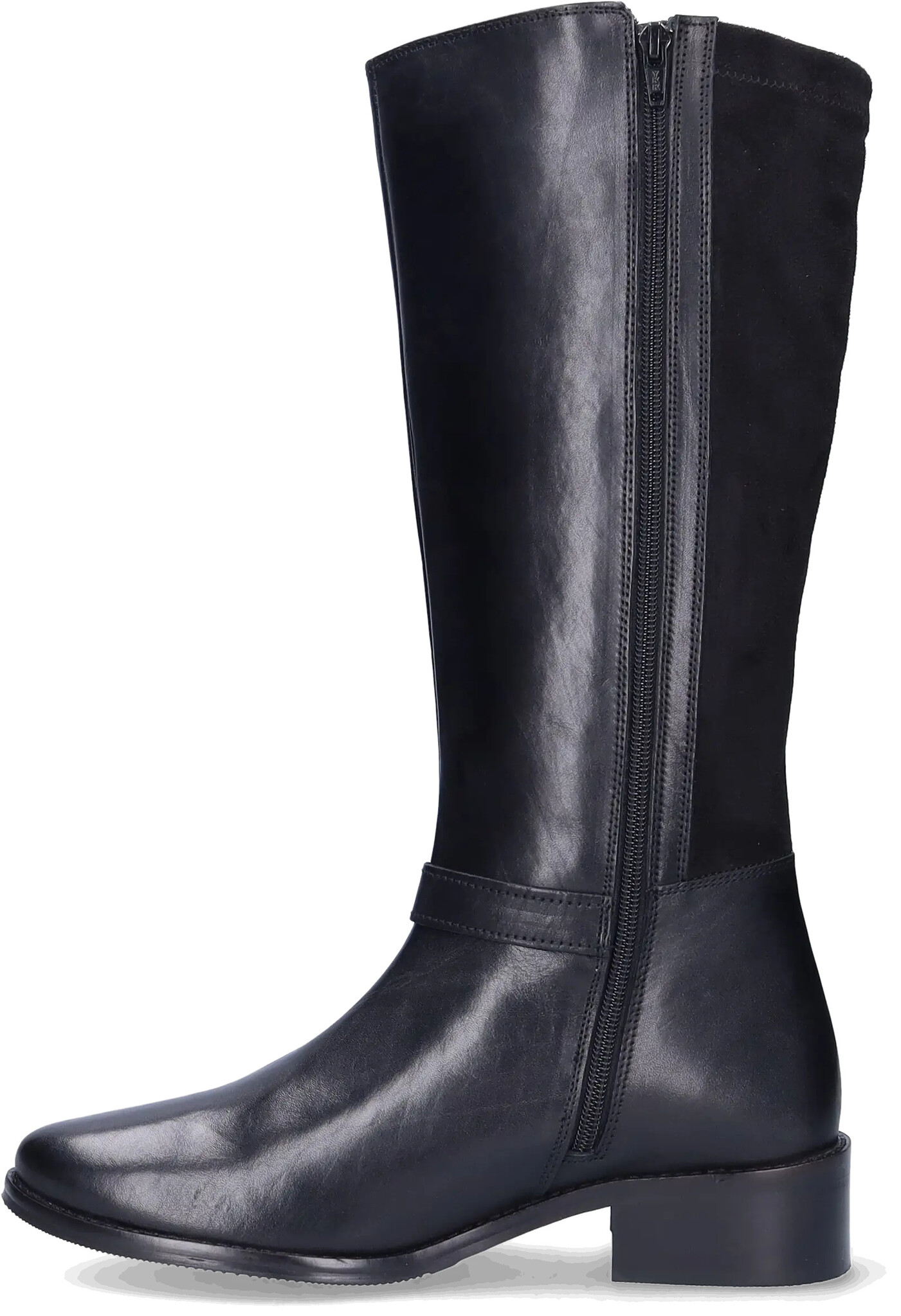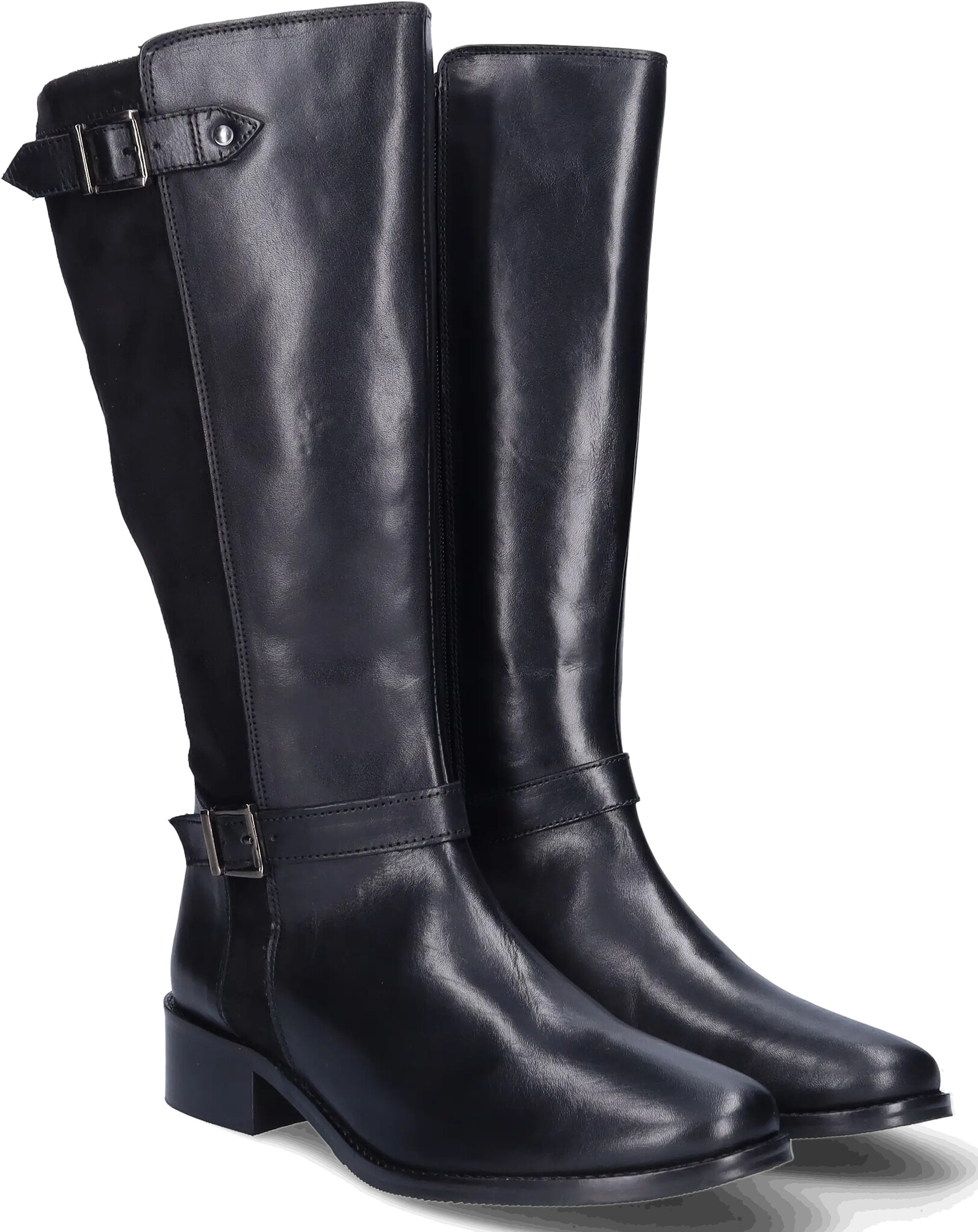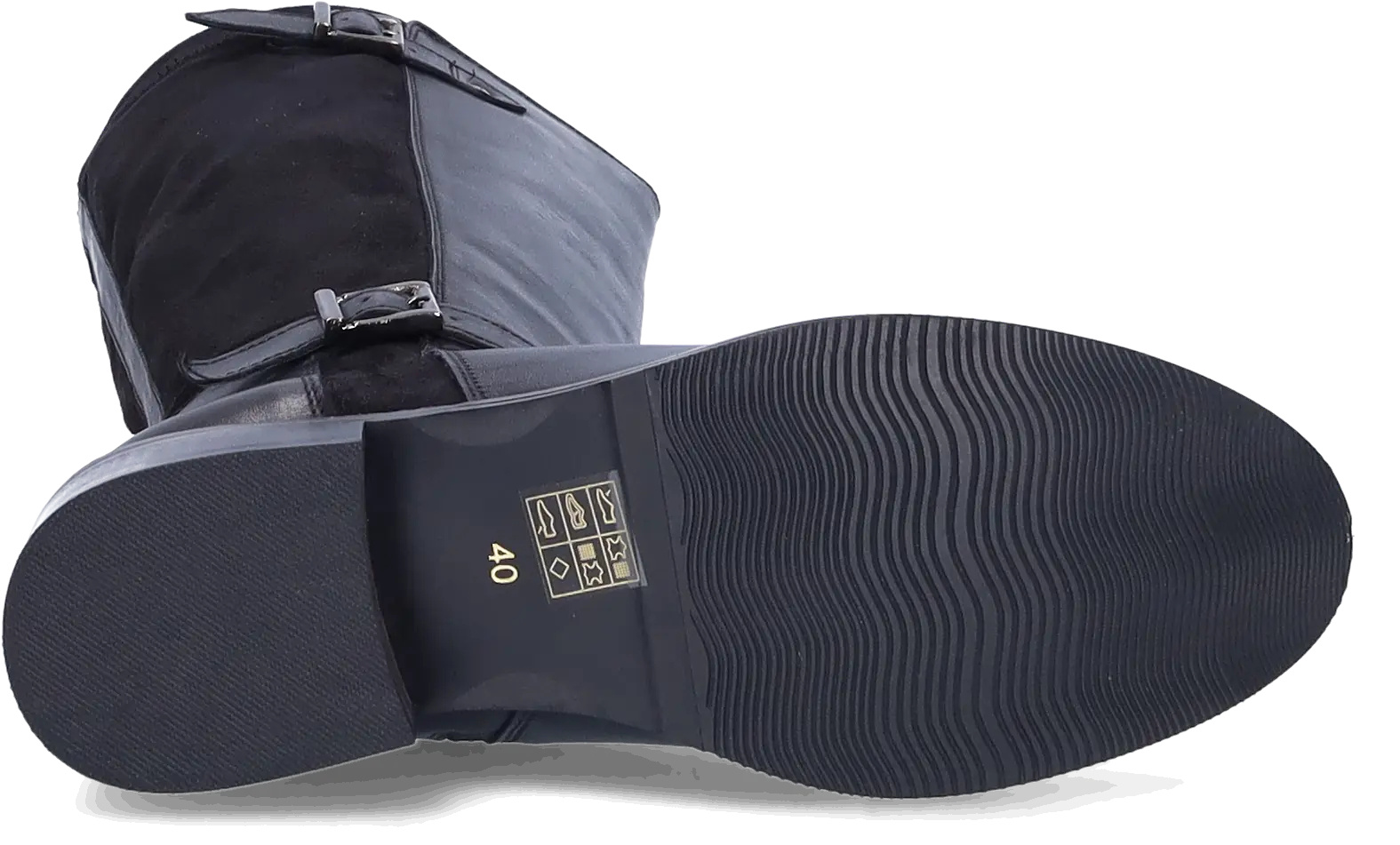 Tedbury ist ein schwarzer Weitschaftstiefel aus Leder und Stretch-Veloursleder. Er verfügt über verstellbare und dekorative Schnallen. Erhältlich in verschiedenen Wadenweiten (XS bis XXXL). Ausgestattet mit einer flexiblen Anti-Rutsch-Sohle und einem herausnehmbaren Fußbett, um orthopädische Einlagen verwenden zu können.