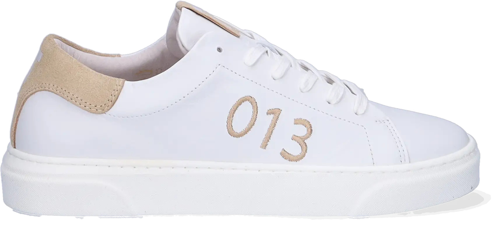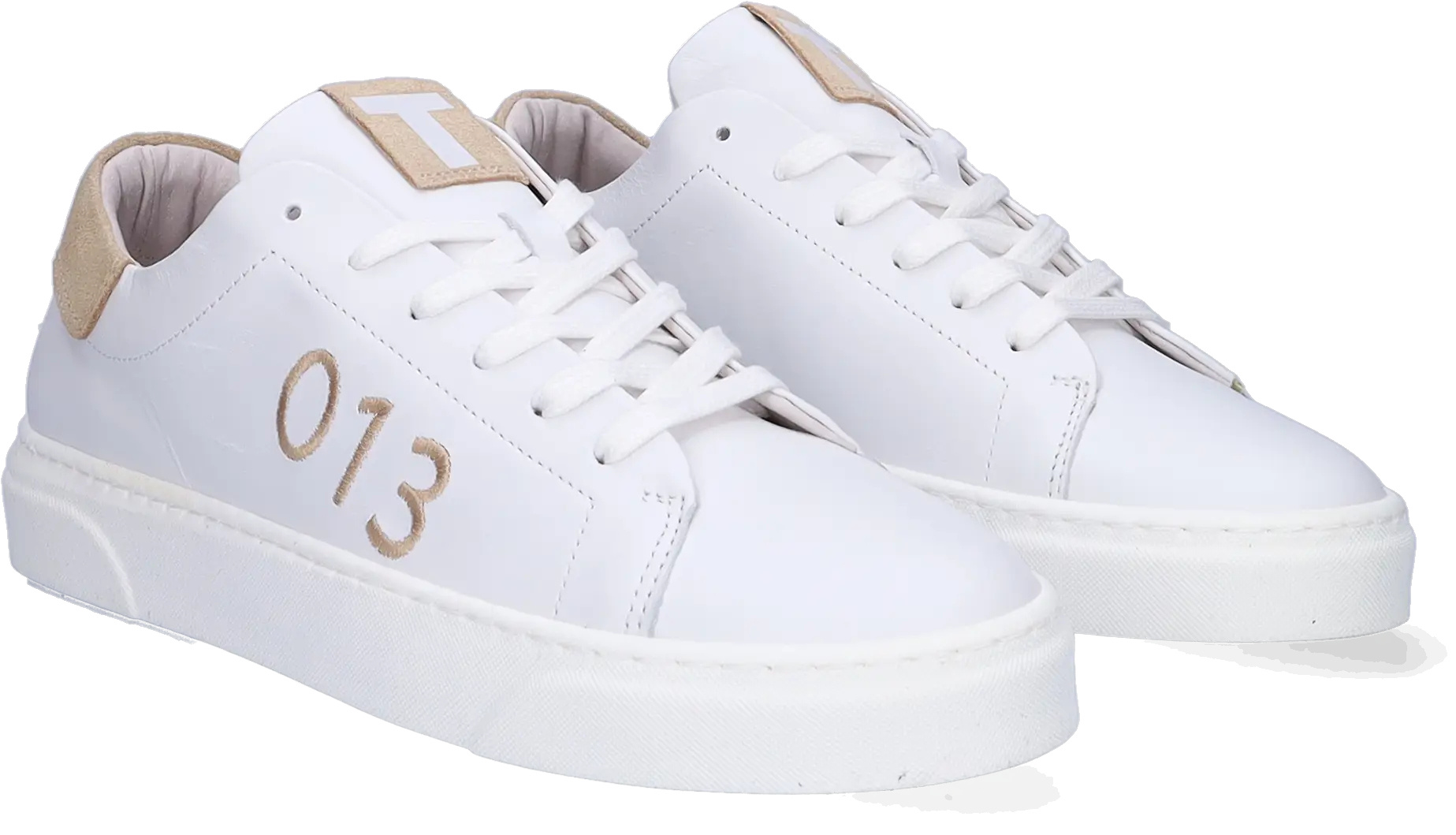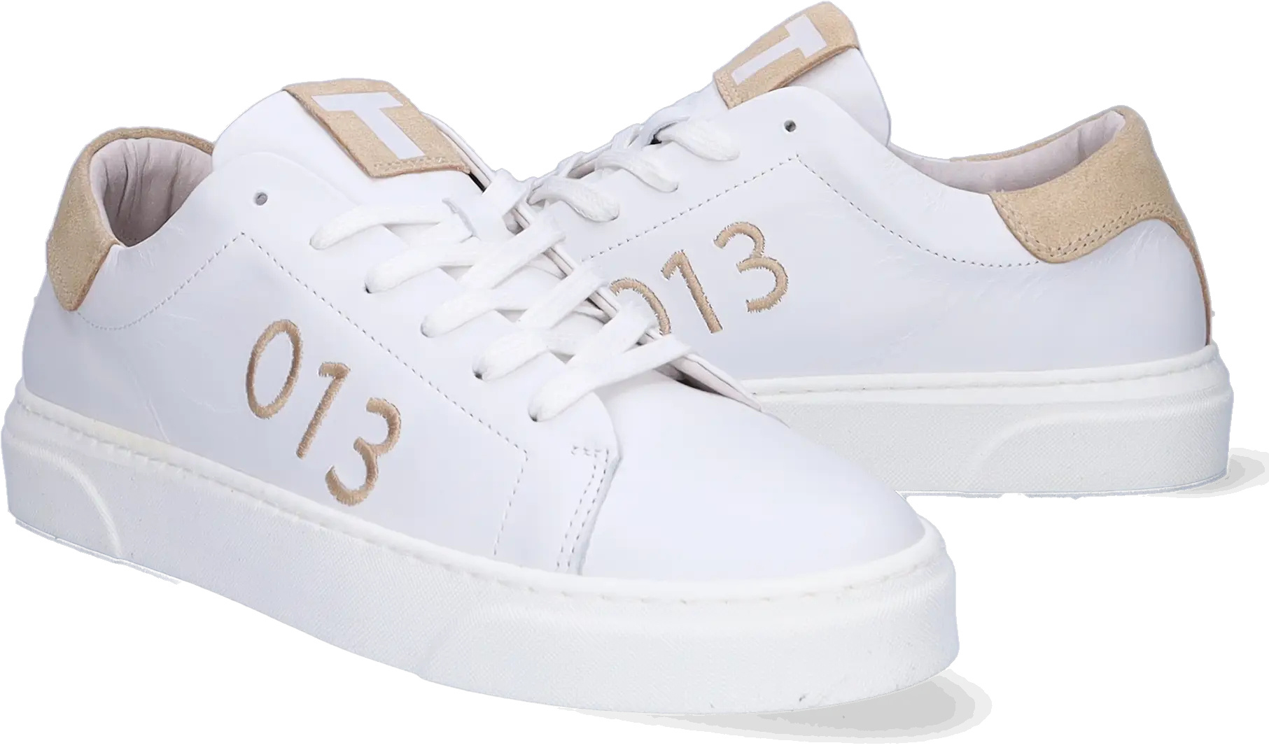 Tilburg Stappers bietet eine weiße/beige Variante an, die für Damen mit schmalen und breiten Füßen geeignet ist. Der Sneaker trägt die Vorwahl "013" und das "T" auf der Zunge und Rückseite. Er hat ein austauschbares Fußbett.