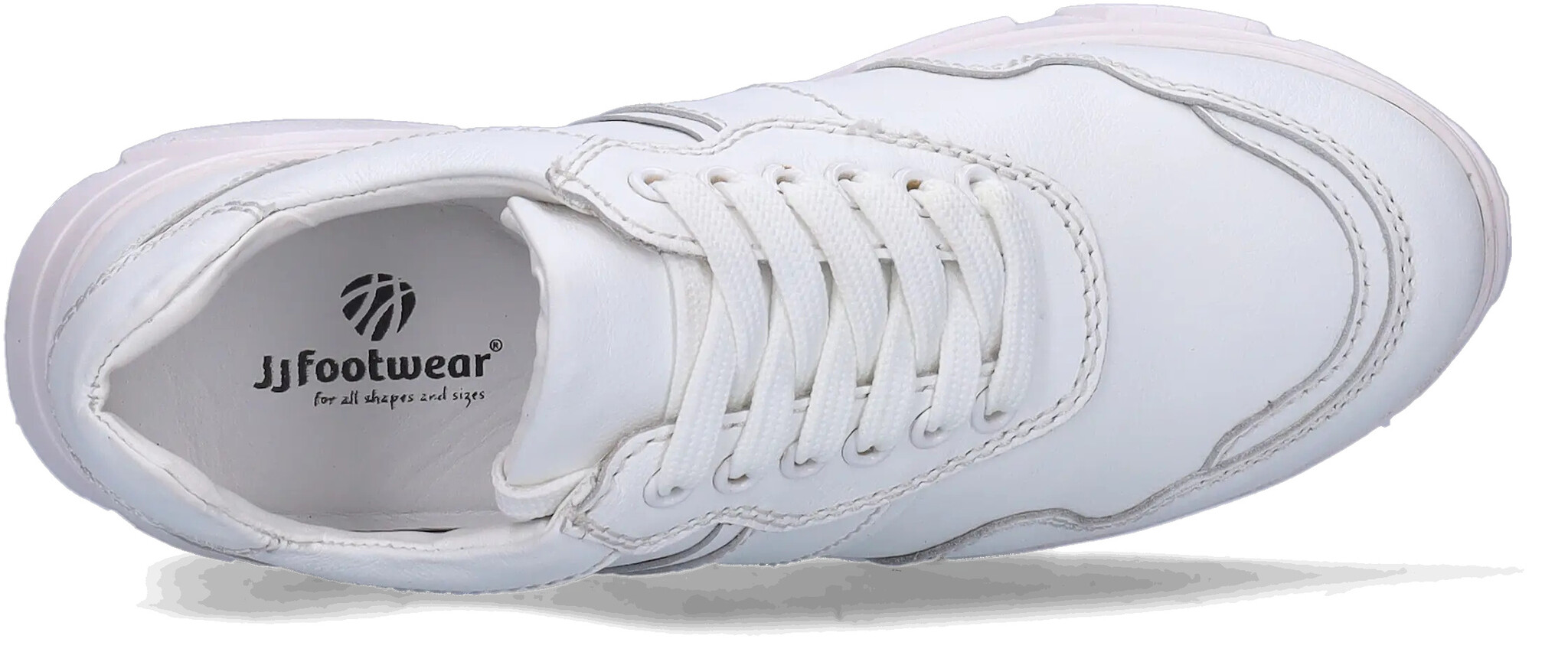 Der weiße Truro ist ein neutraler Ledersneaker für Damen mit breiten Füßen. Mit Schnürung, Lederelementen und einer stabilen weißen Sohle. Die herausnehmbare Einlegesohle macht ihn für Einlagen geeignet. Erhältlich im Sale