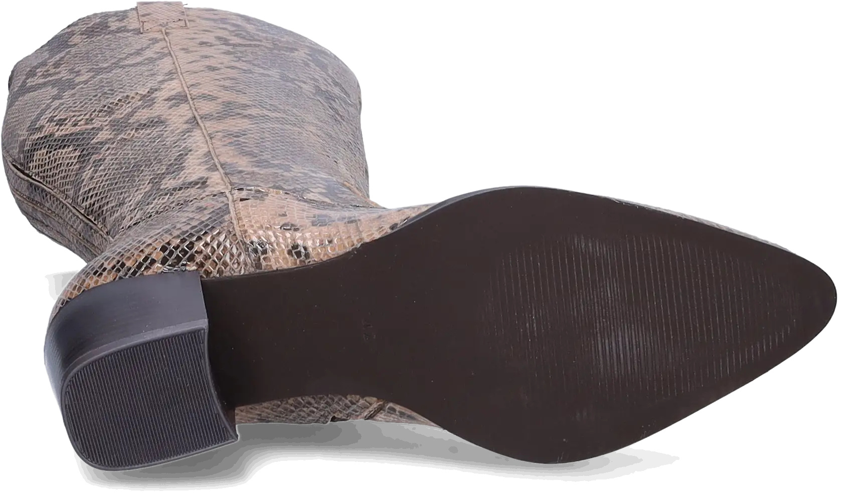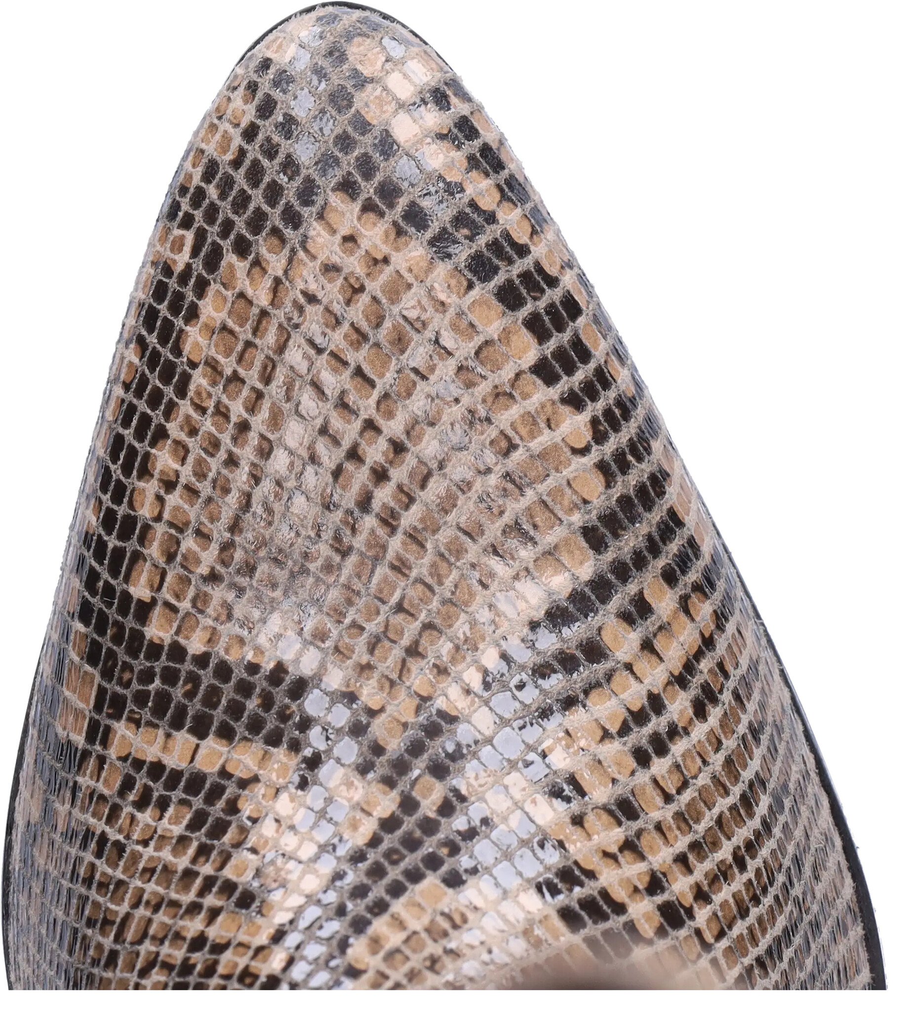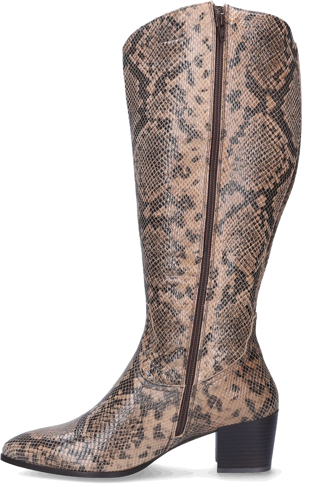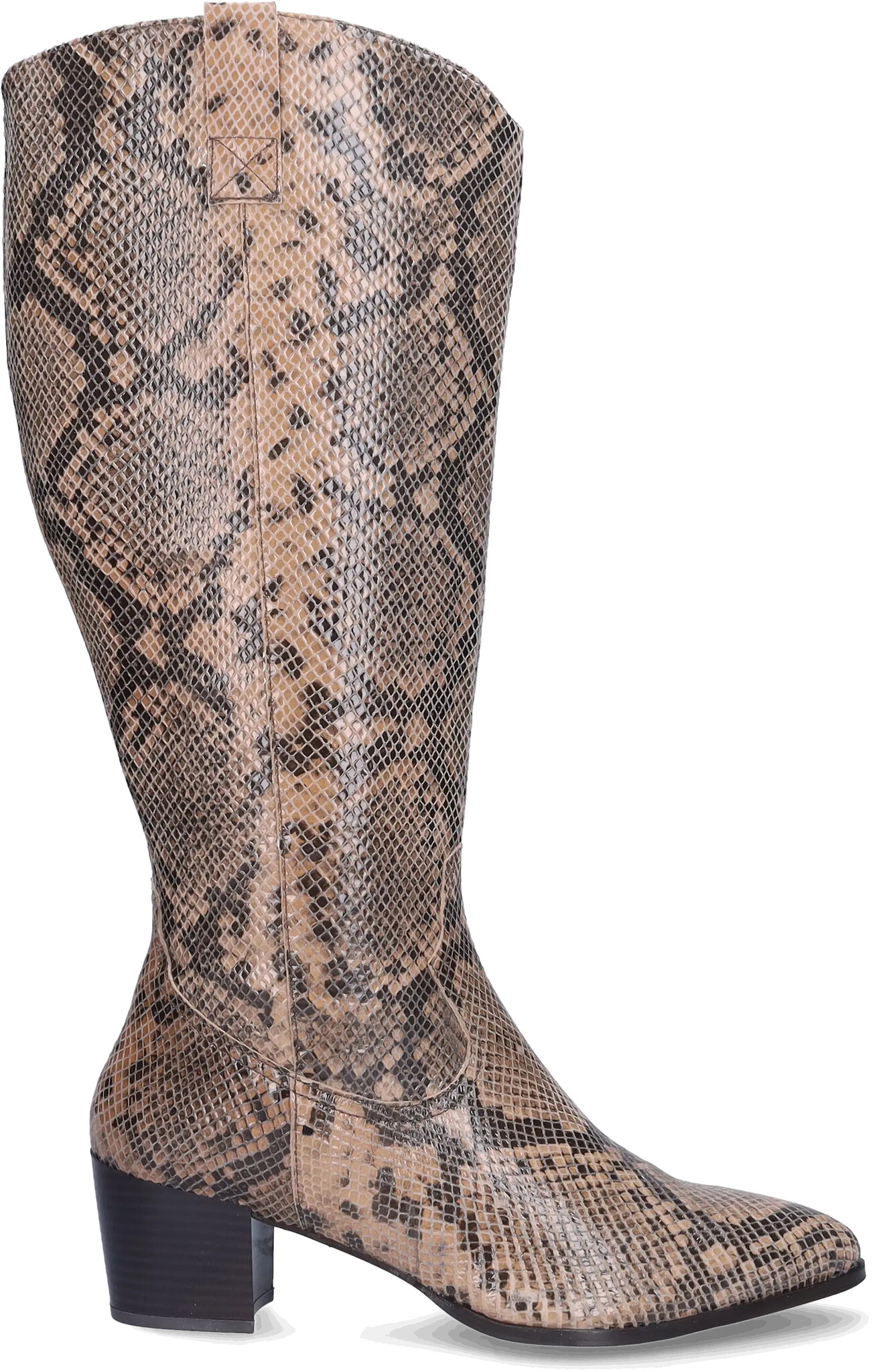 A fabulous taupe leather, faux snake-skin, extra wide calf, women’s Cowboy boot. Designed for comfort, Adana has a Cuban heel and is available in extra, super and/or super plus wide calf fittings, and in sizes 5-13. Removable insoles are fitted as standard.