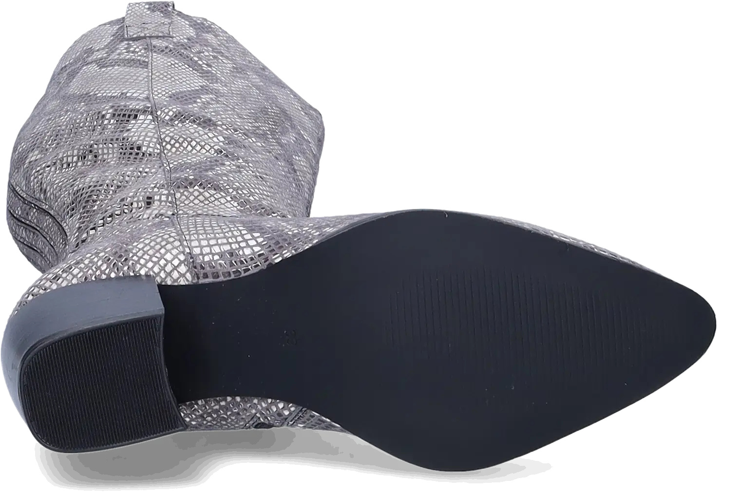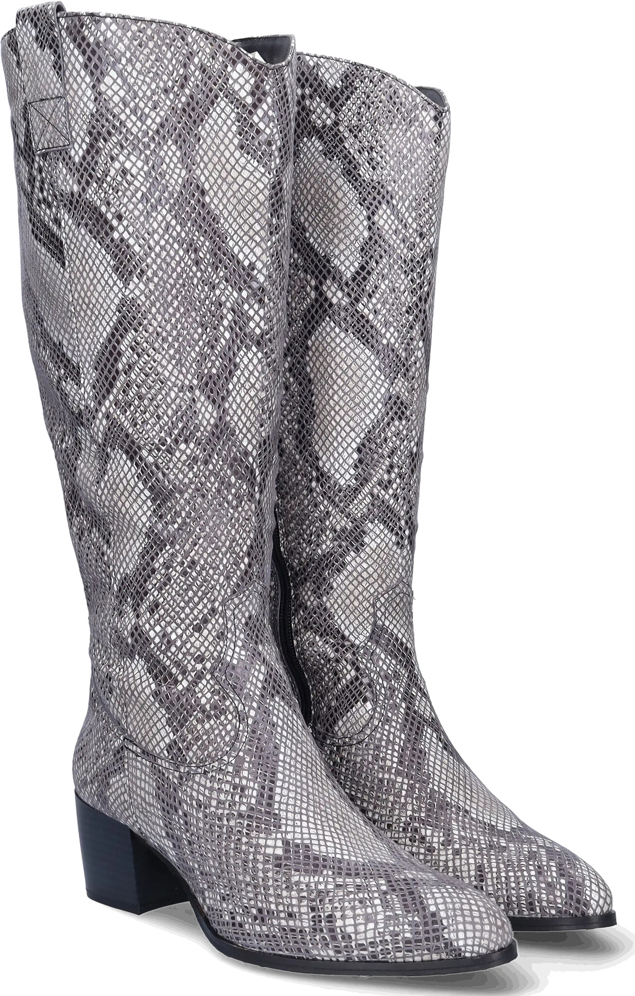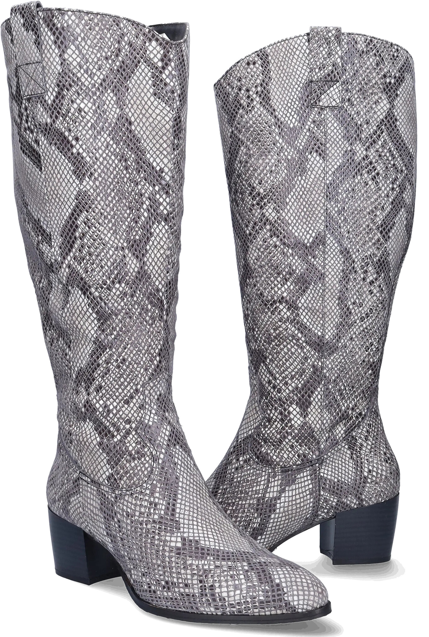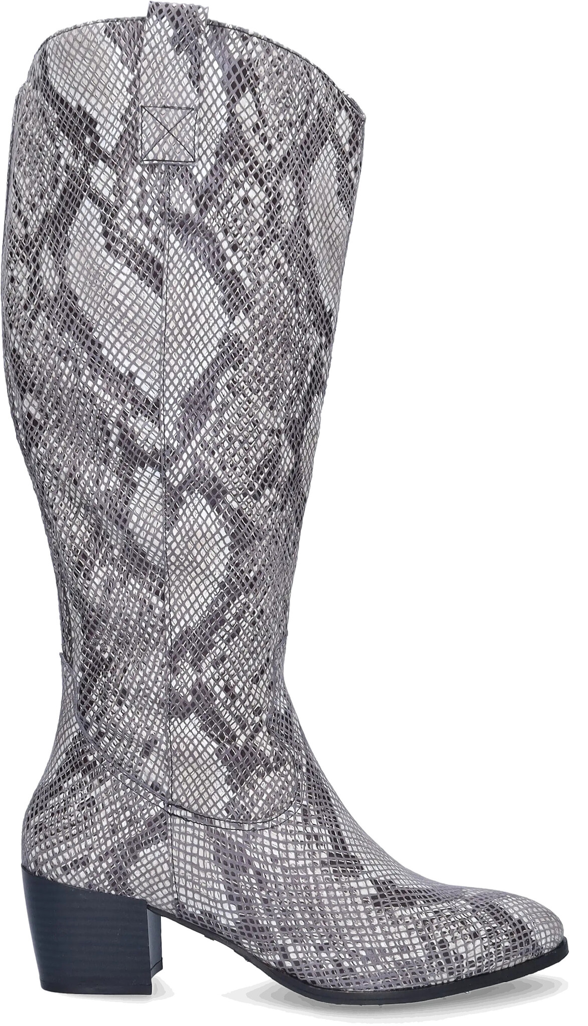 Adana is a black-and-white extra wide calf cowboy boot. It has a trendy Western look thanks to the leather snakeskin print. This type of boot has a comfortable and removable footbed and is available in various color variations.