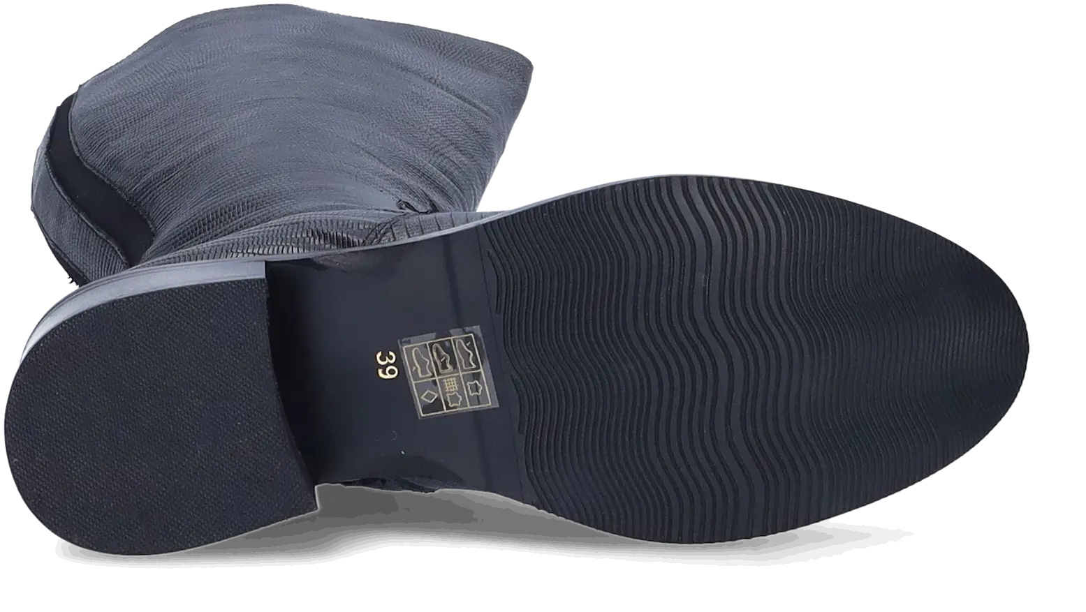 The black variant of Botta is an elegant leather wide calf boot with a wide shaft. It features a low heel and an iron button at the ankle. The zipper makes this model easy to put on and take off.
