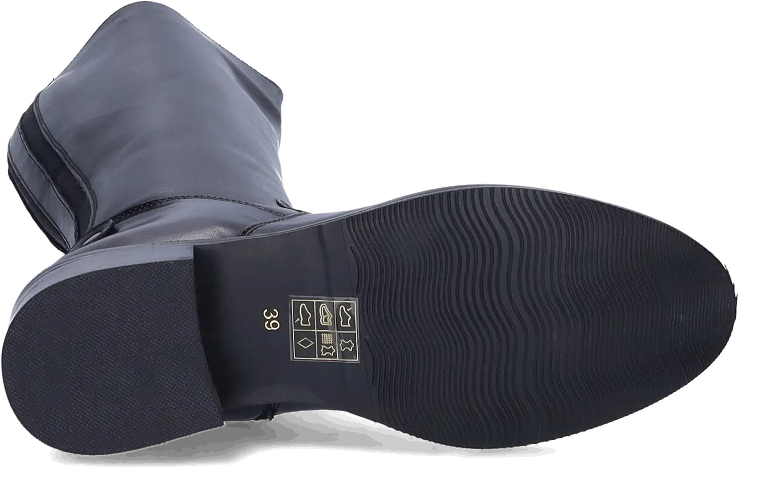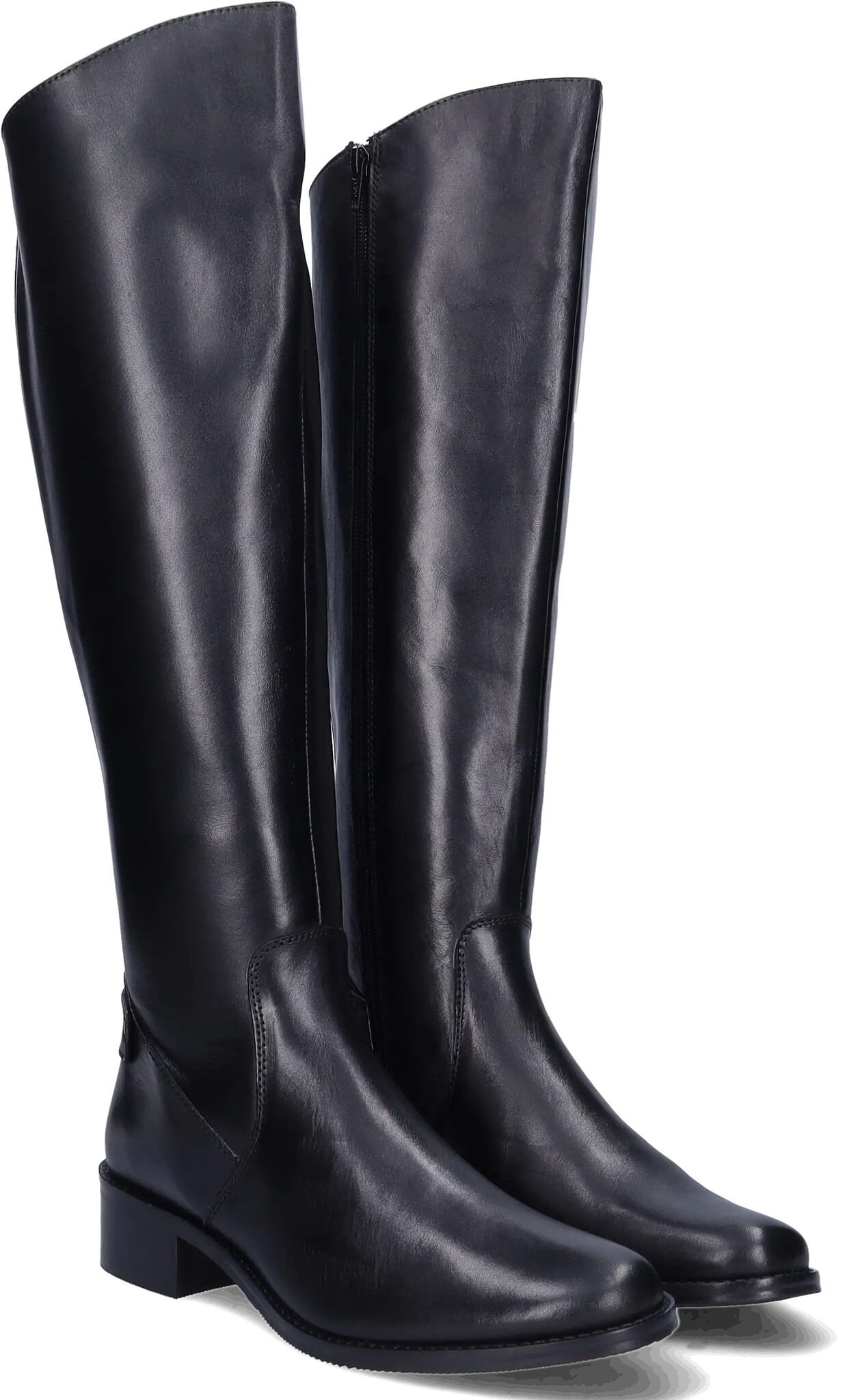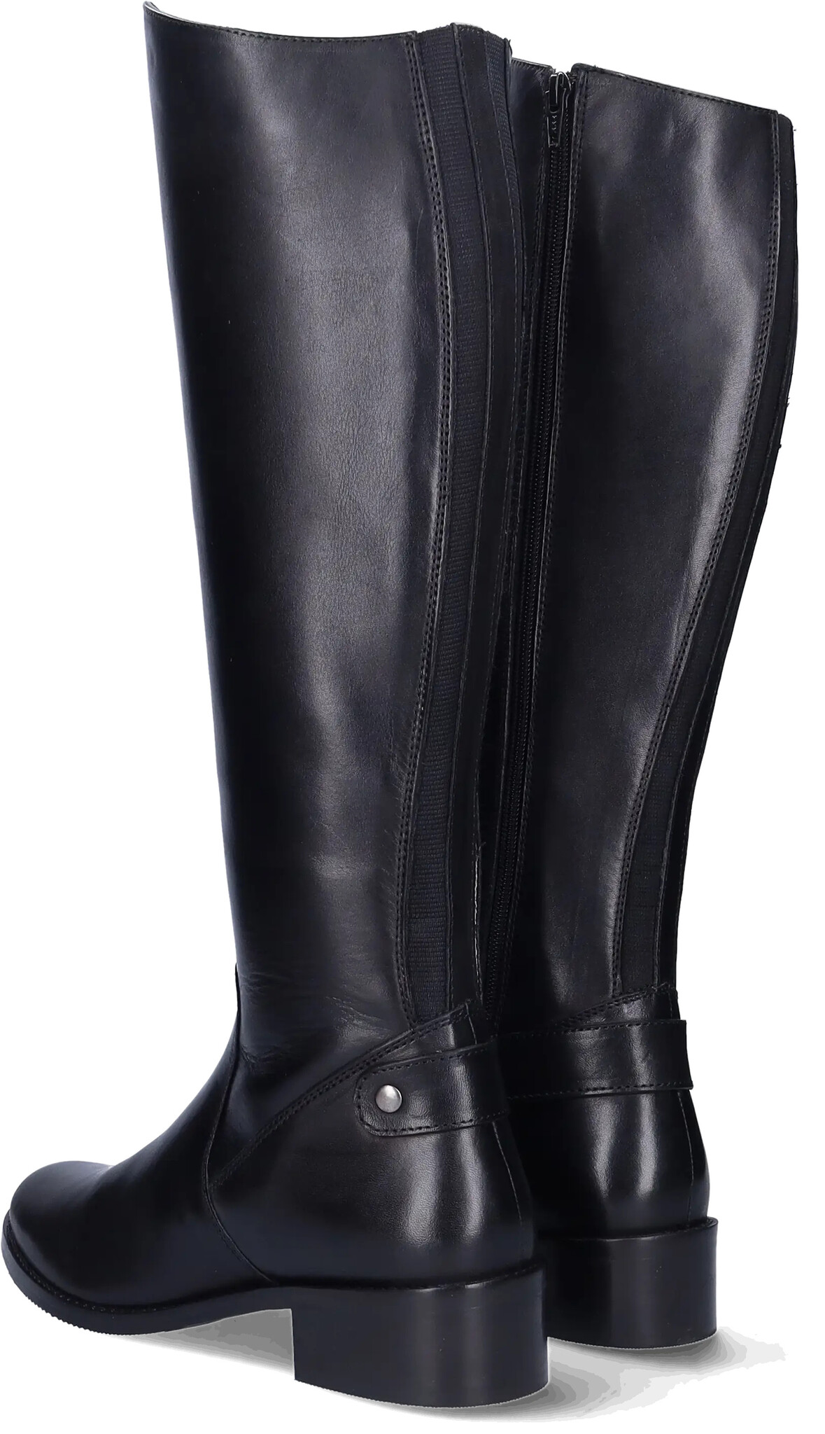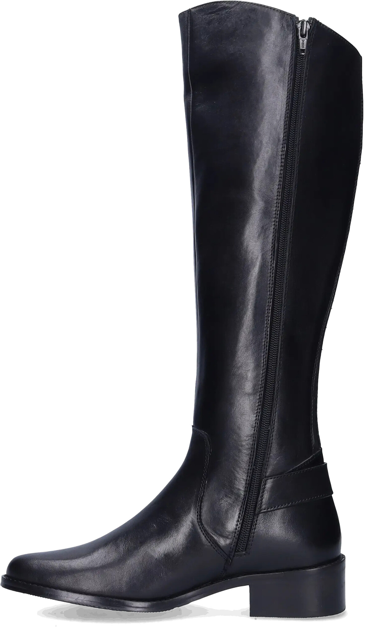 A classic smooth black leather women's extra wide calf boot with a low heel, Botta is cut in narrow and wide shaft options. Made of butttery soft leather,, Botta has elastic inserts and an almond shaped toe. Botta is also available in warm cognac.