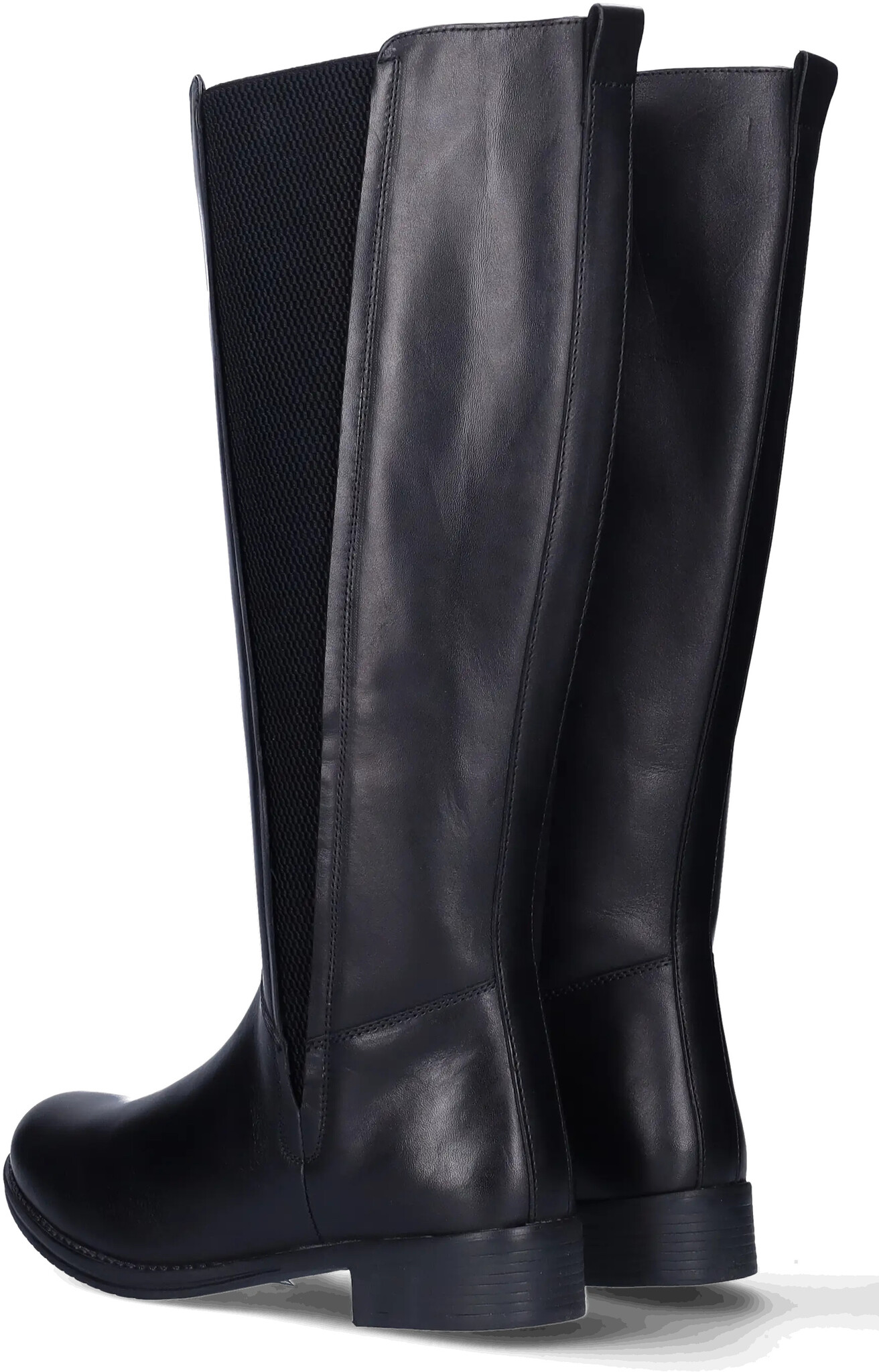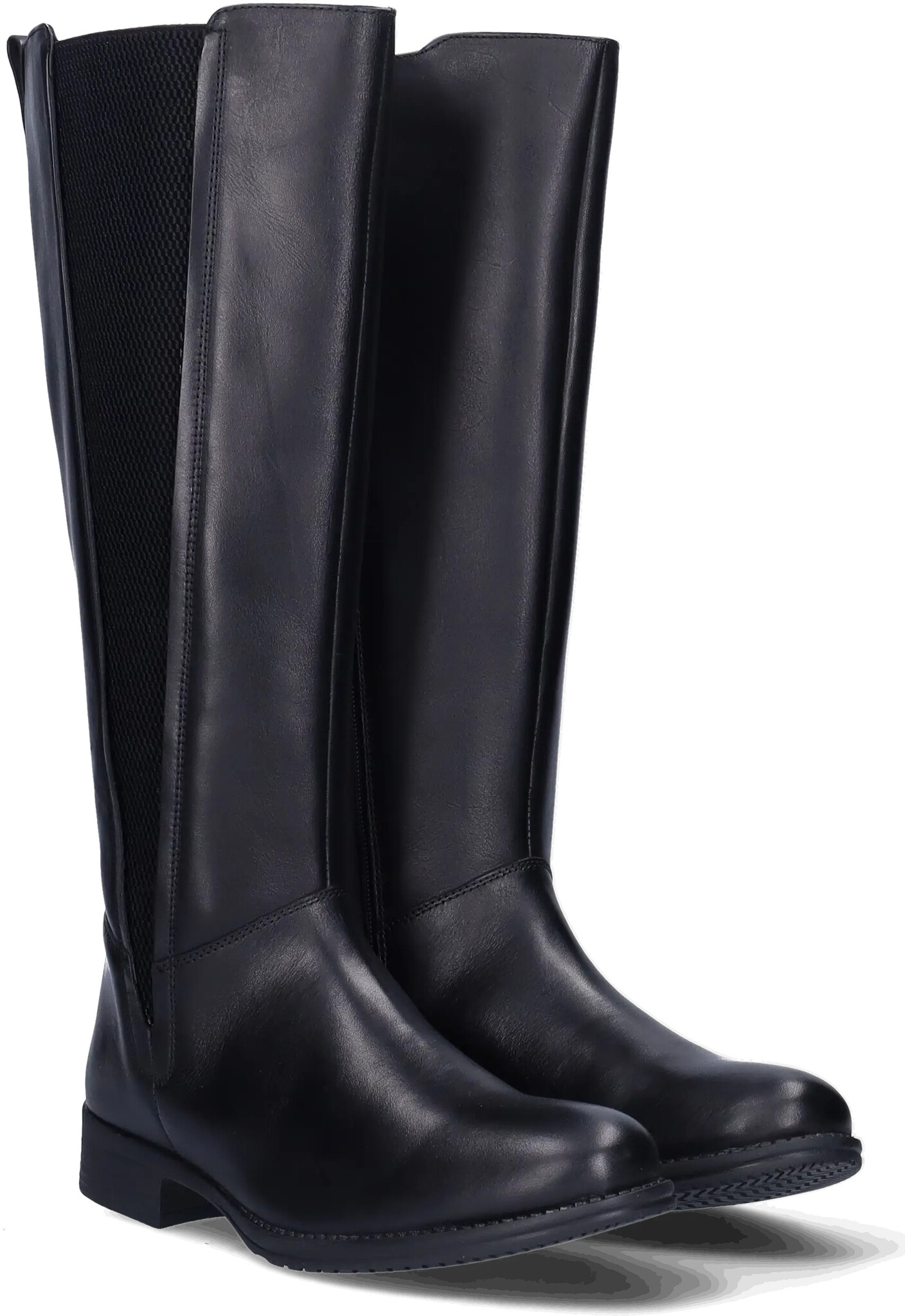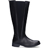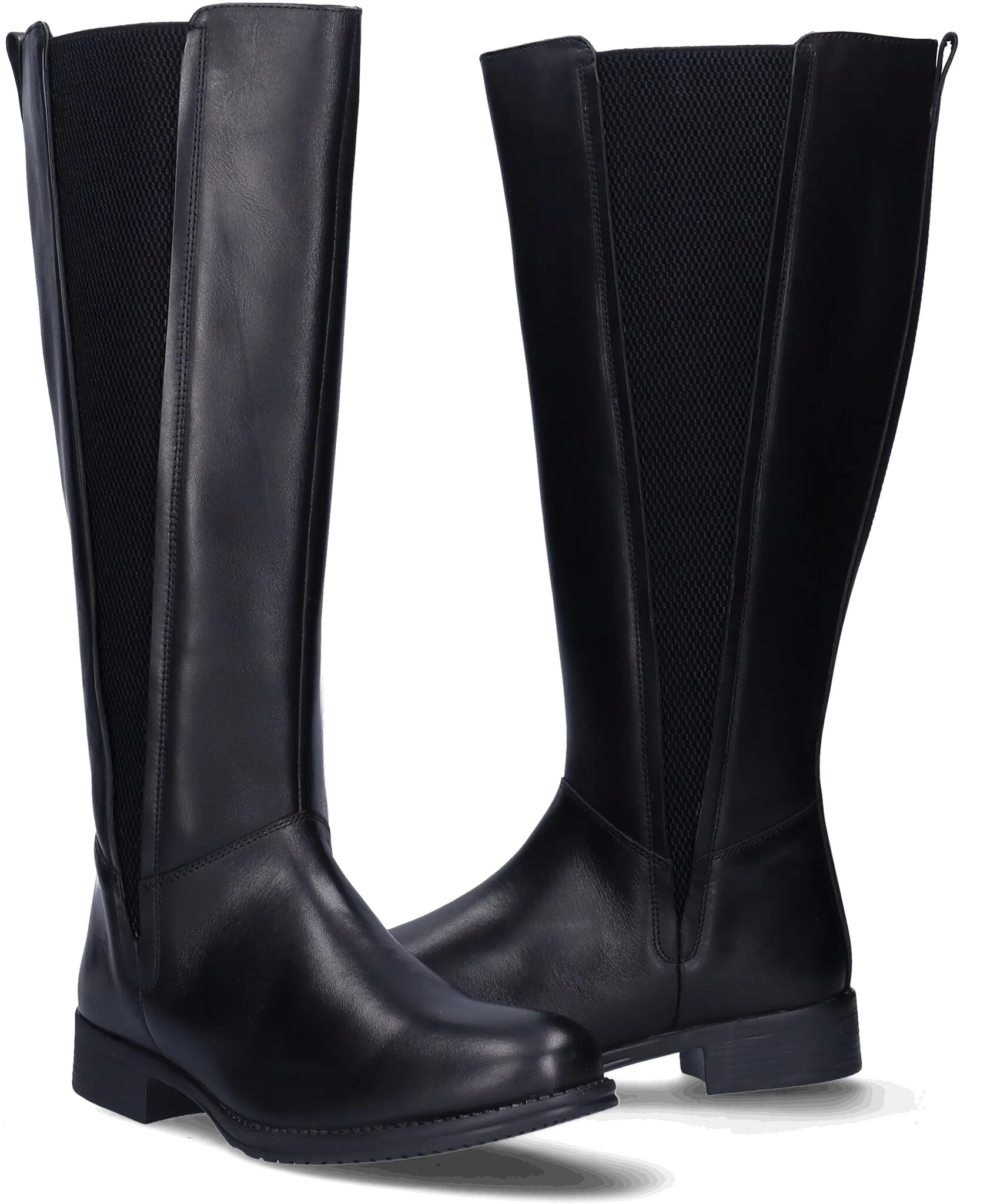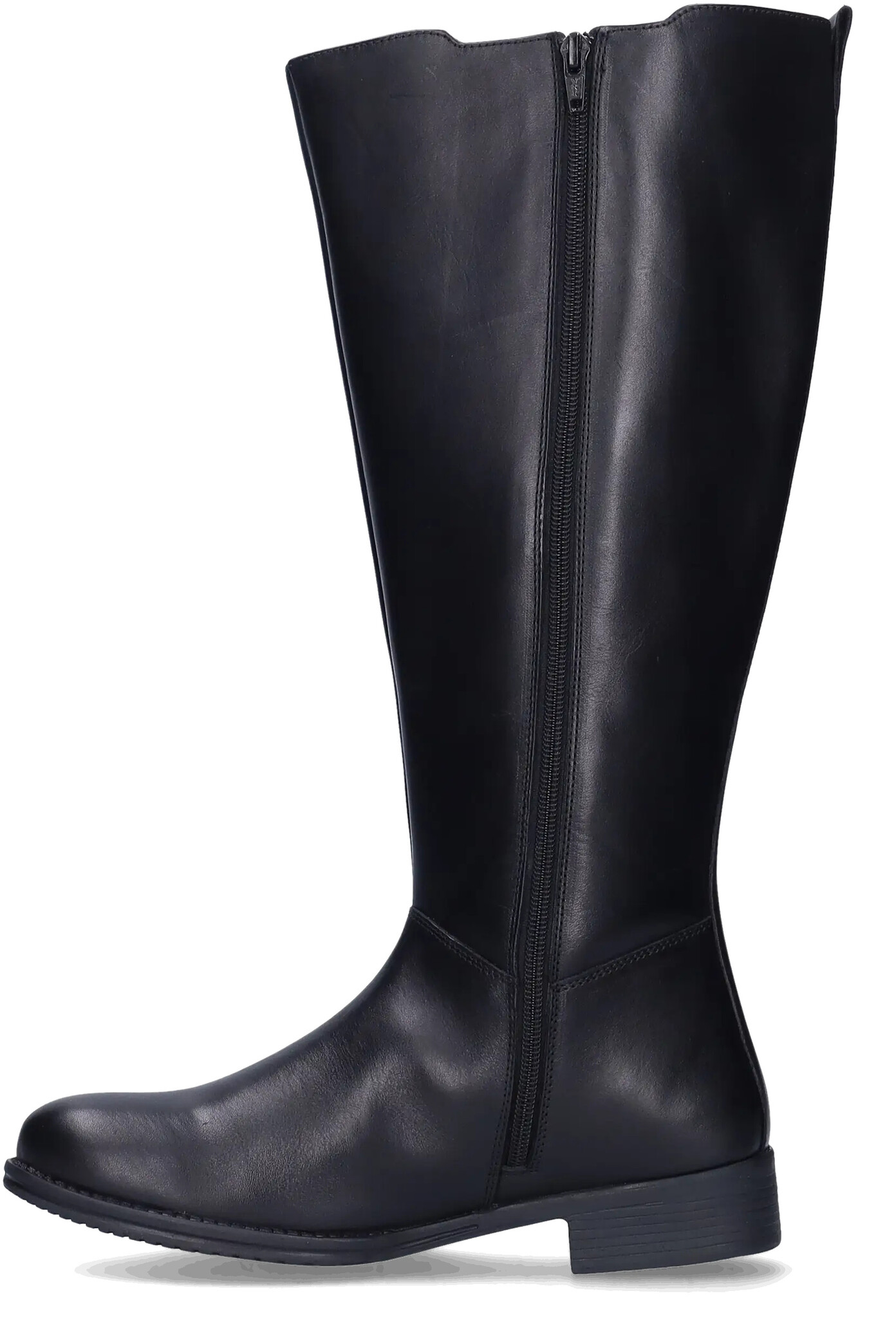 Bradstock is an extra wide calf black leather stretch boot. This boot features a mid-height heel, a round toe, and a zipper. Can be worn with insoles.