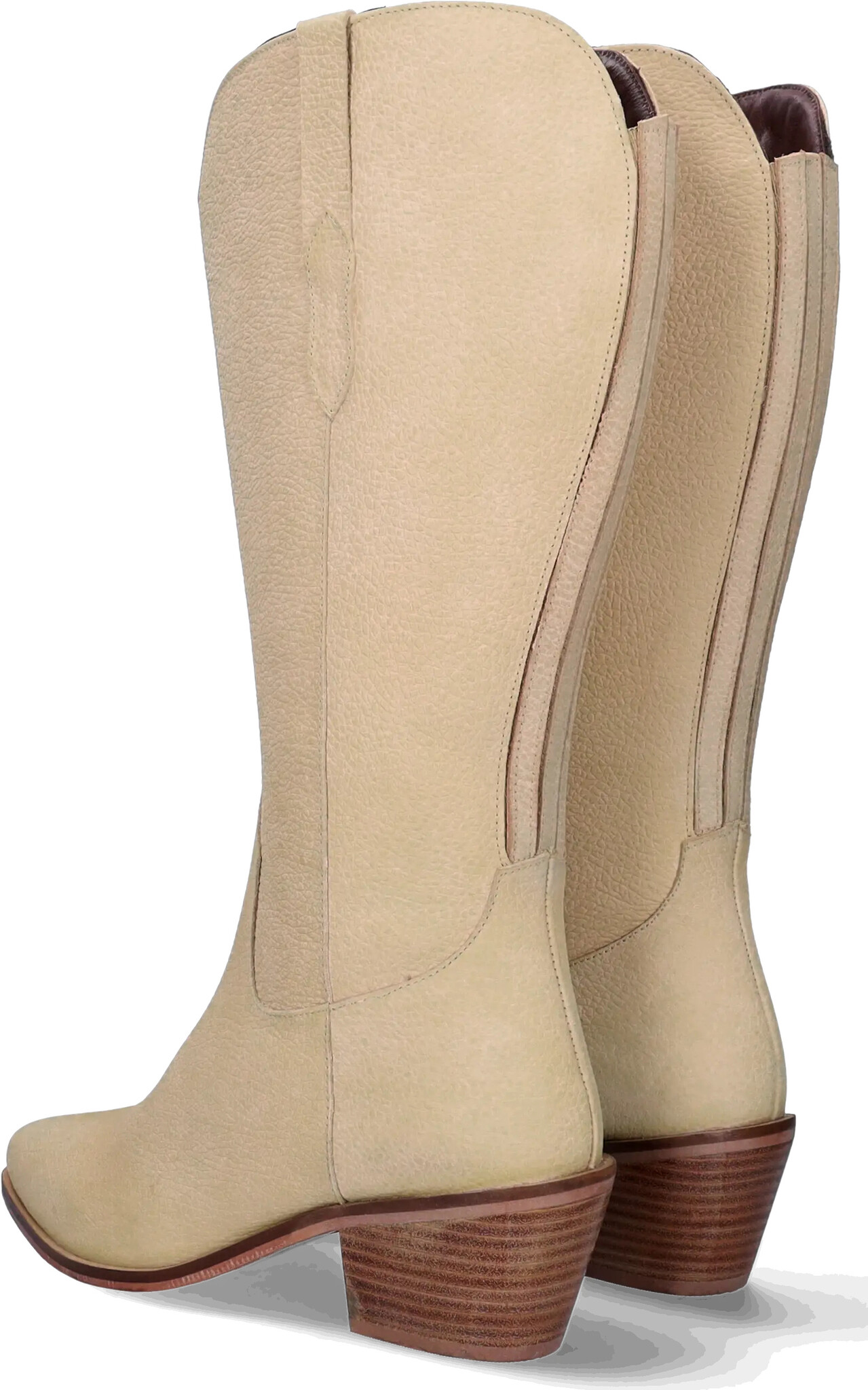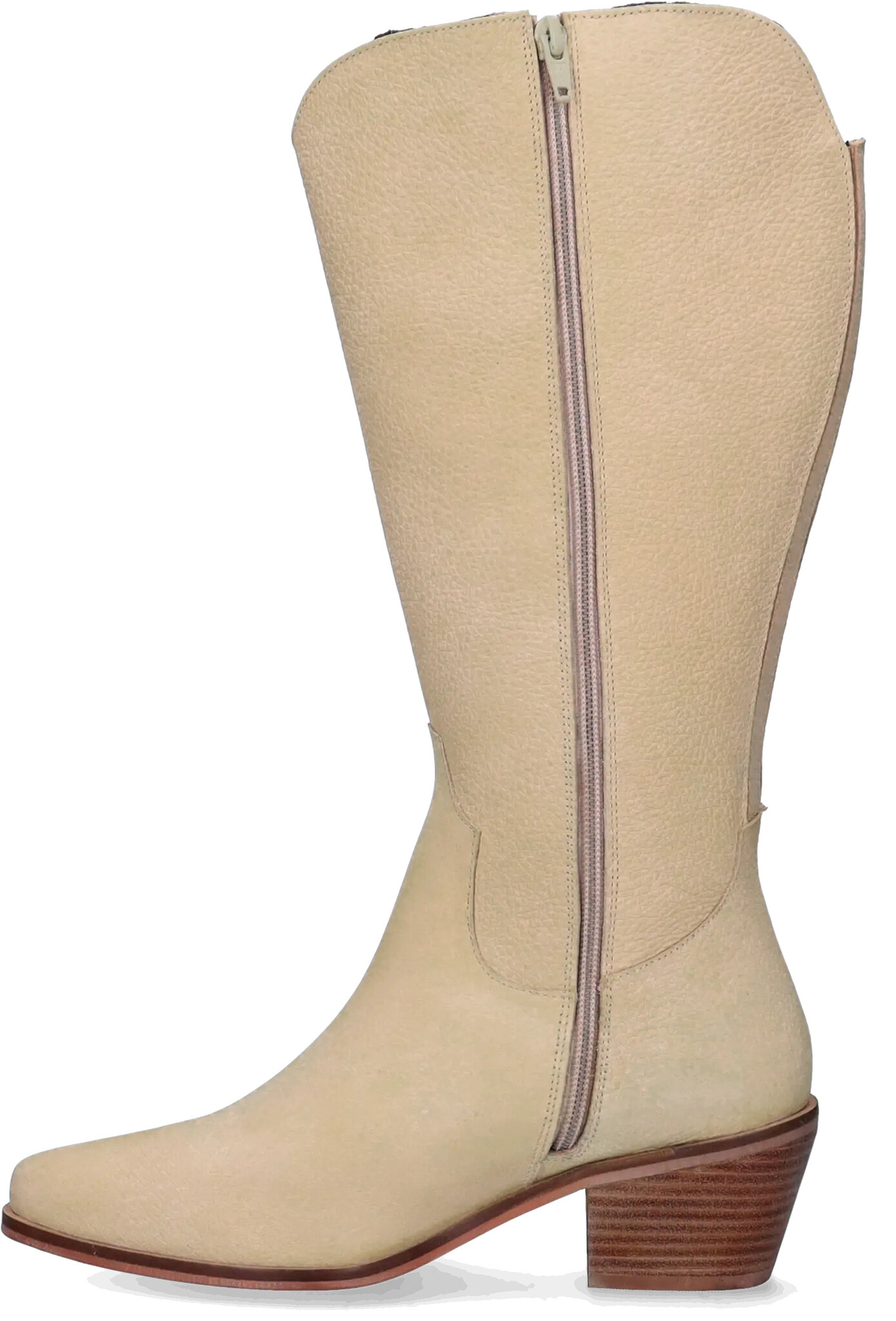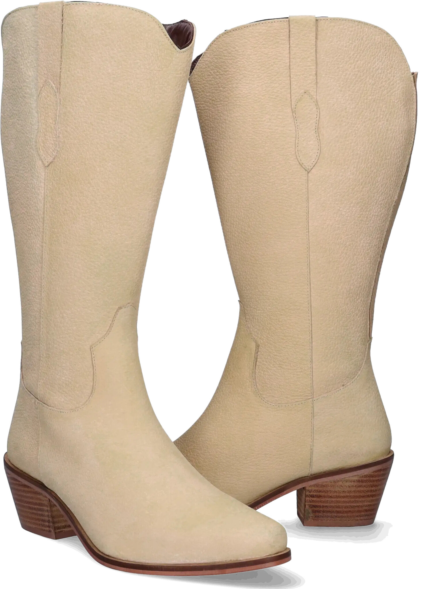 The beige version of the Camberley is a traditional, leather extra wide calf cowboy boot, block heel, zipper closure, and pointed toe. Suitable for orthopedic insoles.