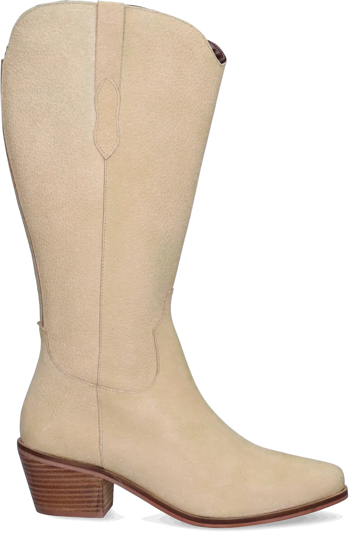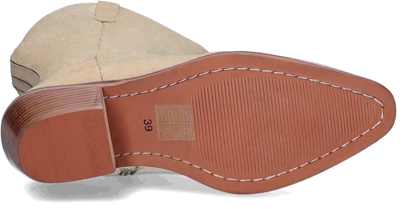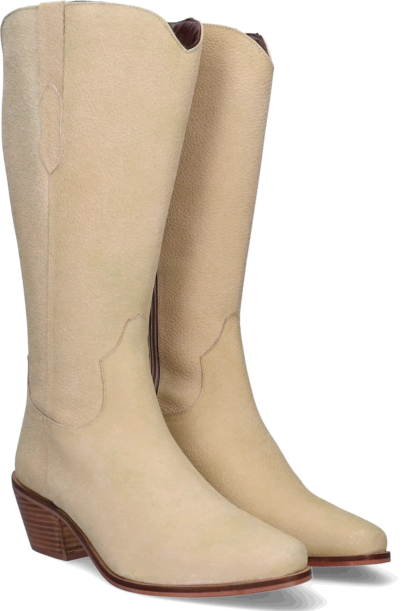 The beige version of the Camberley is a traditional, leather extra wide calf cowboy boot, block heel, zipper closure, and pointed toe. Suitable for orthopedic insoles.