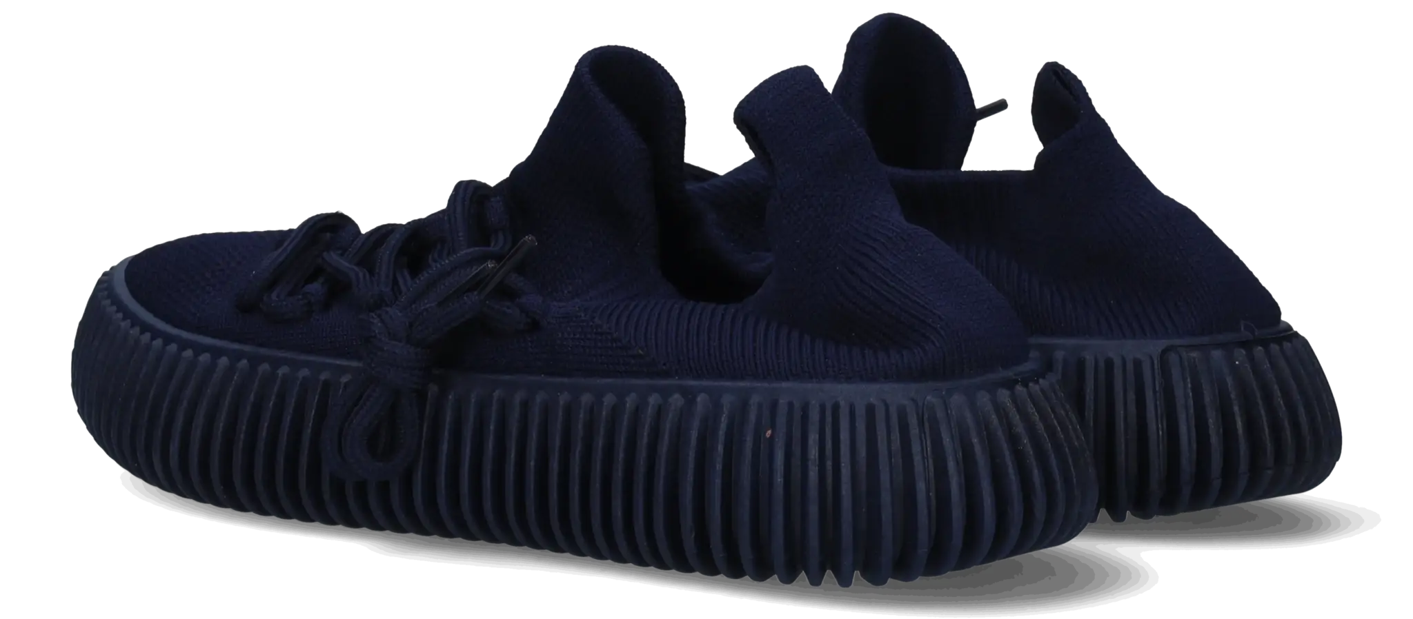Cardigan is a comfortable blue trainer made from flexible stretch textile, allowing it to perfectly hug your foot. The shoe is finished with a lace-up closure and a striking, ridged sole.
