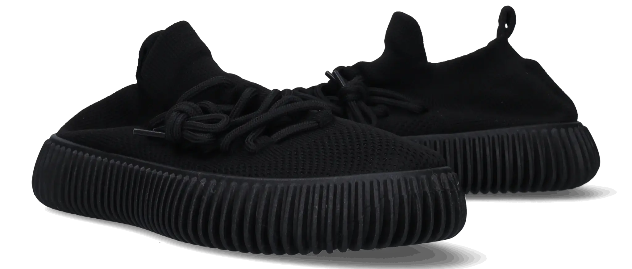 Cardigan is a comfortable black trainer, made from flexible stretch fabric, that fits your foot perfectly. The shoe is finished with a lace-up fastening and a striking, ribbed sole.