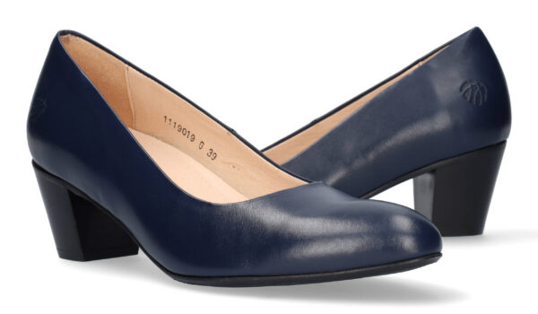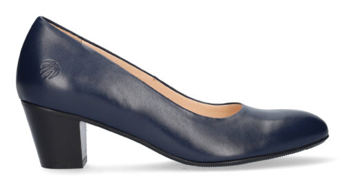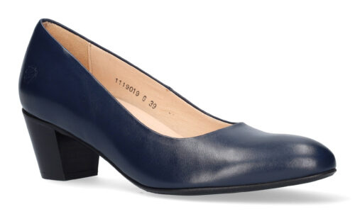 The blue Duisburg is a high-heeled pump. Suitable for both wide and narrow feet. Duisburg is available in leather, suede, and other materials. These pumps have flexible non-slip soles, removable insoles, and can be worn with orthotic inserts.