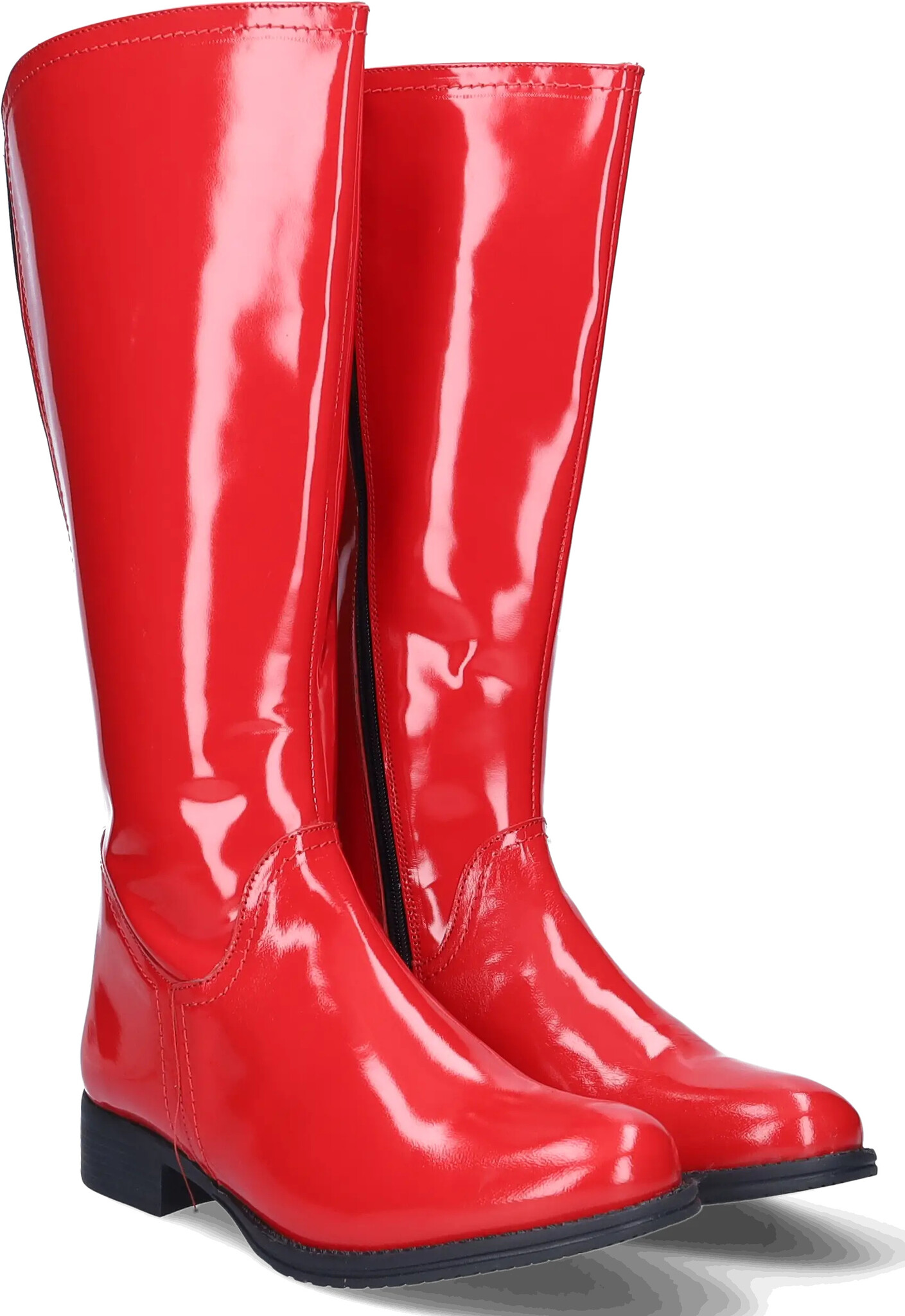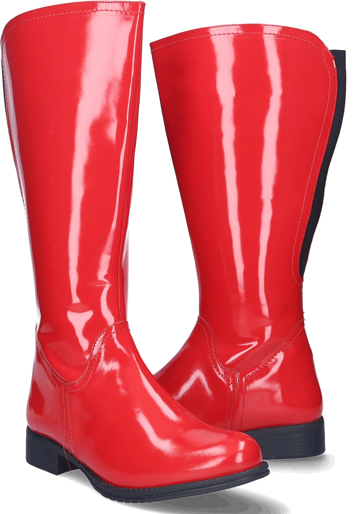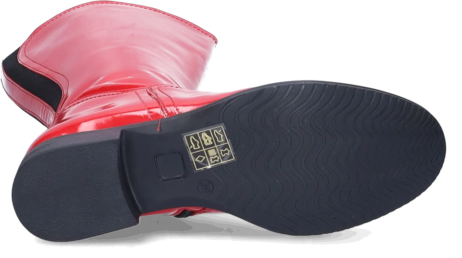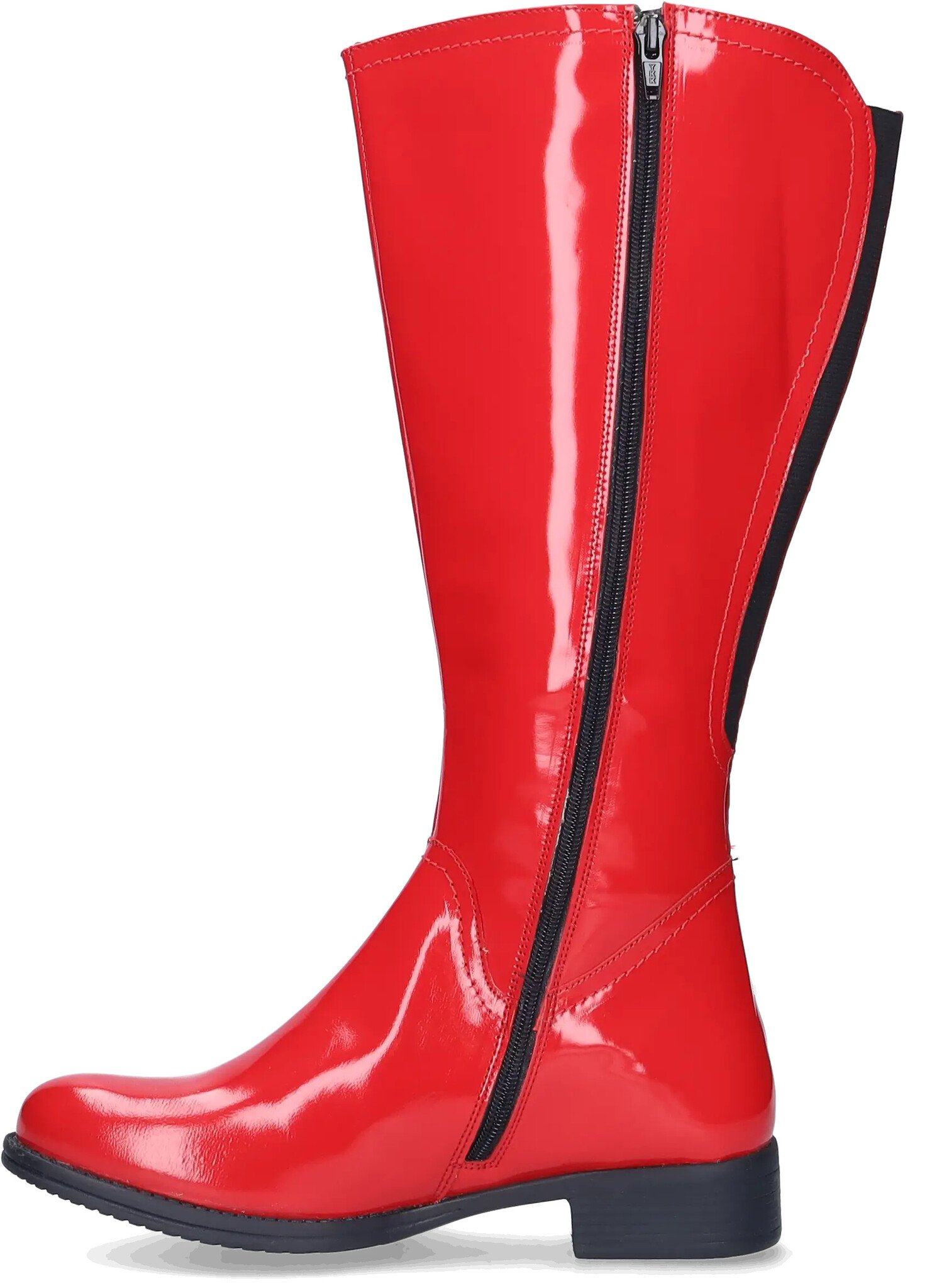 The red variant of Flensburg is a leather extra wide calf boot with a subtle heel, side zipper, flexible non-slip sole, and removable insoles. Suitable for orthopedic inserts.