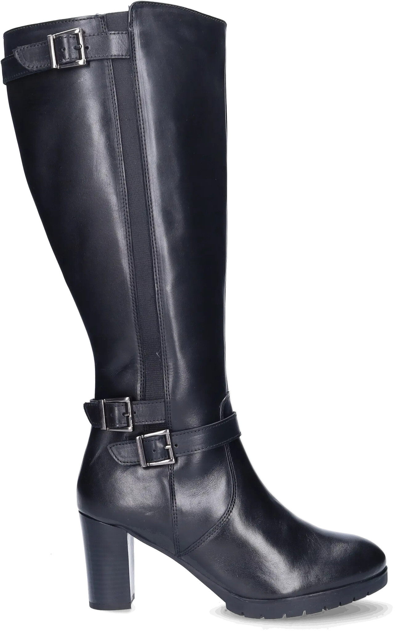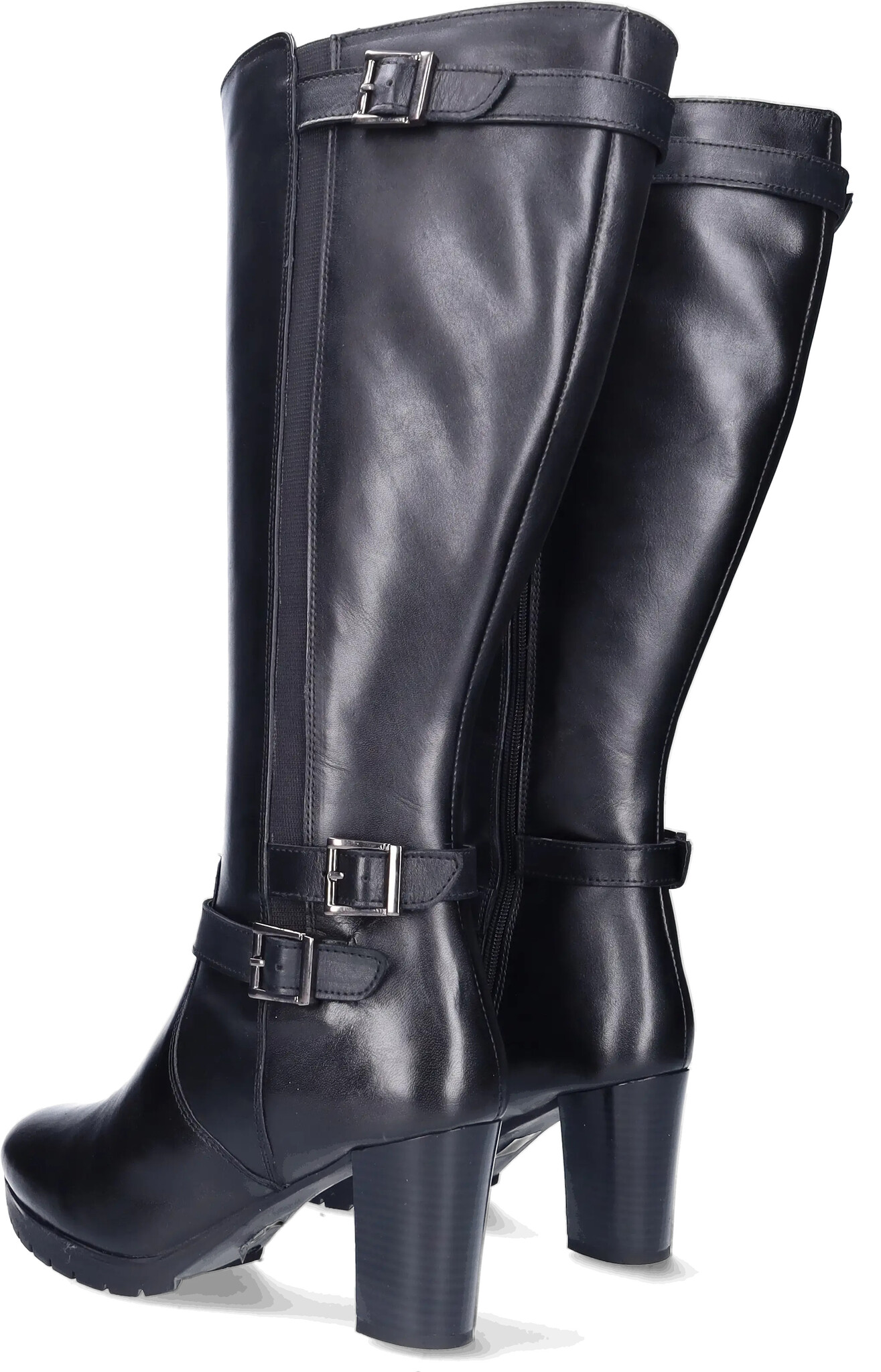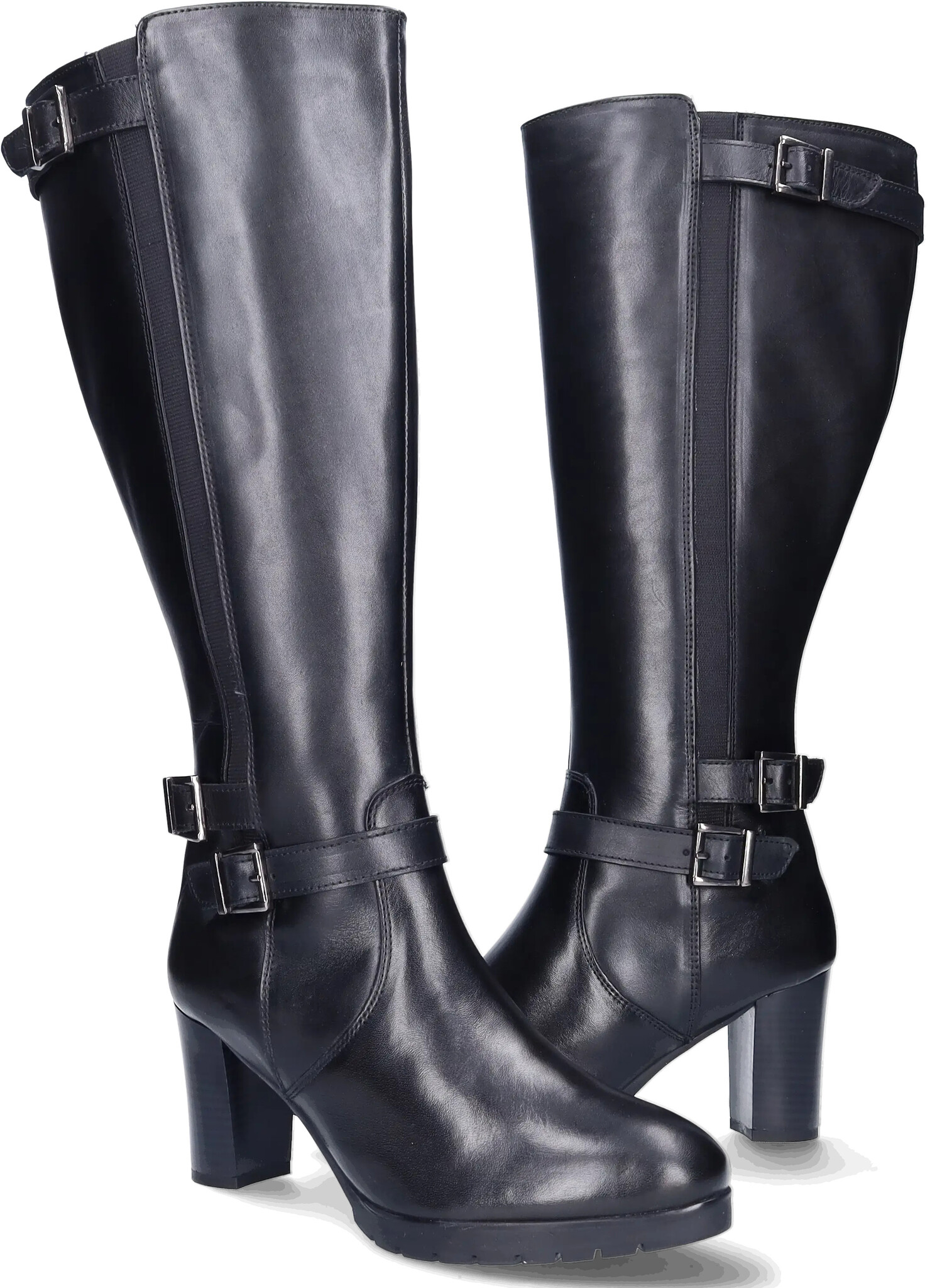 Gosford is an elegant knee-high extra wide calf boot in black leather with a high heel. It features characteristic buckle closures around the ankle and at the top of the shaft. The boot has a full-length zipper, making it easy to put on and take off. Additionally, this style has removable footbeds, allowing for the use of custom insoles. Available in various colors.