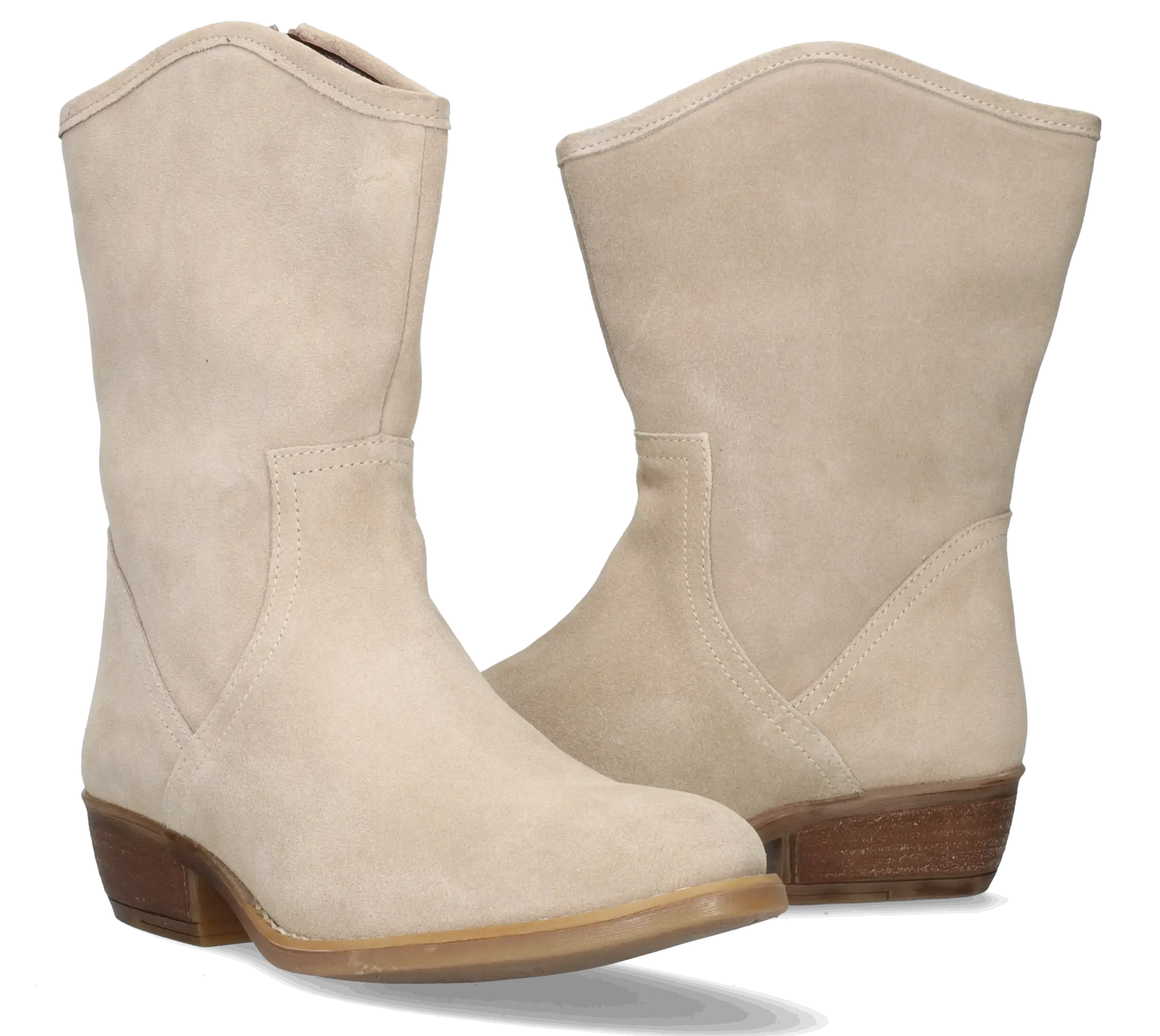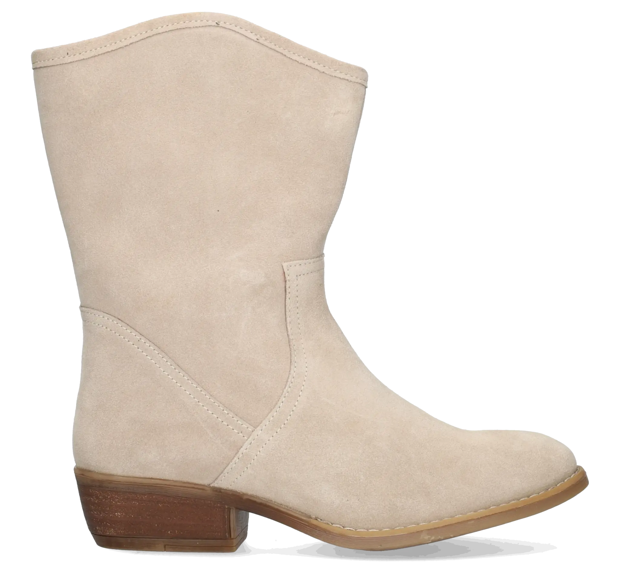 Helston is a sand-colored wide fit ankle boot, made from high-quality, soft suede. The slanted shaft, Cuban heel, and rounded toe provide a distinctive Western style. Helston is available in various colors.