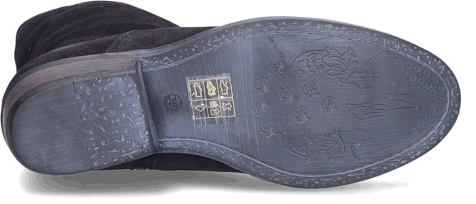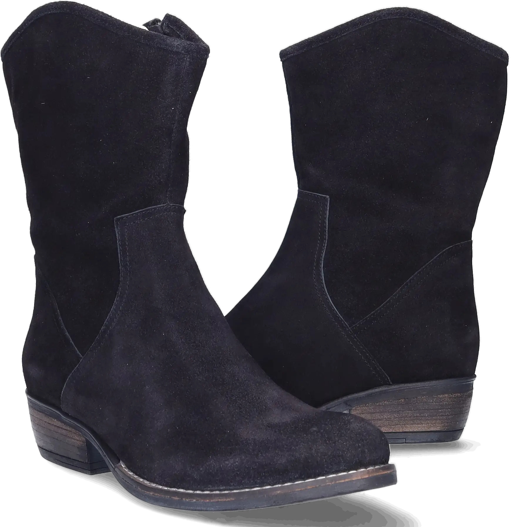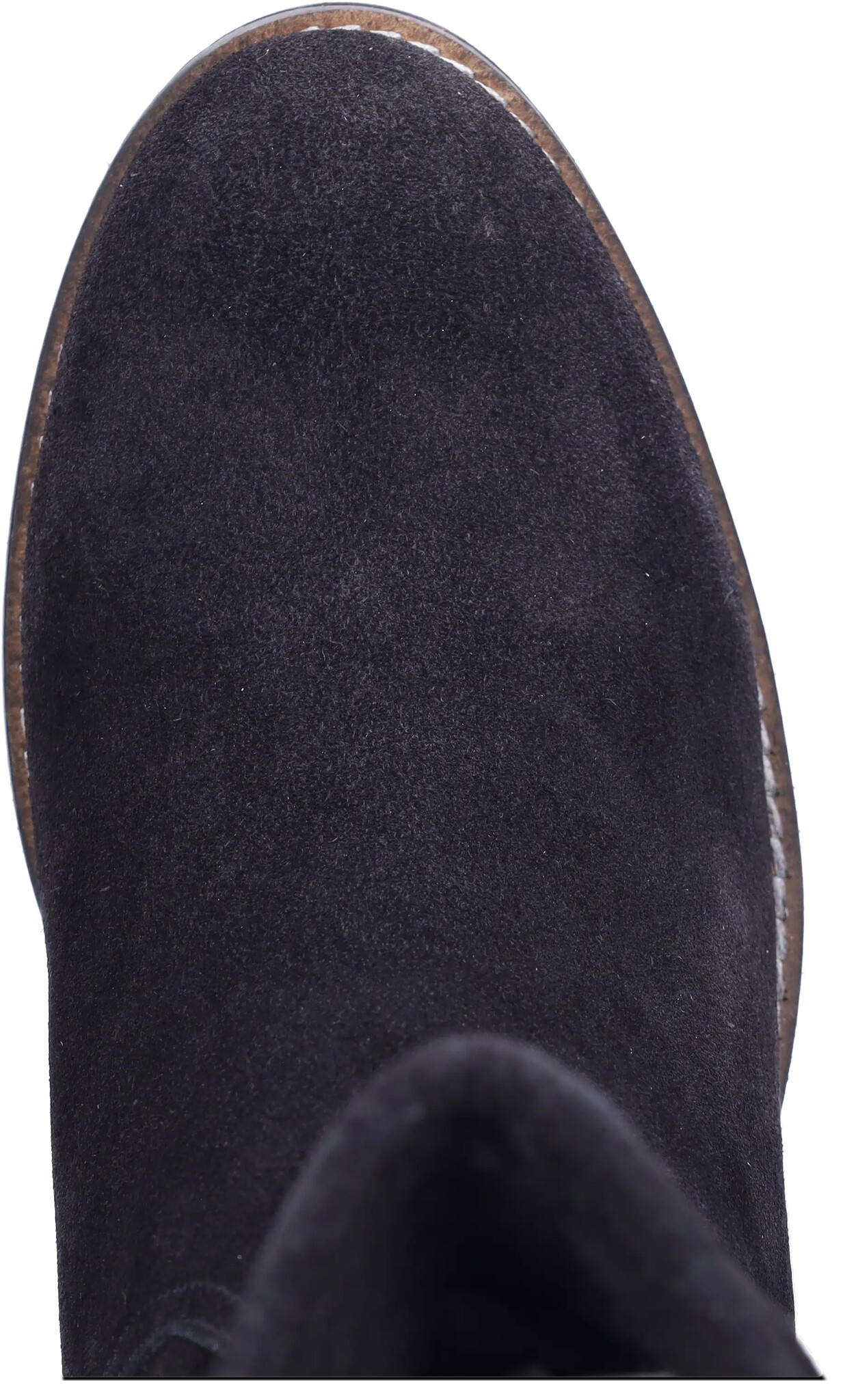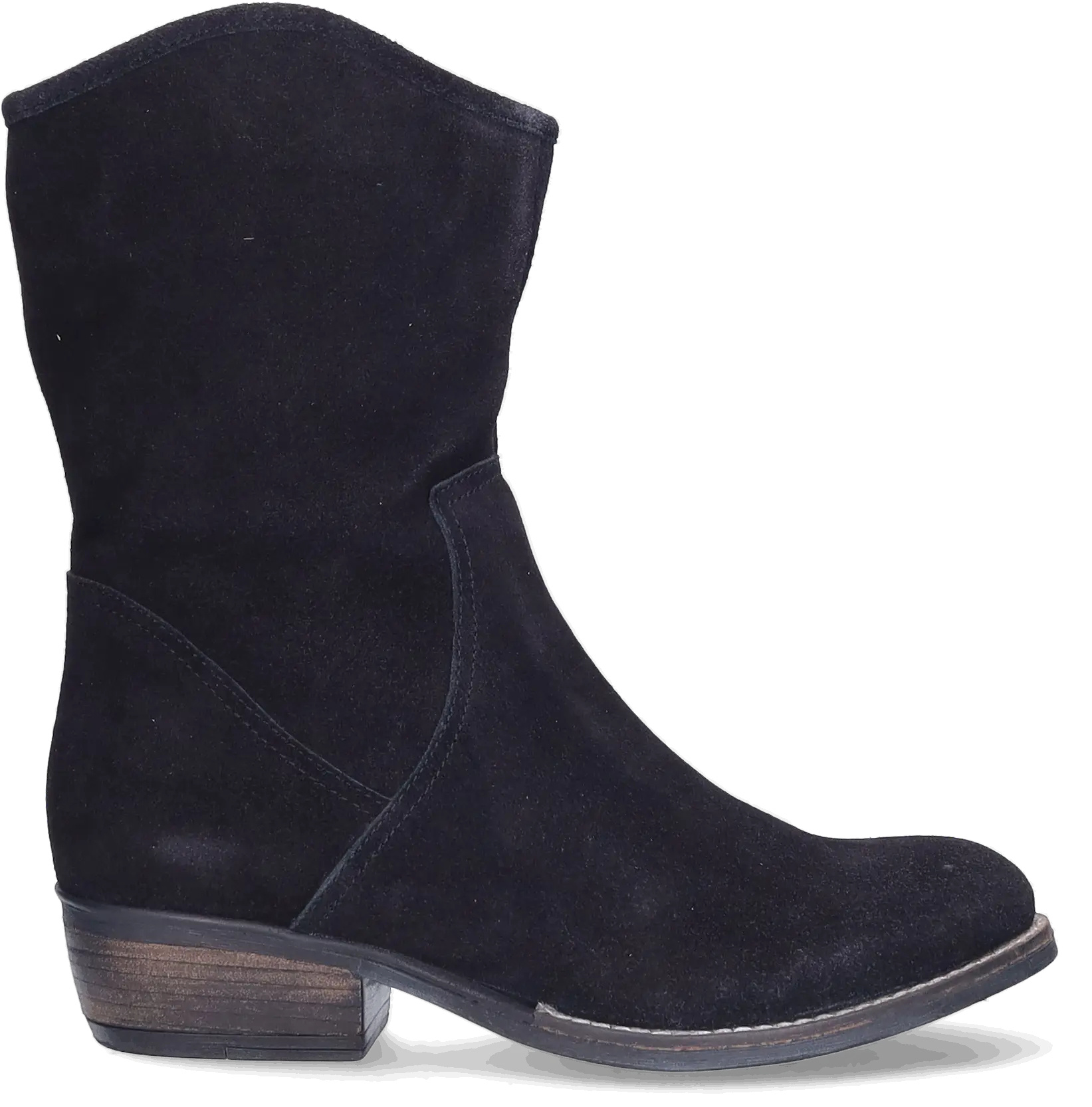 Go for a rugged Western look with Helston, a wide fit ankle boot. Made from soft black suede. The slanted shaft, Cuban heel, and rounded toe give it that classic cowboy style.