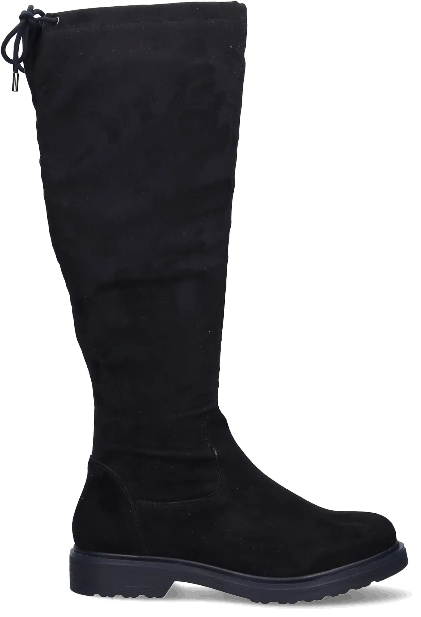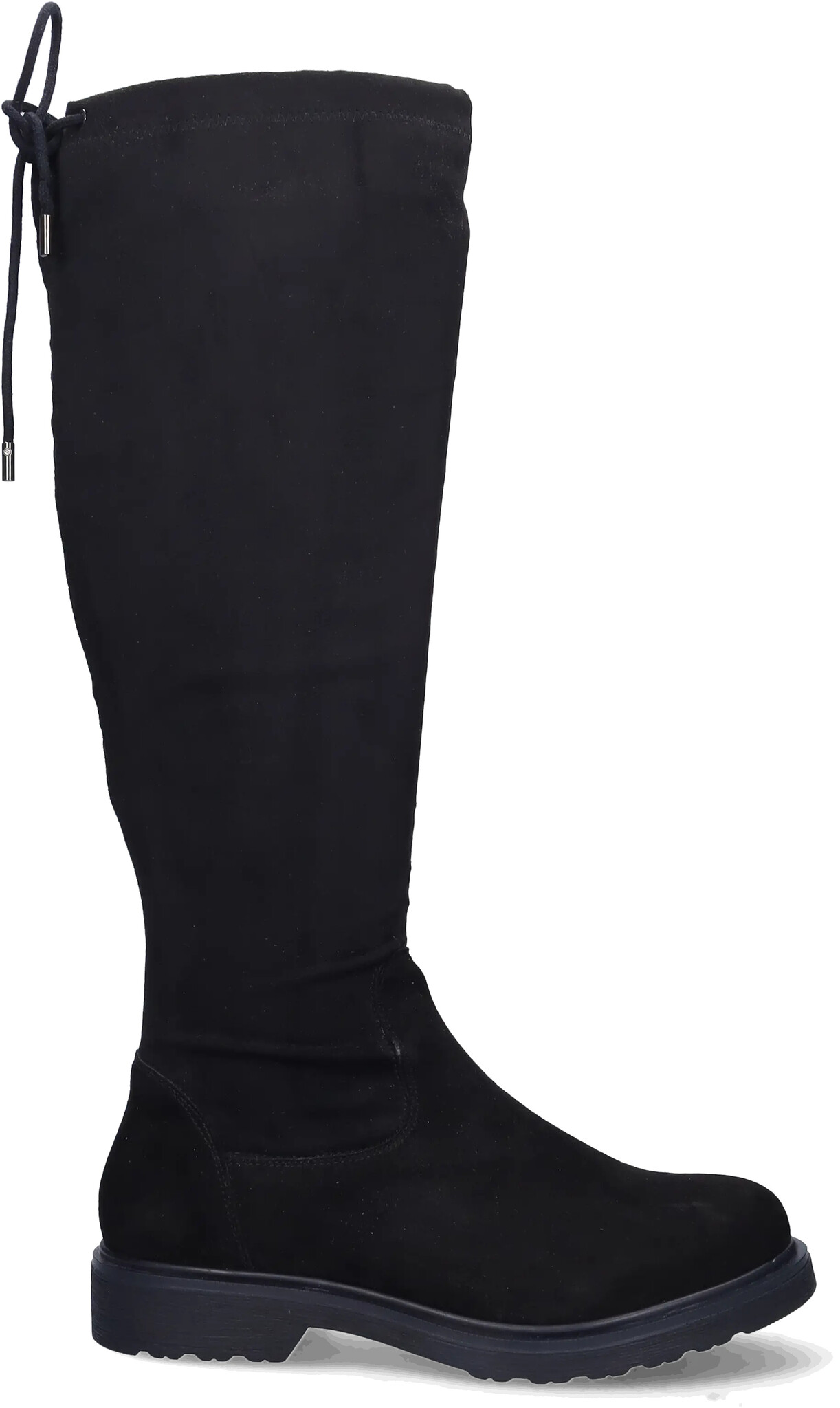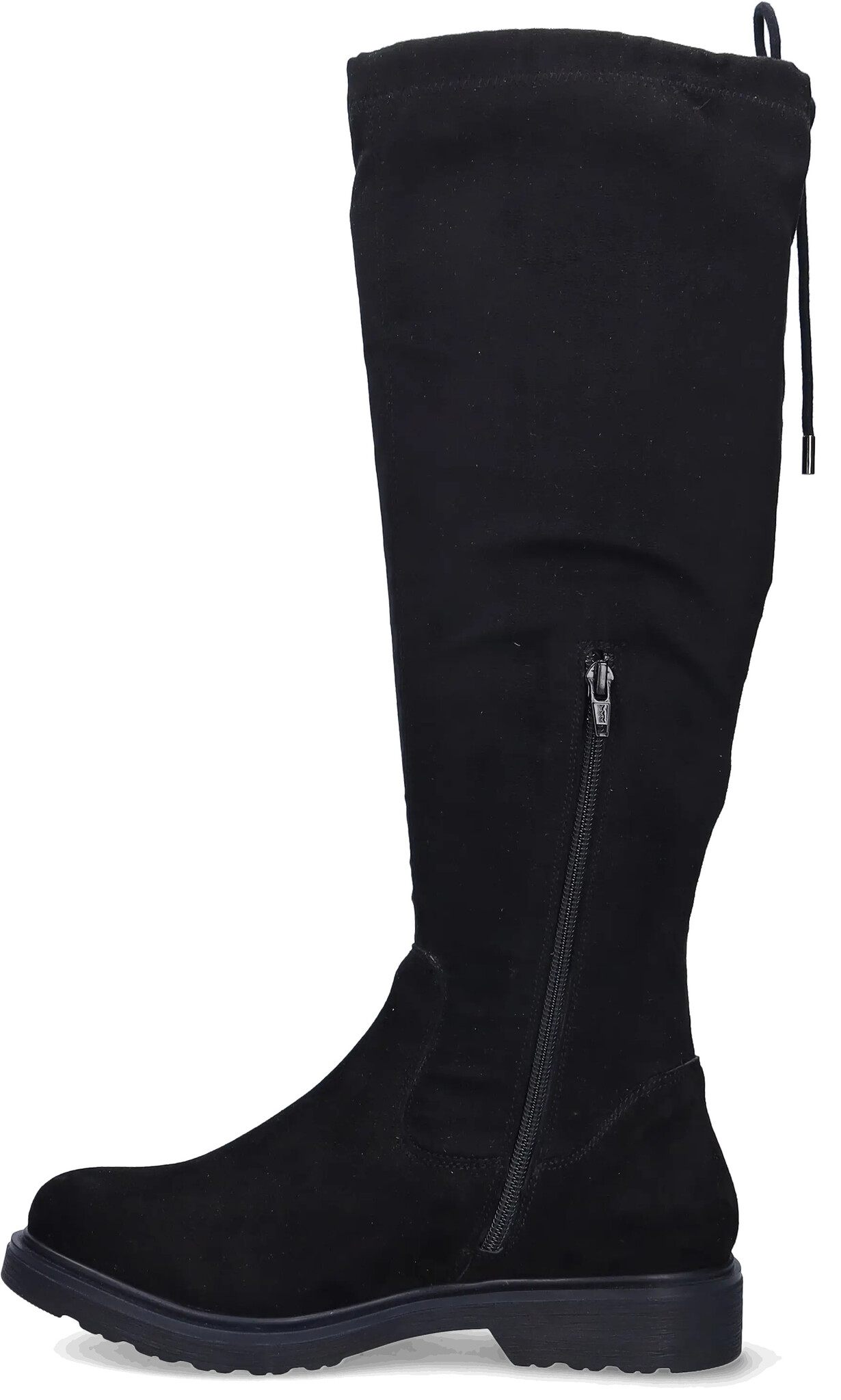 Kelslo is an elegant, black leather wide calf boot. It features a low heel and a lace at the back to adjust the shaft. Equipped with a side zipper, rubber non-slip sole, and removable insole.