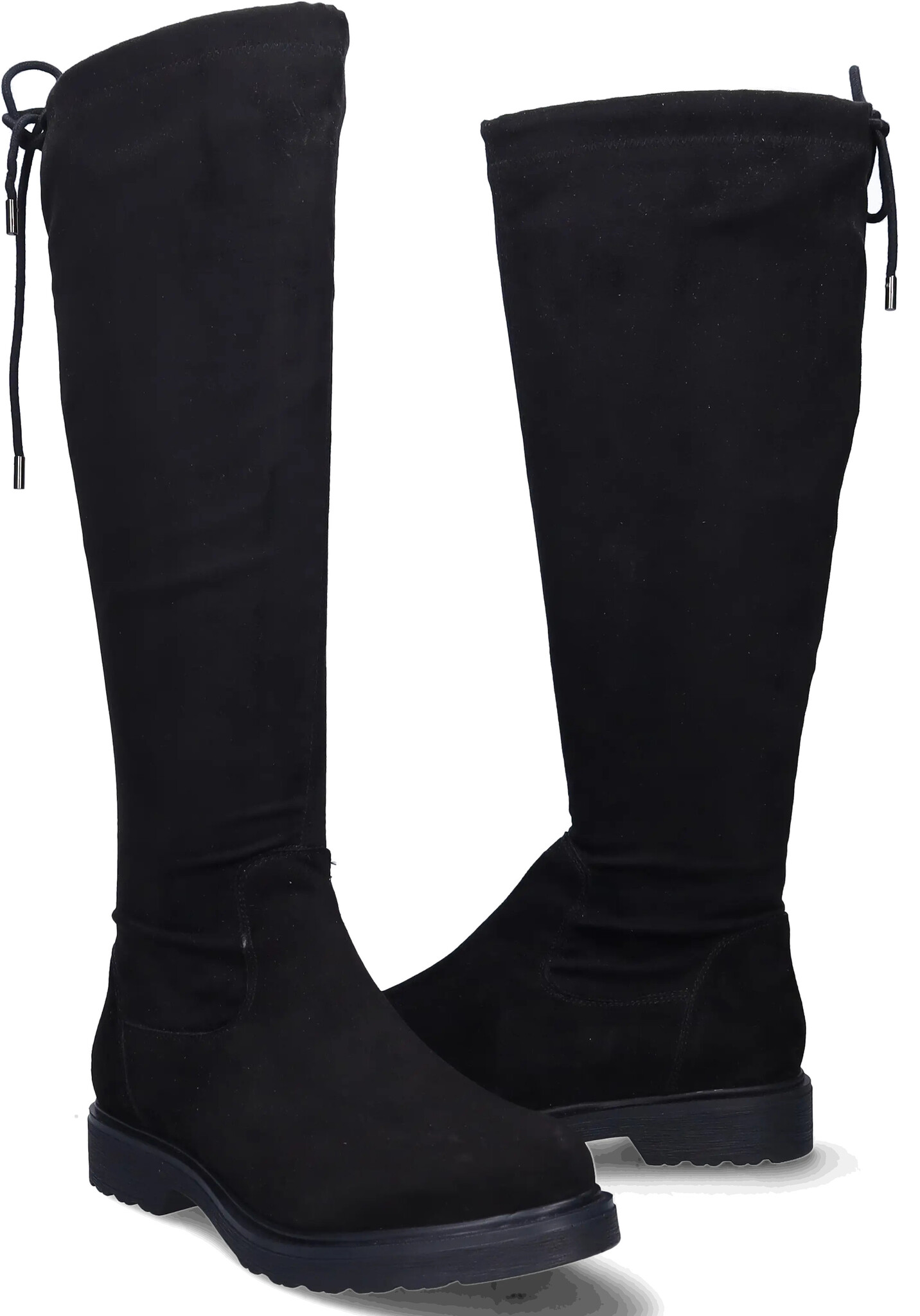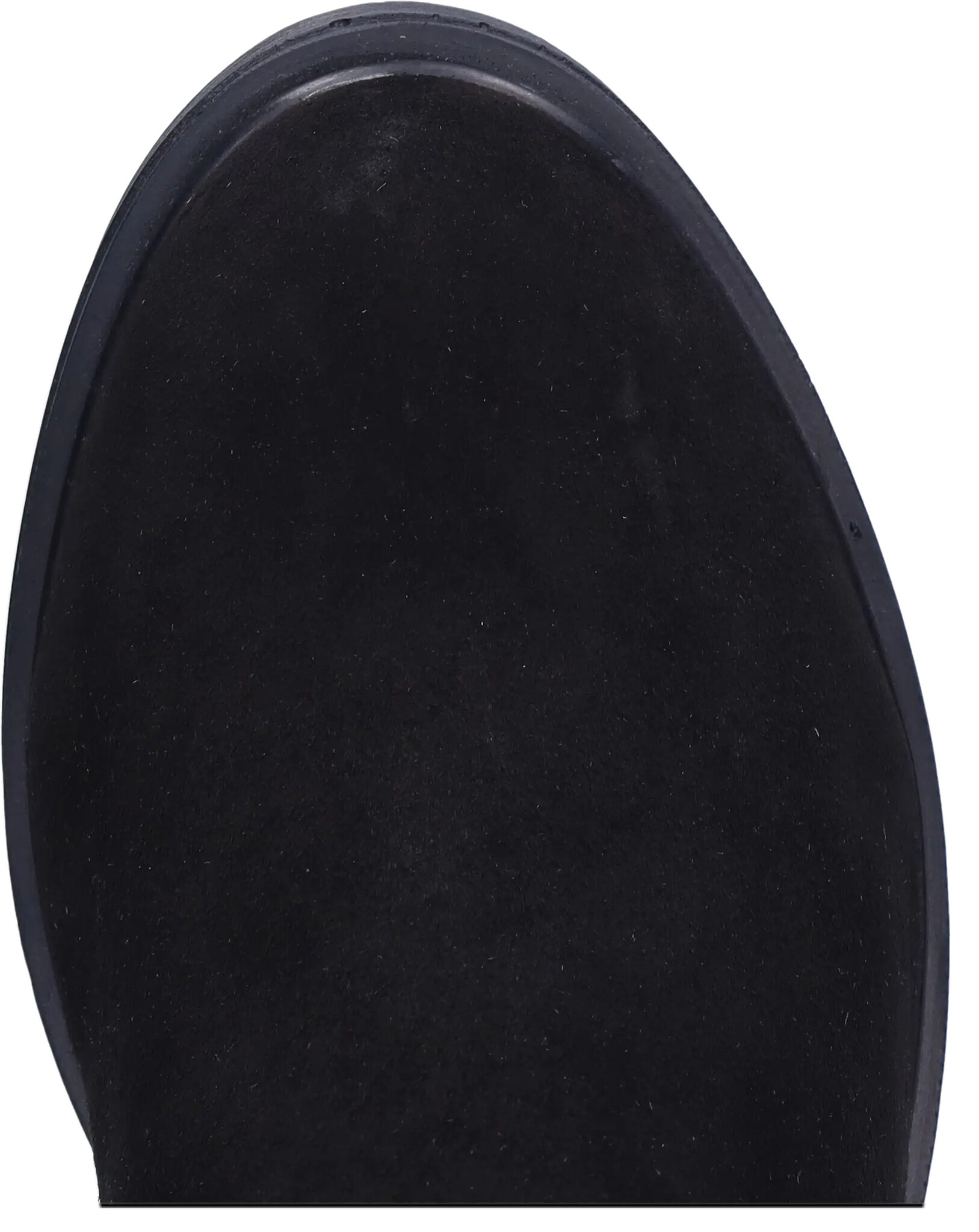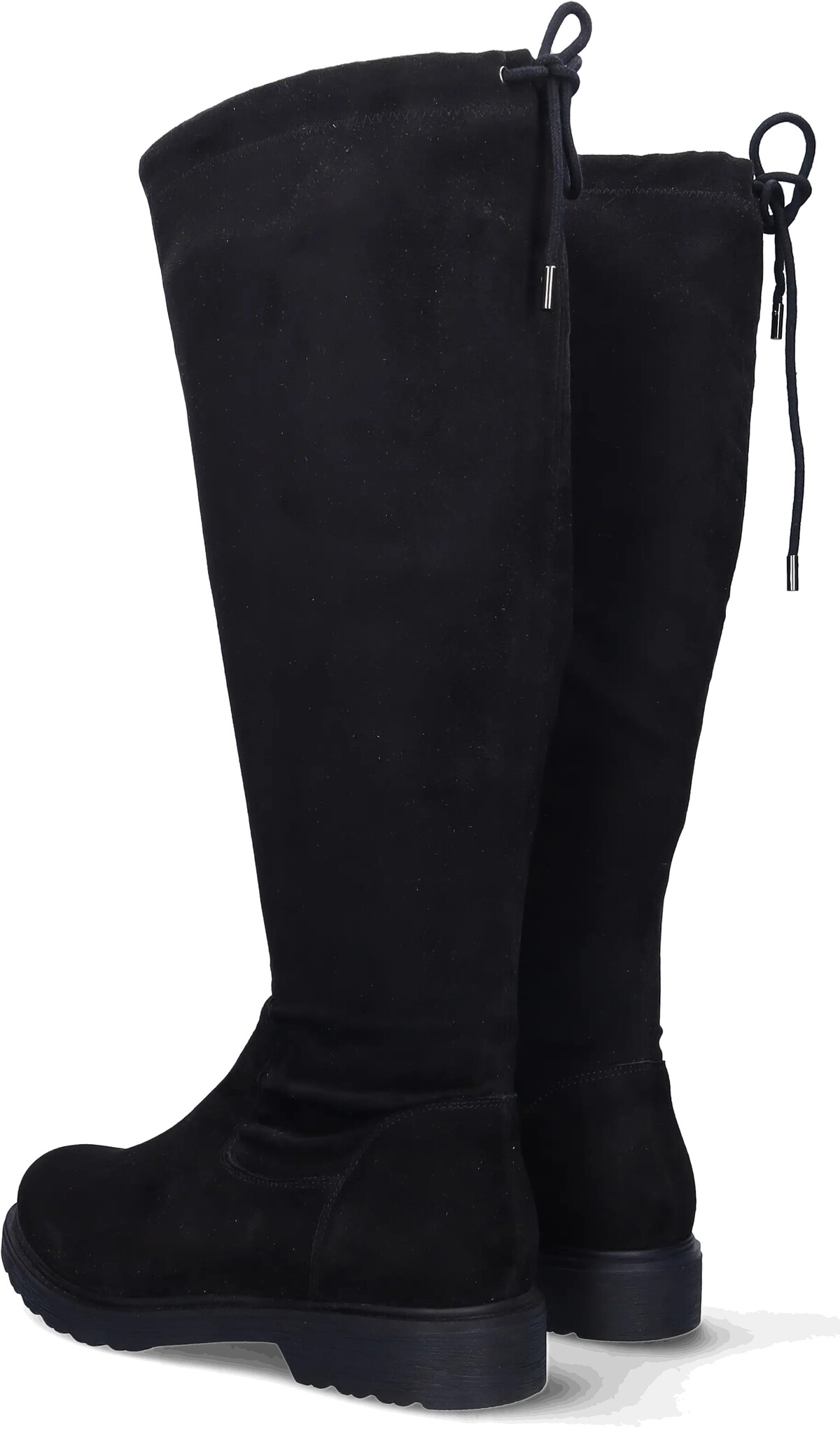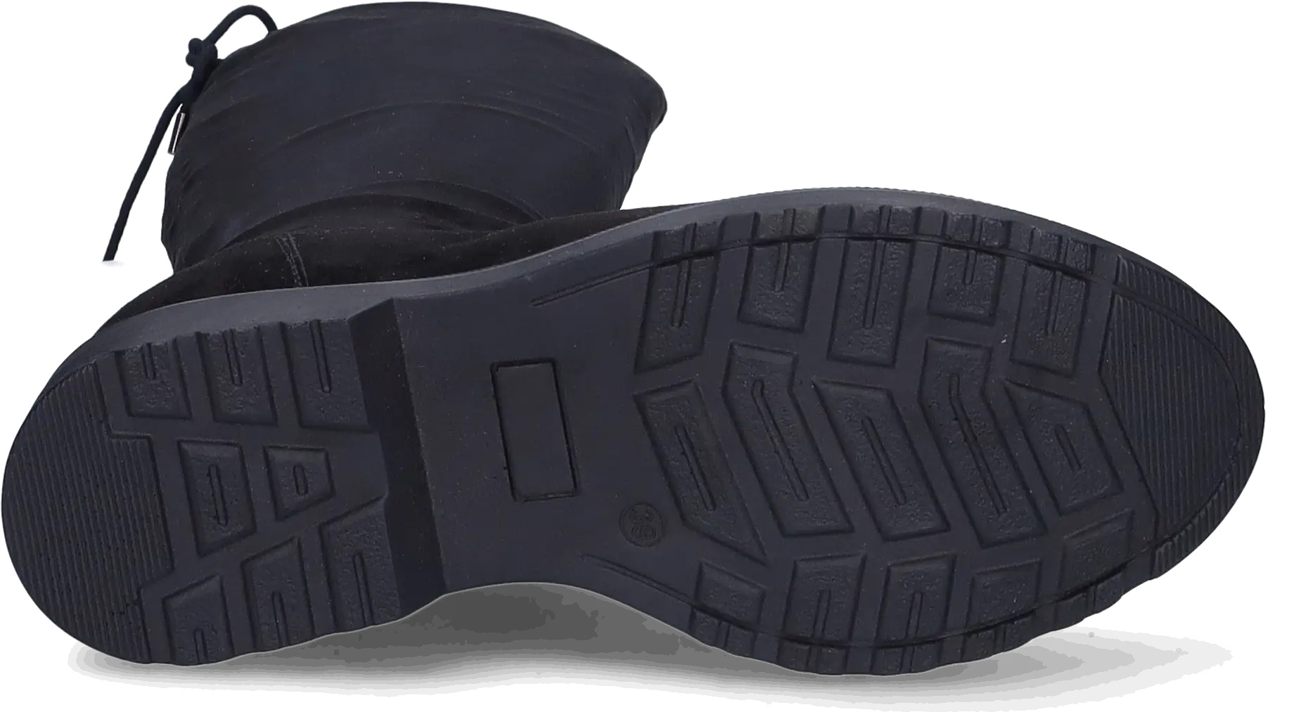 Kelslo is an elegant, black leather wide calf boot. It features a low heel and a lace at the back to adjust the shaft. Equipped with a side zipper, rubber non-slip sole, and removable insole.