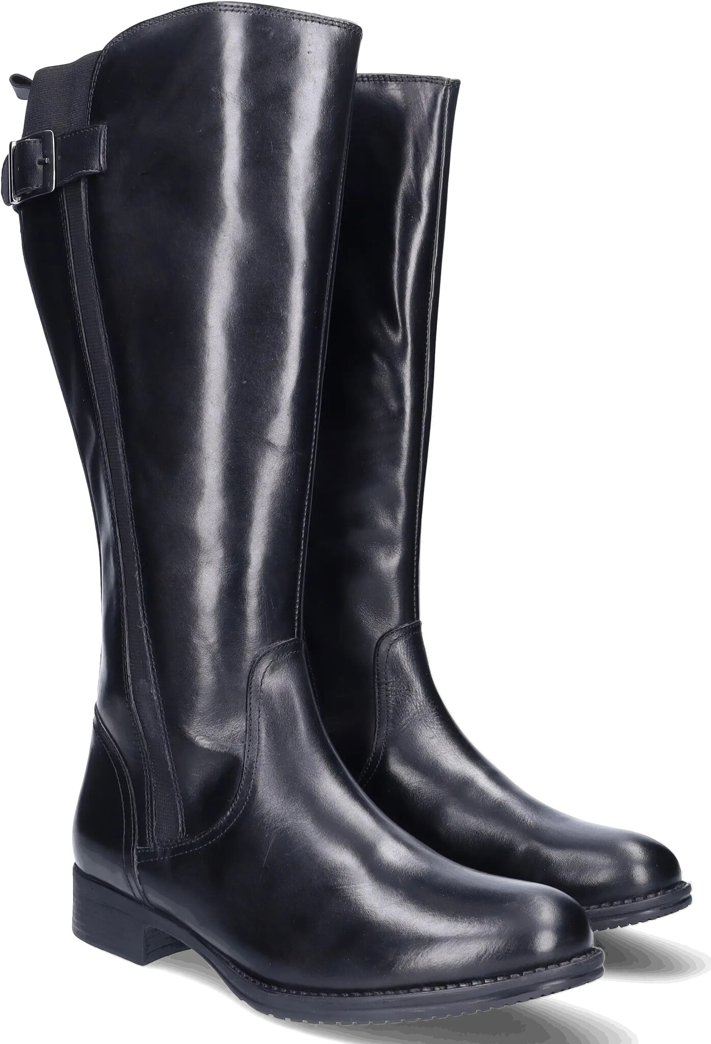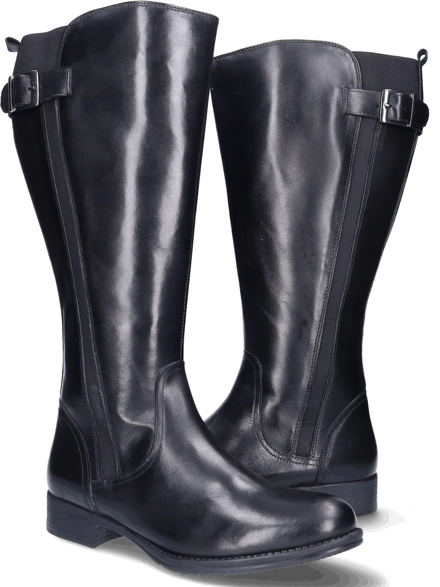 Kempten is a classic, black women's wide calf boot. This model is made from silky soft leather and has elastic inserts on the side for a flexible fit and a sturdy buckle on the calf for extra style. This model has a flexible, non-slip sole for stability and removable insoles, making it suitable for arch supports.