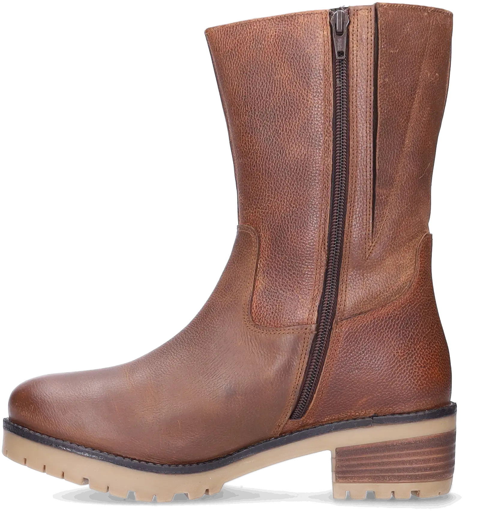 Maldon is a tough, brown leather wide fit ankle boot. It's equipped with an adjustable buckle, a block heel, a side zipper, and a sturdy, anti-slip rubber sole. This style is suitable for wearing with insoles.