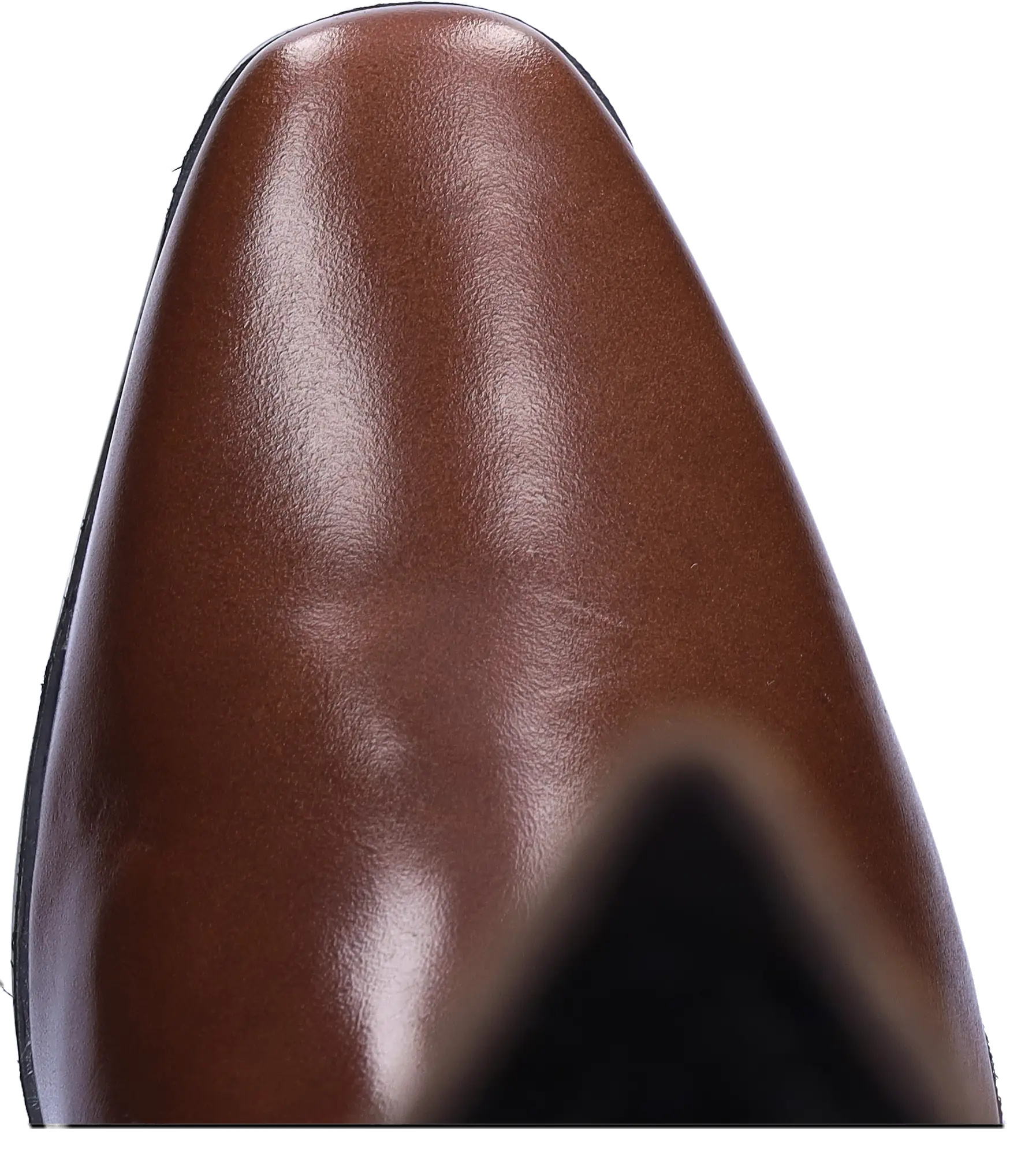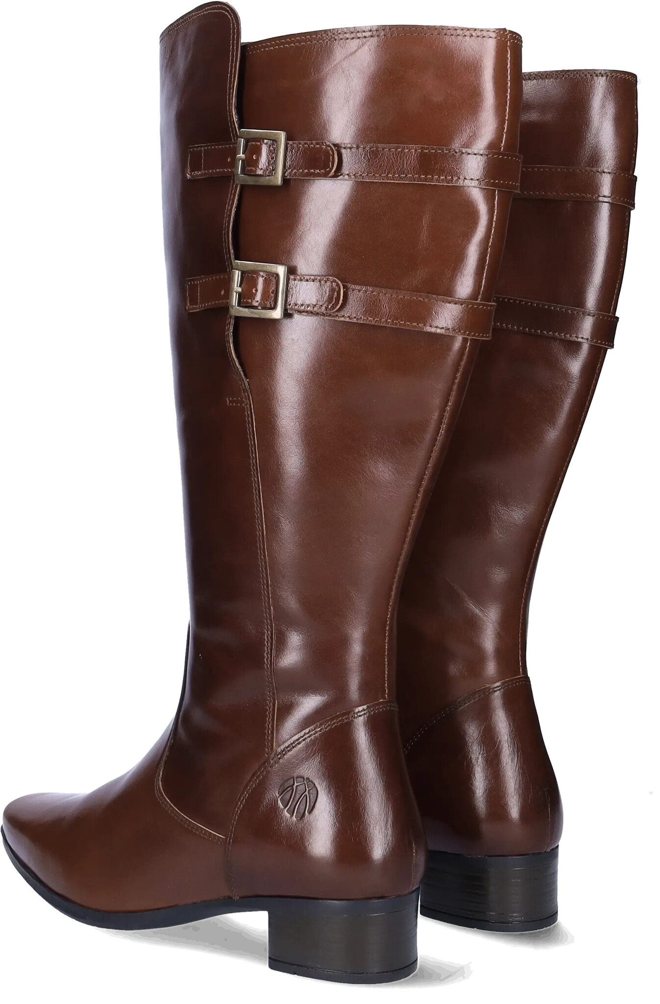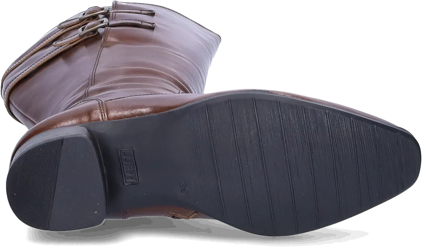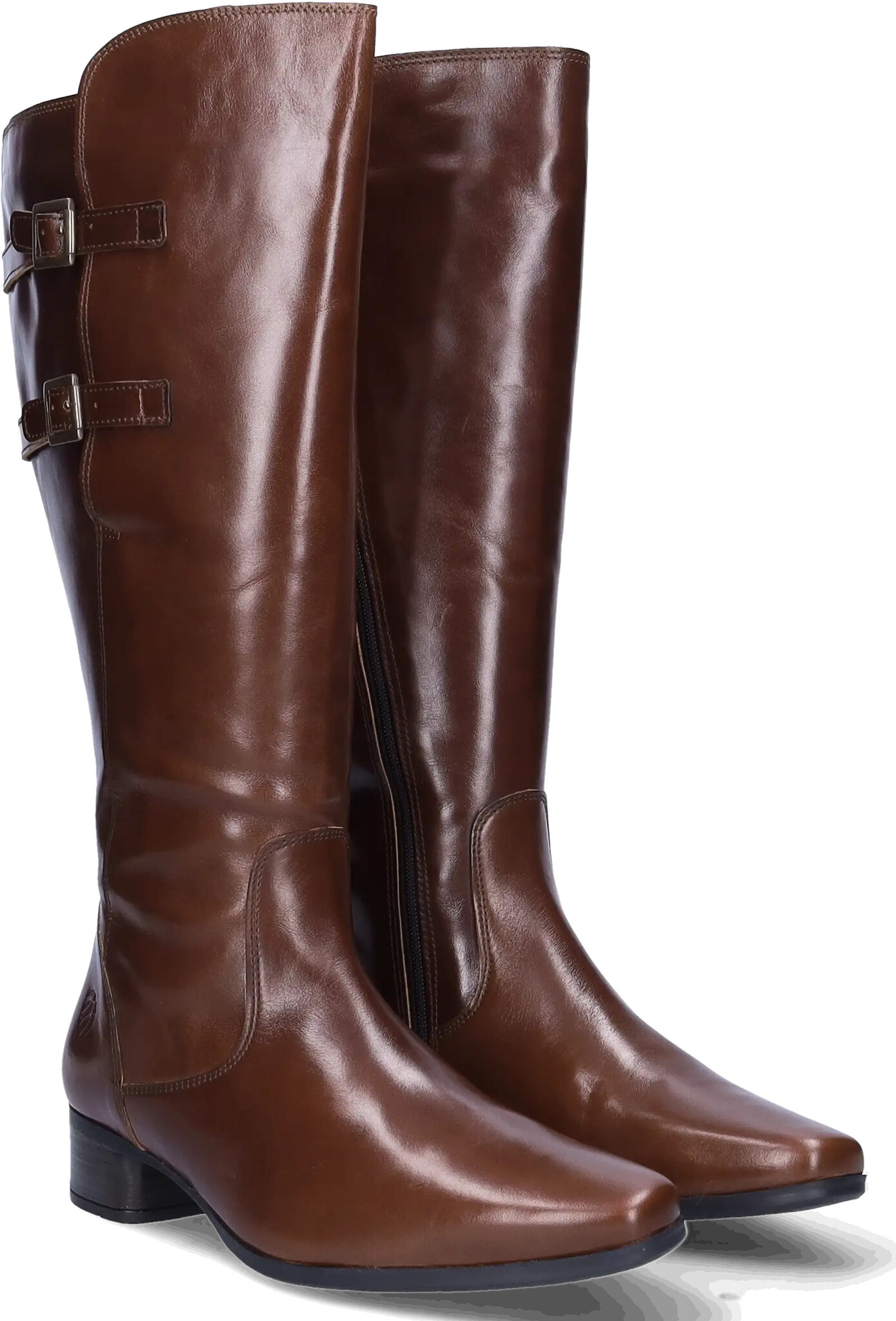 Piraens is a cognac-colored extra wide calf boot made from high-quality leather. This boot features adjustable side buckles that are both decorative and functional, allowing you to fine-tune the fit. This model has a low heel, a zip closure, and is suitable for orthotic insoles.