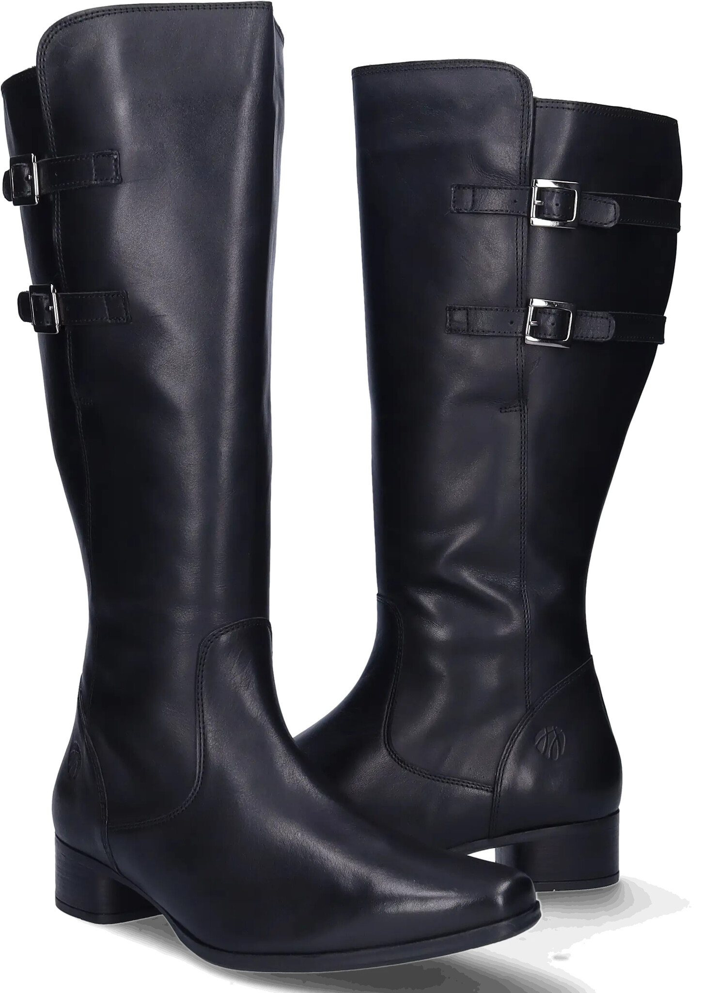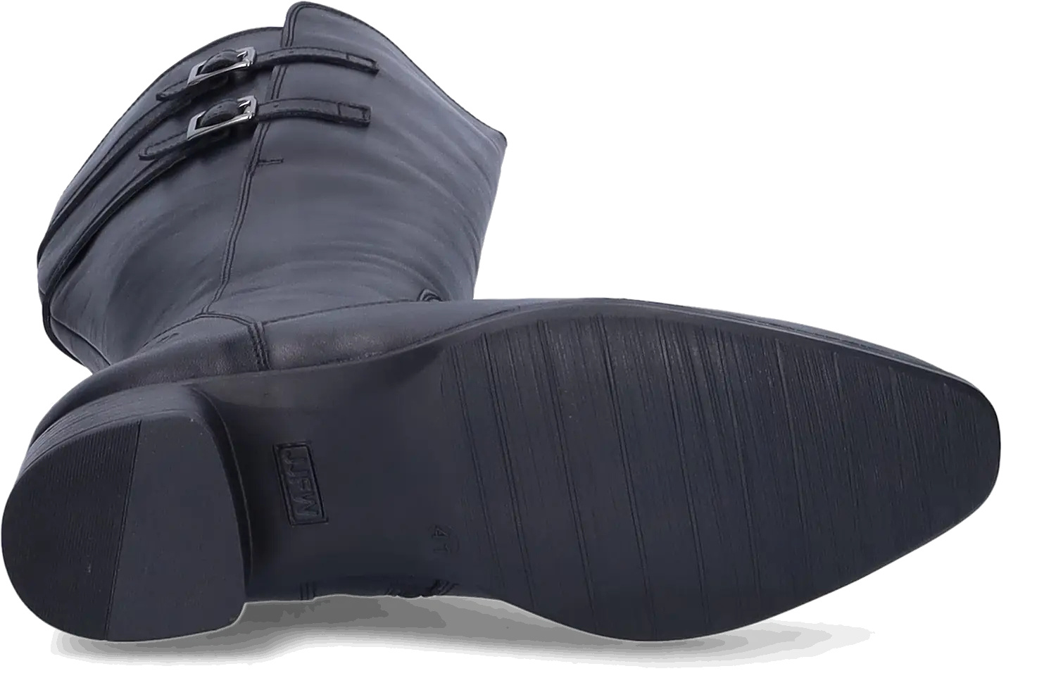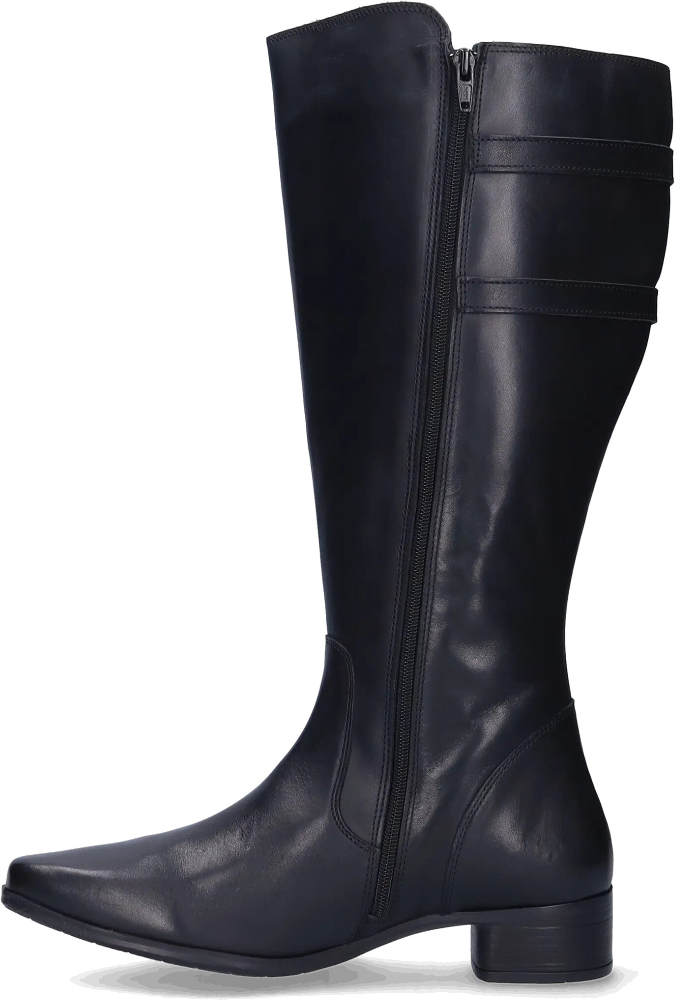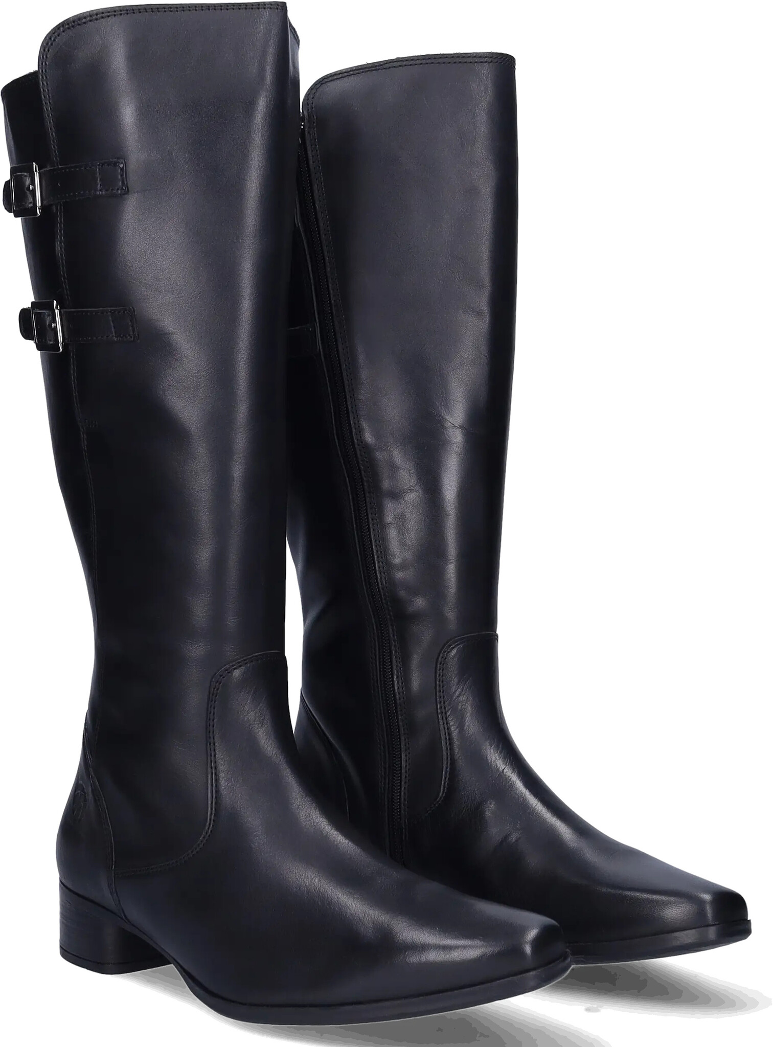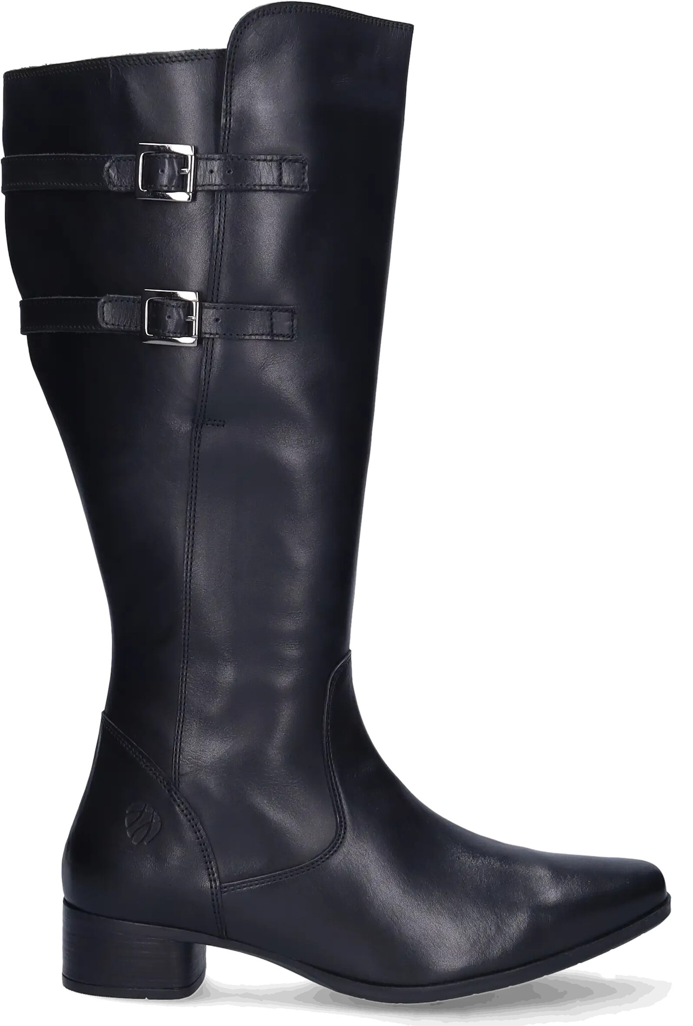 Piraens is a black extra wide calf boot, made of high-quality leather. This boot is equipped with adjustable buckles on the side, which serve both a decorative and practical function, allowing you to refine the fit. This style has a low heel, a zipper closure, and is suitable for orthopedic insoles.
