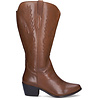 Plymouth is a rich, cognac-colored leather wide calf cowboy boot that combines classic Western style with modern comfort. It's designed with a 4 cm Cuban heel and refined Western stitching. The removable insole offers the flexibility to add orthopedic insoles if needed.