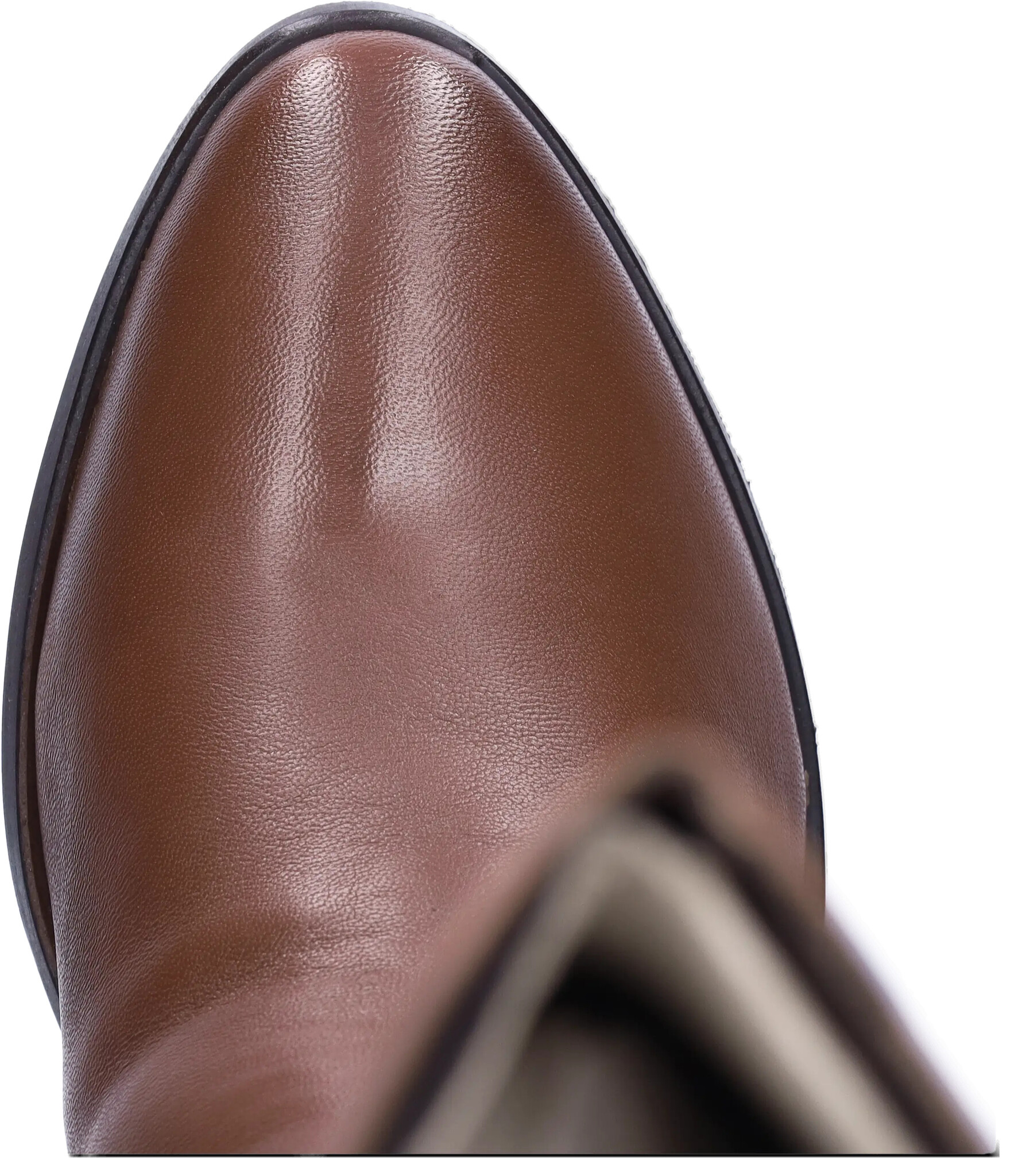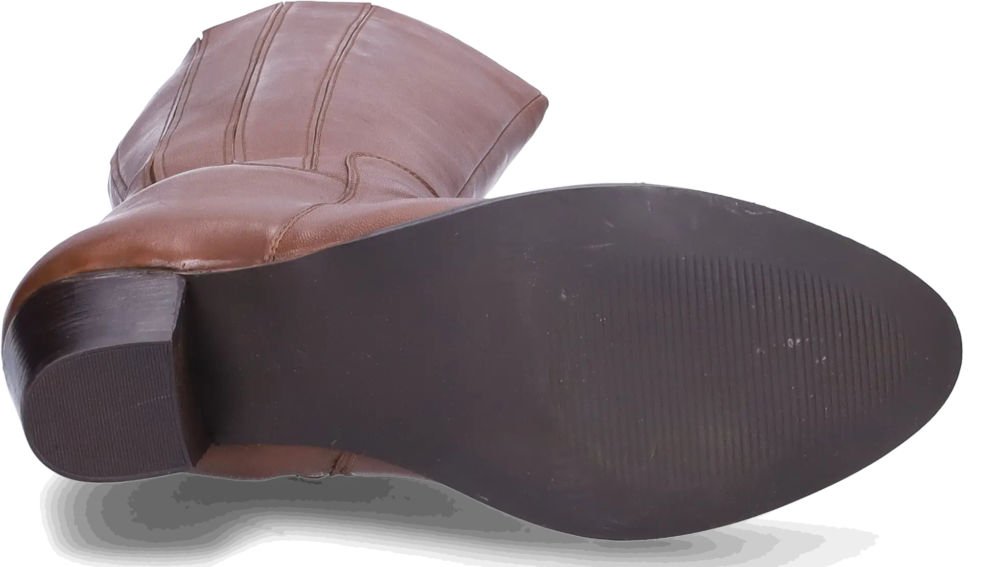 Prescot is a cognac-colored leather boot with a mid height heel, a wide calf and added stretch. Available in an (extra) wide and a narrow shaft, Prescot has. a rubber anti-slip sole, removable insoles and can be worn with orthotic inserts.