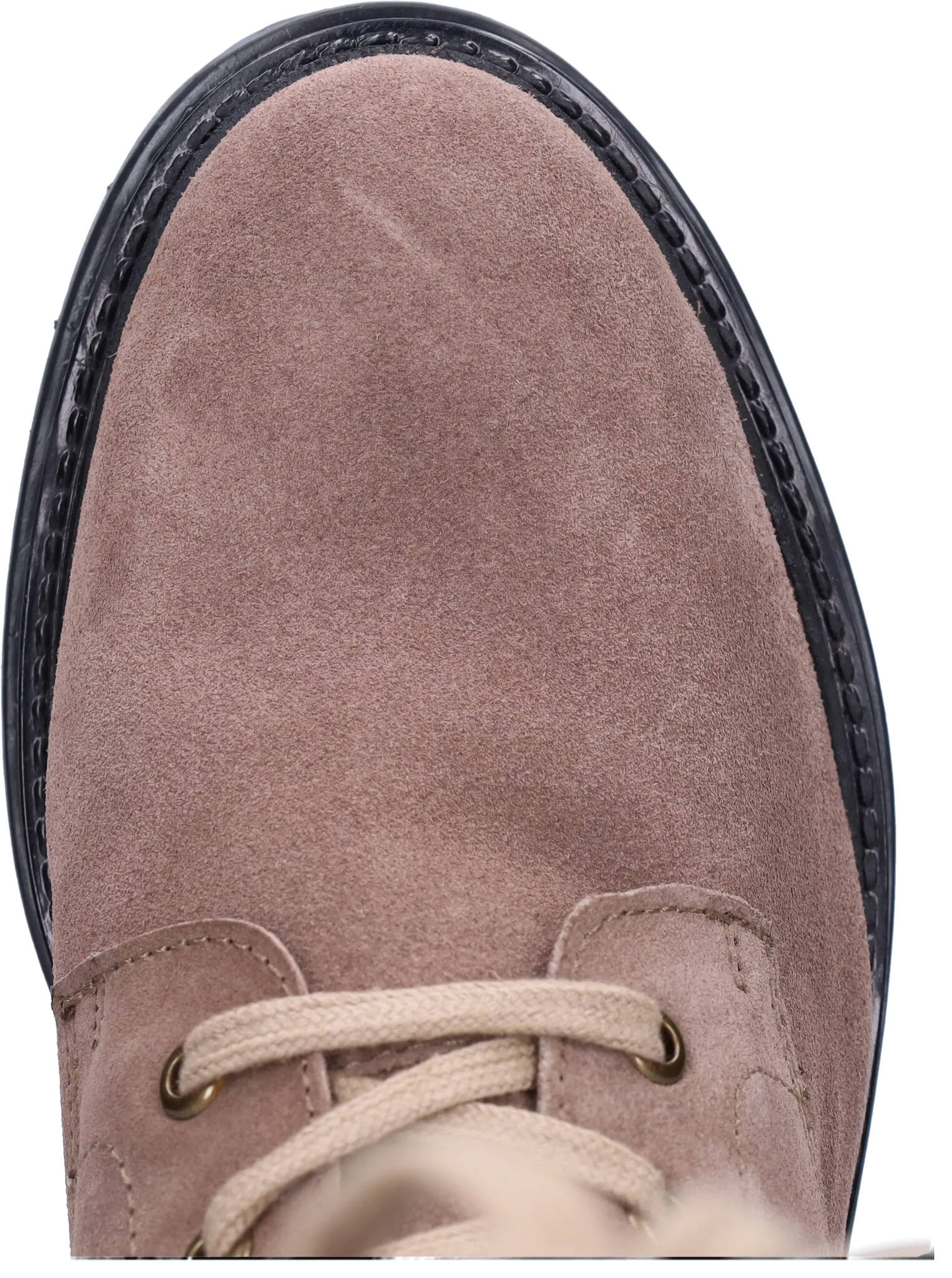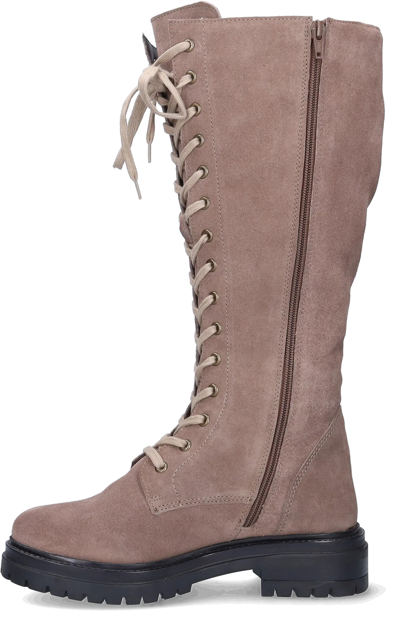 Redcar extra wide calf boot is made from taupe-colored suede, built on a robust, fully profiled sole. This makes the model suitable for any terrain while still having a modern and tough look. It has adjustable laces on the front and a zipper on the inside. Thanks to its removable insoles, you can wear your own custom orthotics.