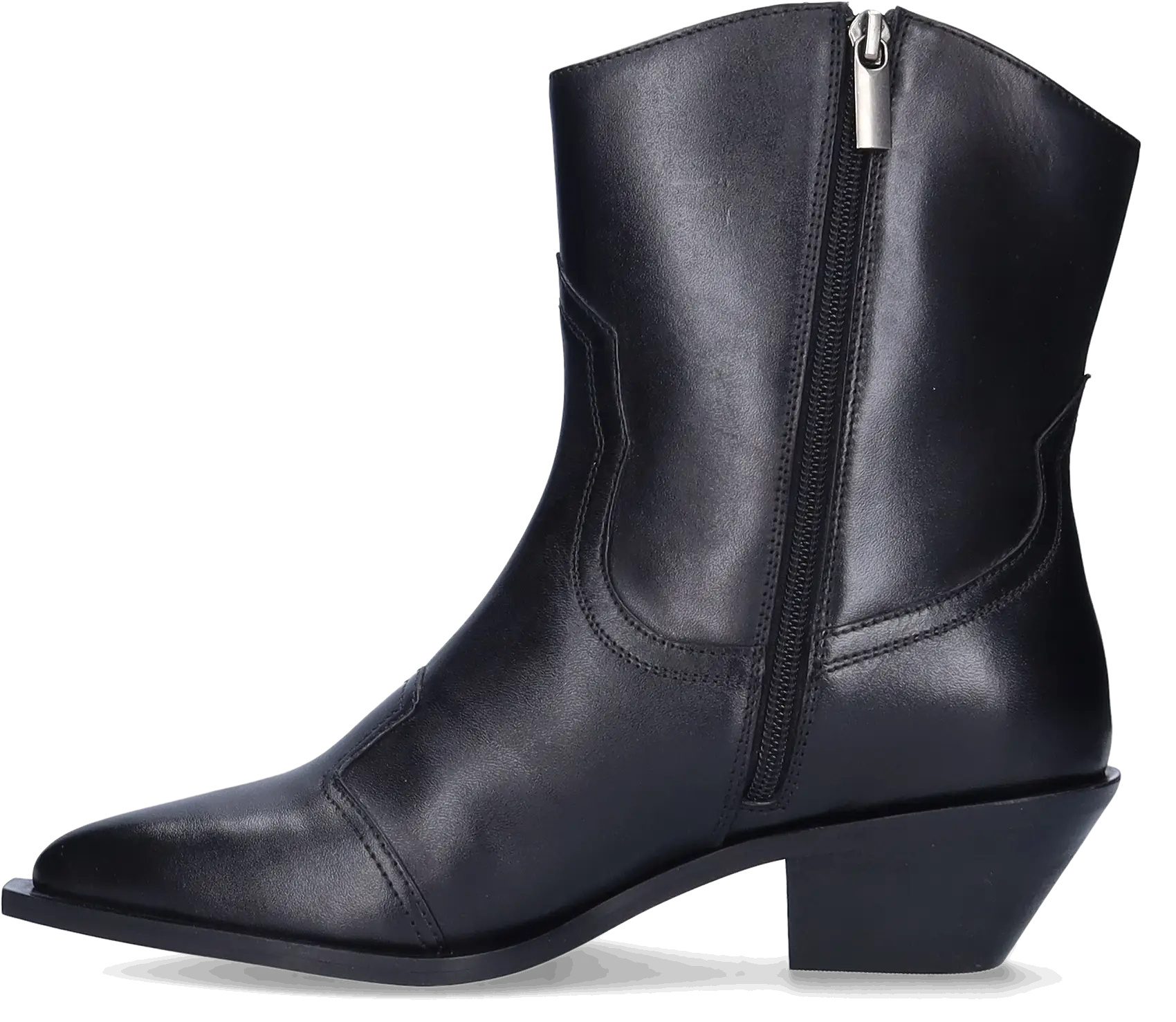Opt for a classic look with the black version of the Ripley. This wide fit ankle boot has a cool western style. This ankle boot features a distinctive Cuban heel and a pointed toe. It's equipped with a zipper to make it easy to put on and take off. This model is also suitable for wearing with insoles.