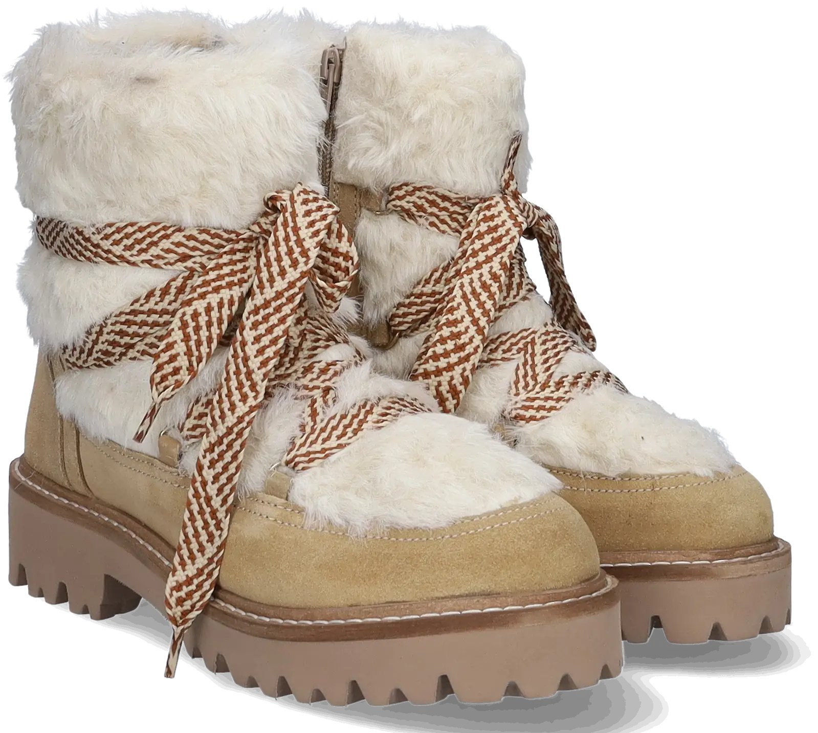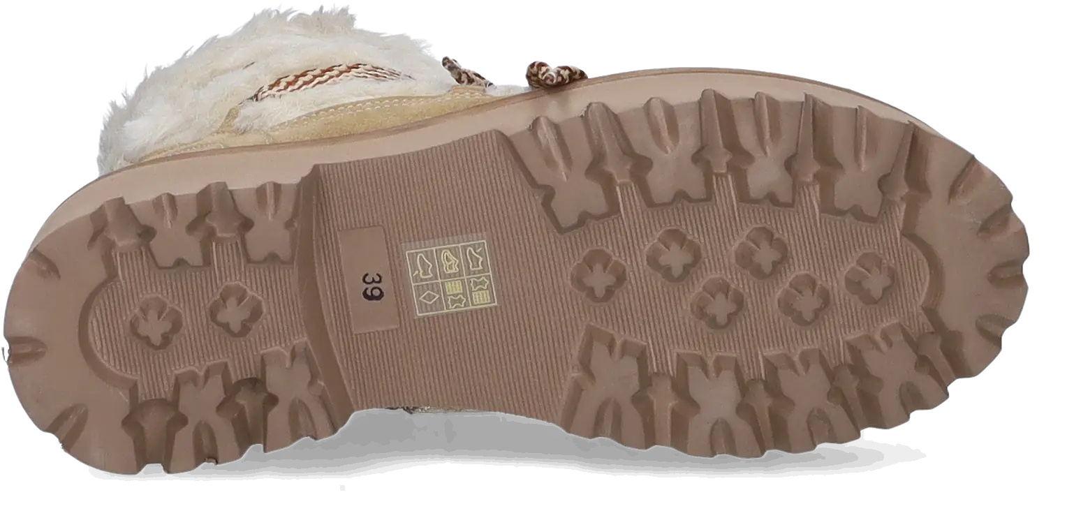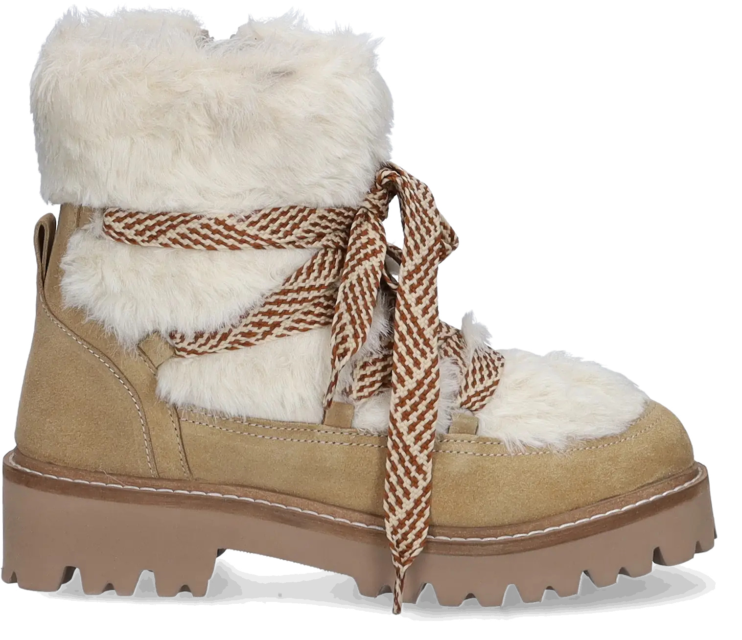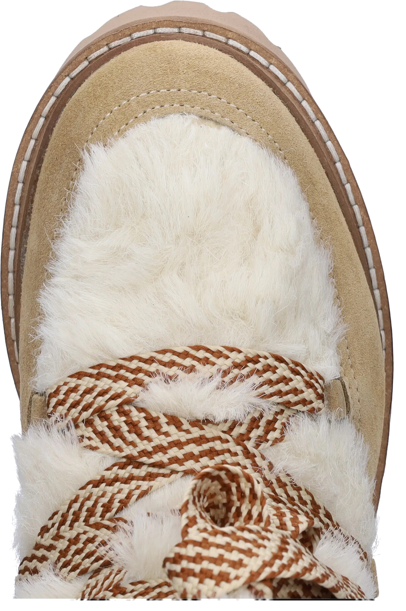 Sutton is a soft and warm leather wide-fit ankle boot, in beige. It's made from a faux fur lining and leather. The boot features a thick rubber lug sole for good grip, a lace-up front, and a side zipper. This style is also suitable for wearing with orthotics.