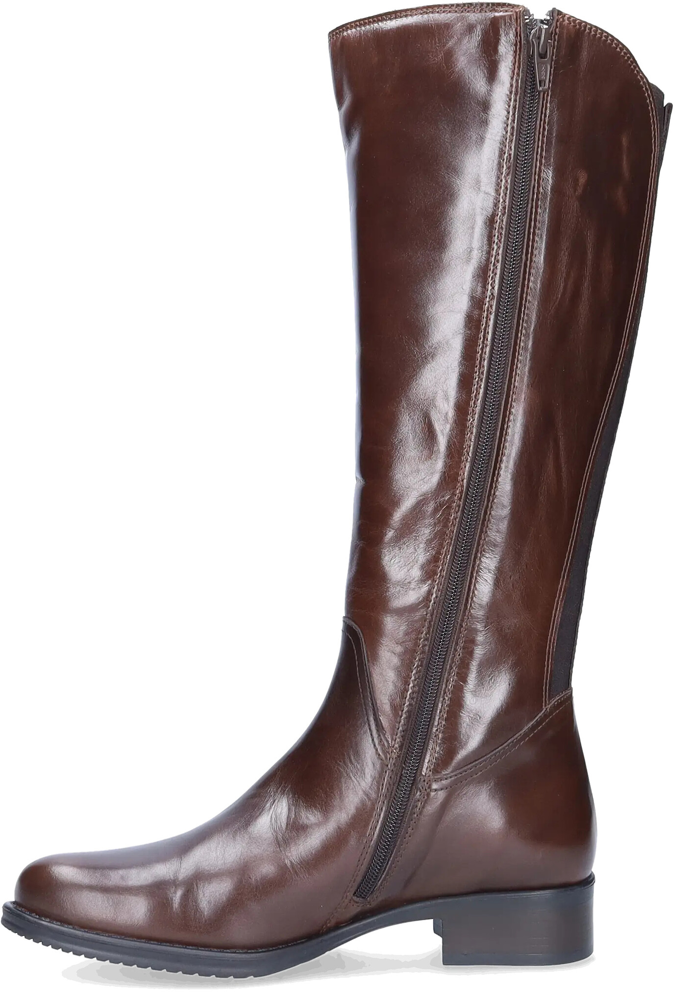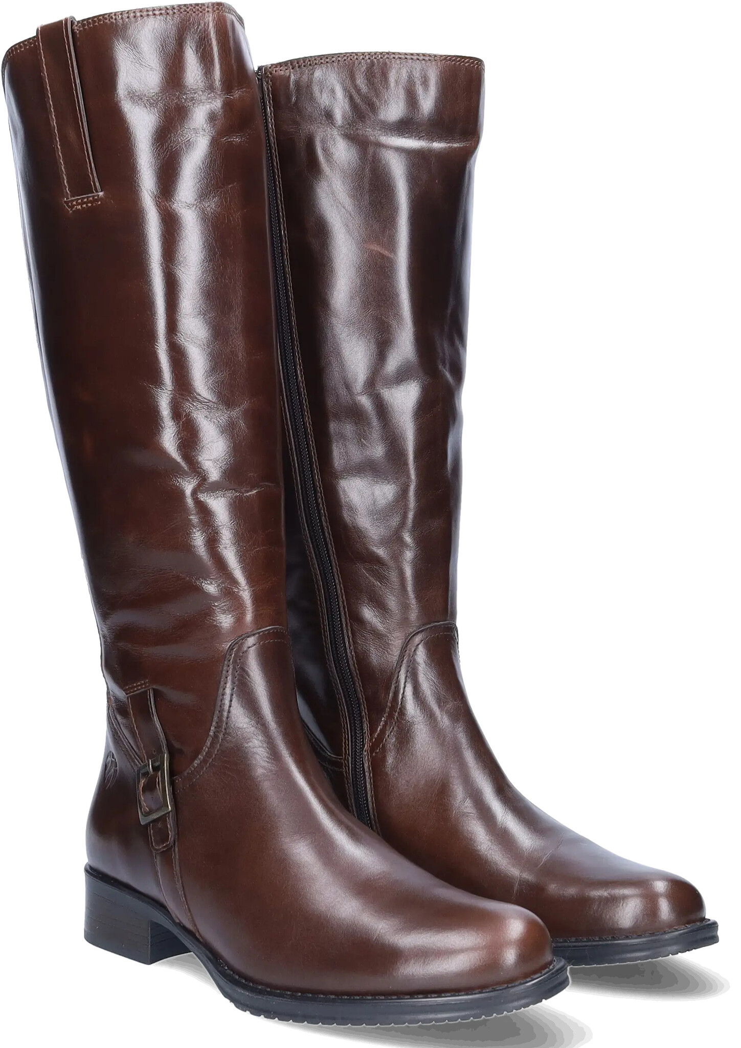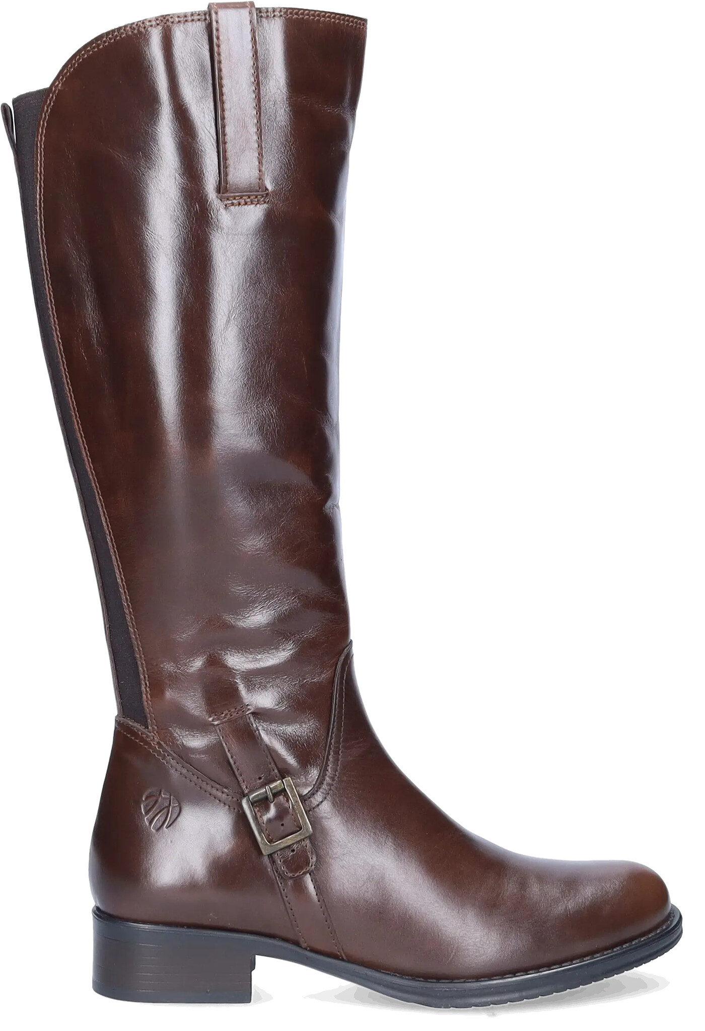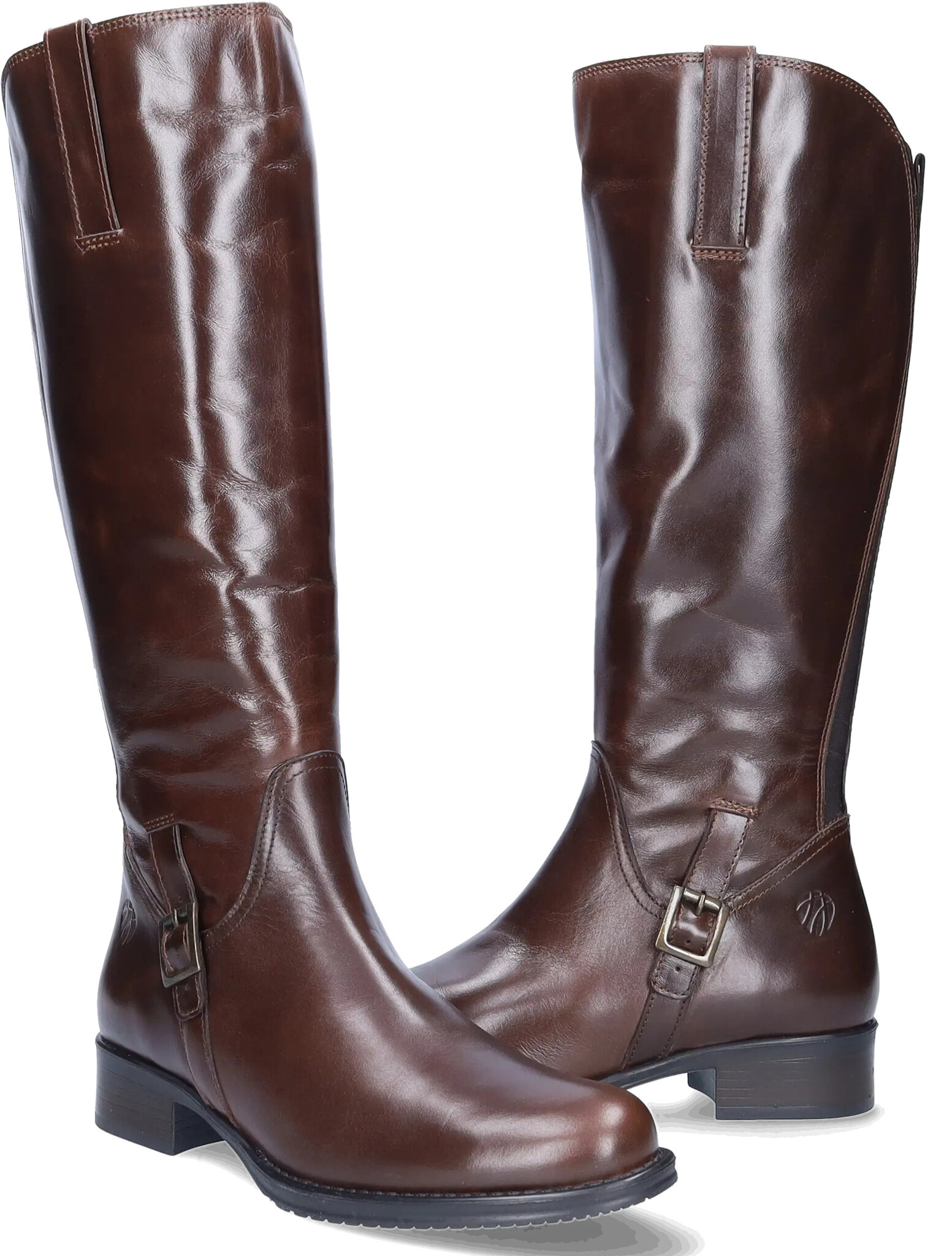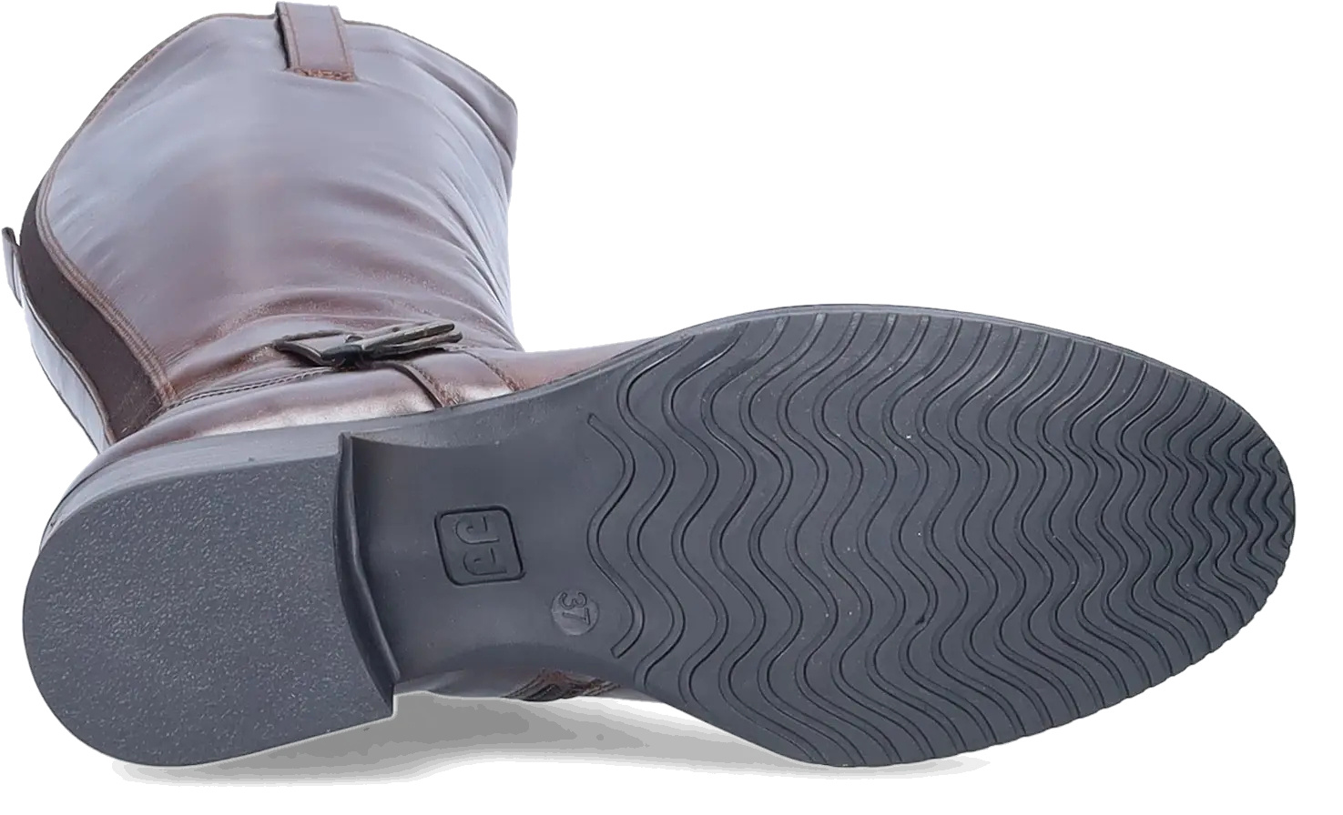 Sydney is an elegant, knee-high wide calf boot made from espresso-colored leather. Thanks to the low heel, stretch back, and convenient zip closure, it is very comfortable. The buckle at the ankle gives the boot a stylish touch. This model is also suitable for wearing orthotics.