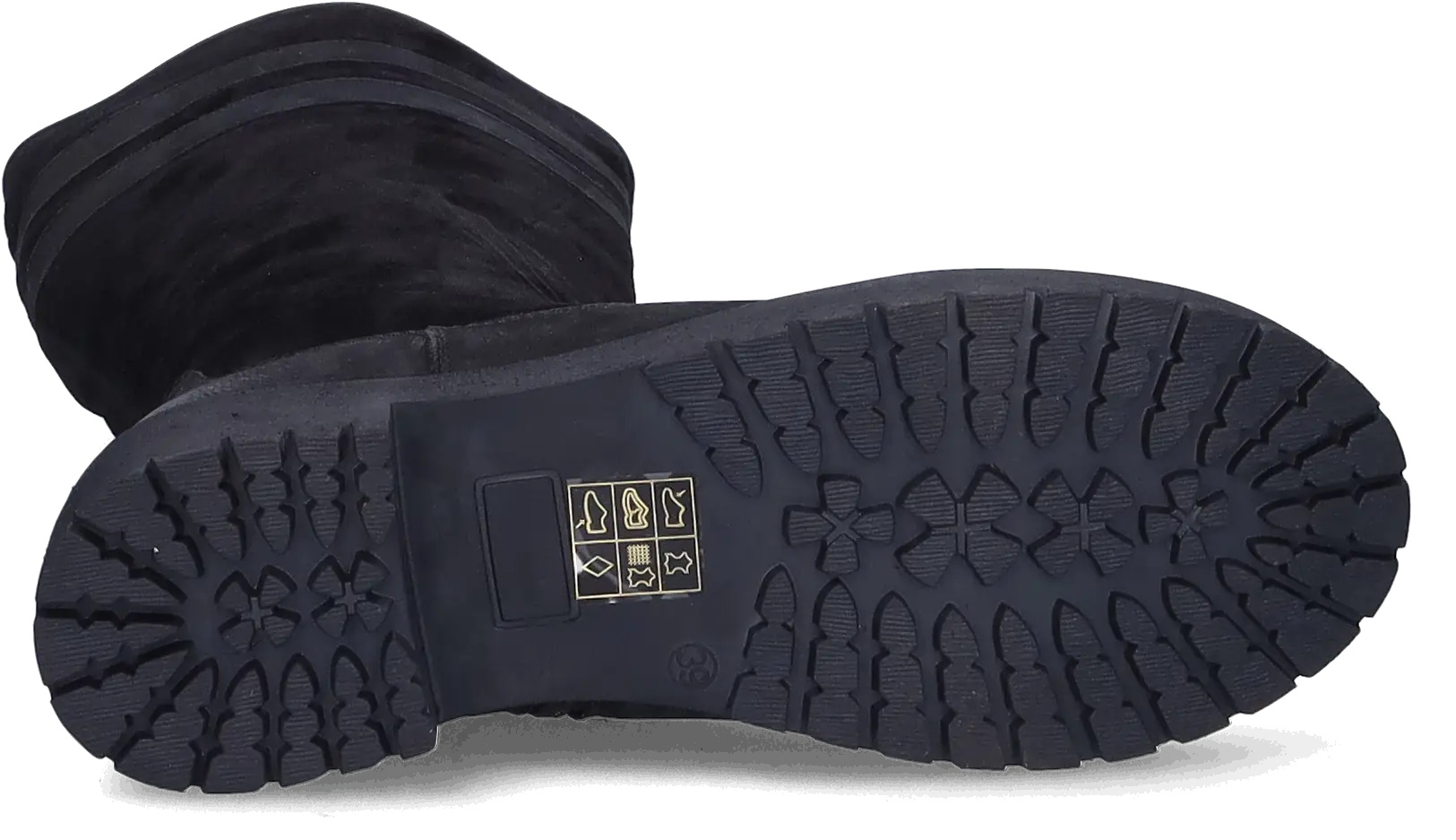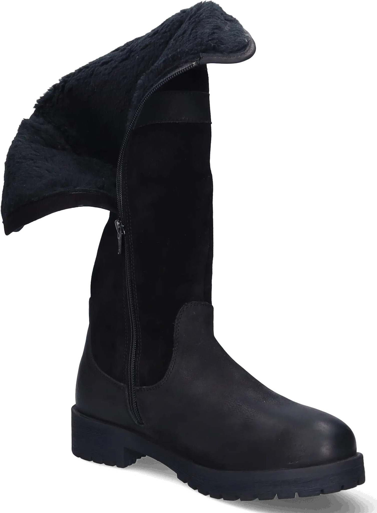 Woburn is an elegant black extra wide calf boot with a leather foot and a warm suede shaft, and it stands on a robust lug sole for excellent grip.