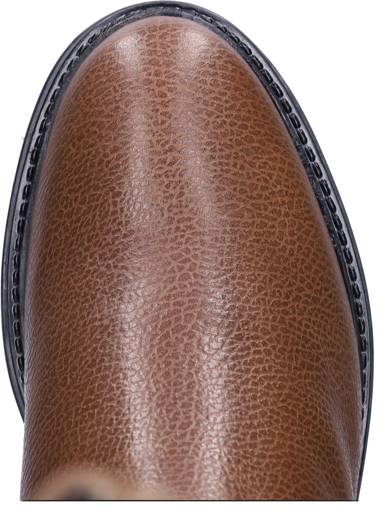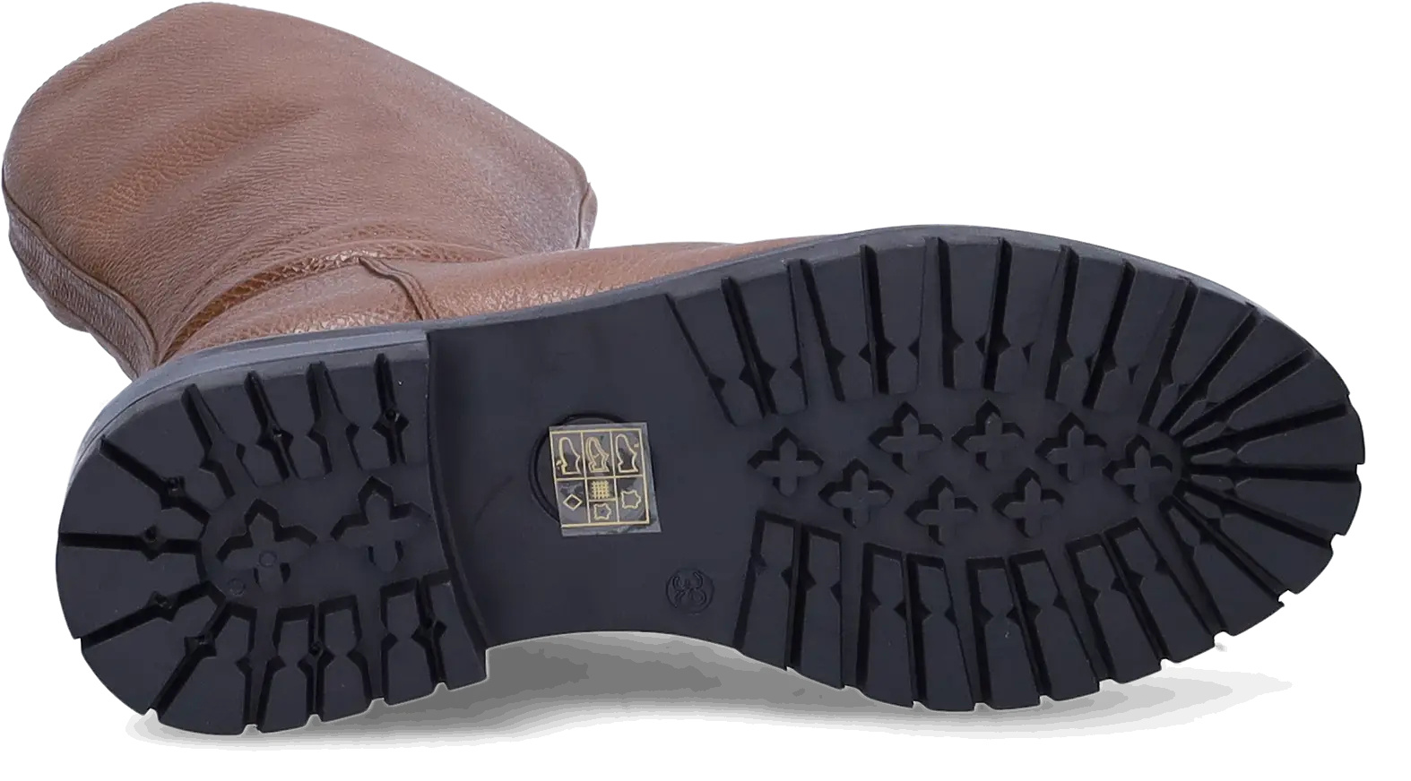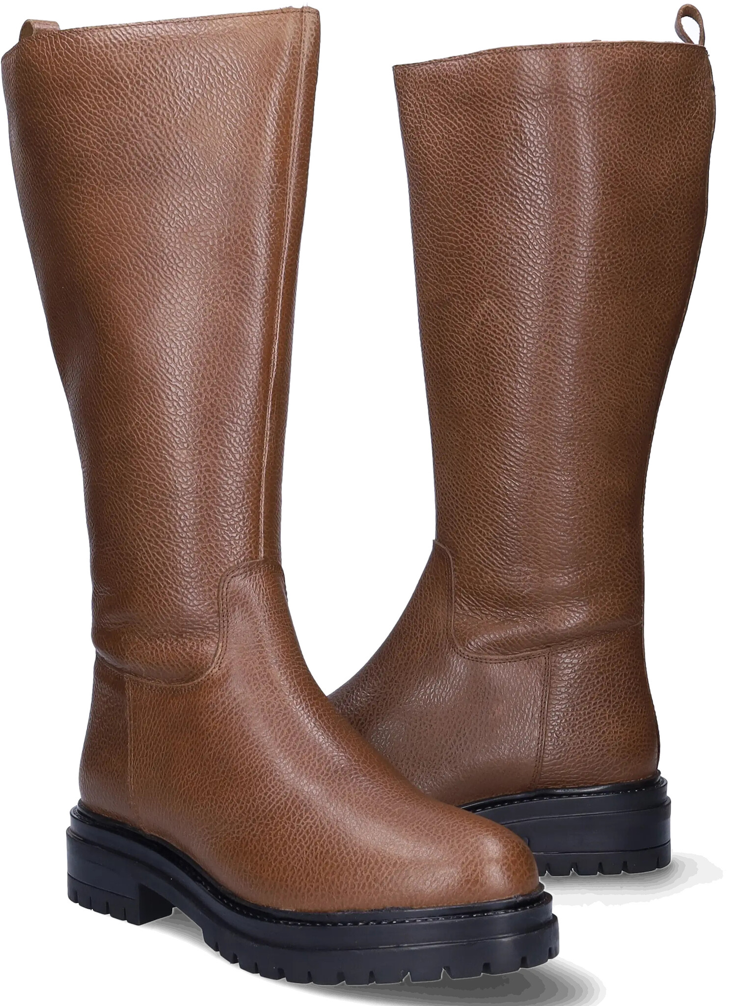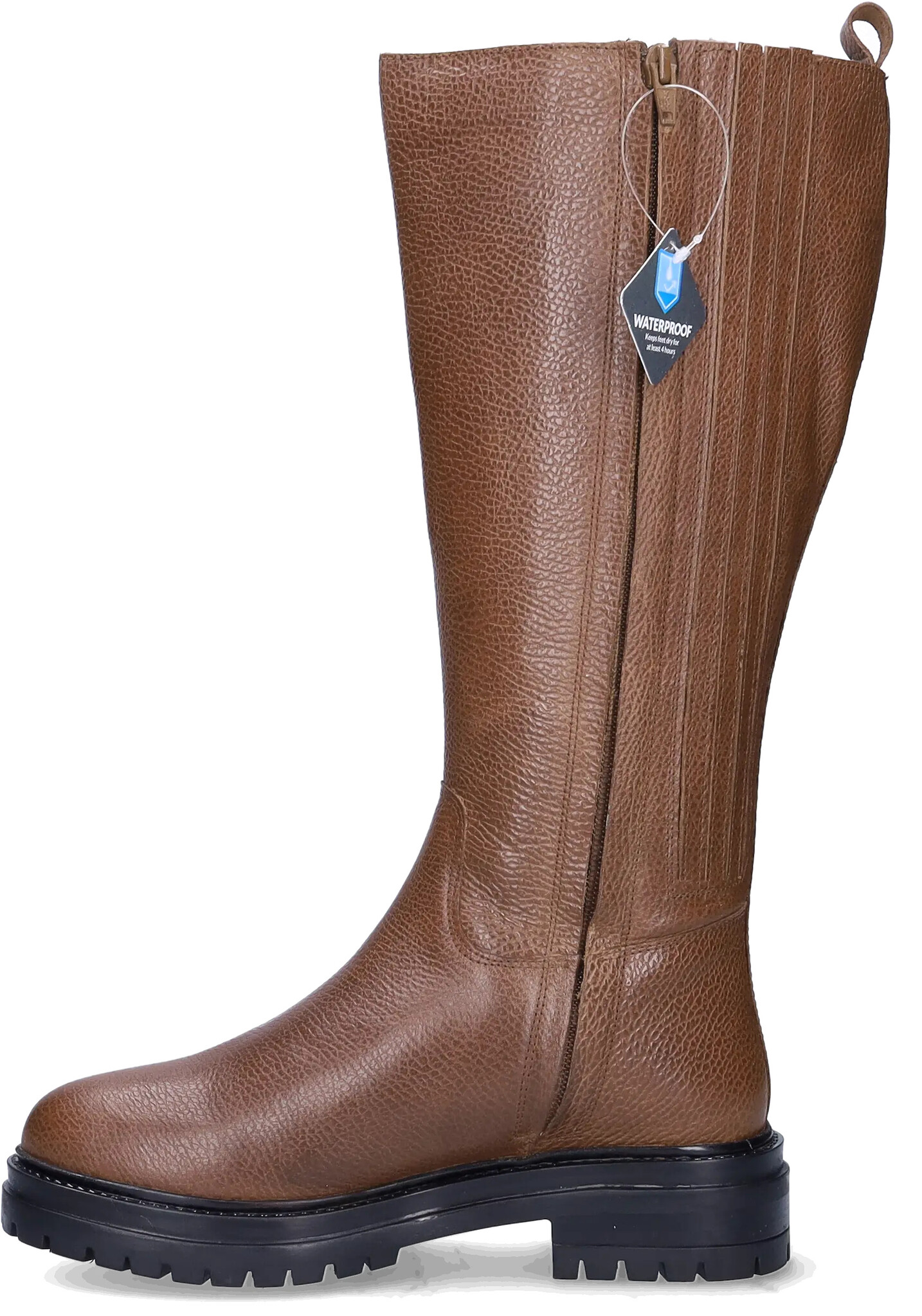 De cognac-kleurige Battle van volnerfleer is een dameslaars met extra brede schacht, voorzien van een stevige zool met diep profiel. Met elastische inzetstukken, een zijritssluiting en verwijderbare inlegzolen. Geschikt voor steunzolen