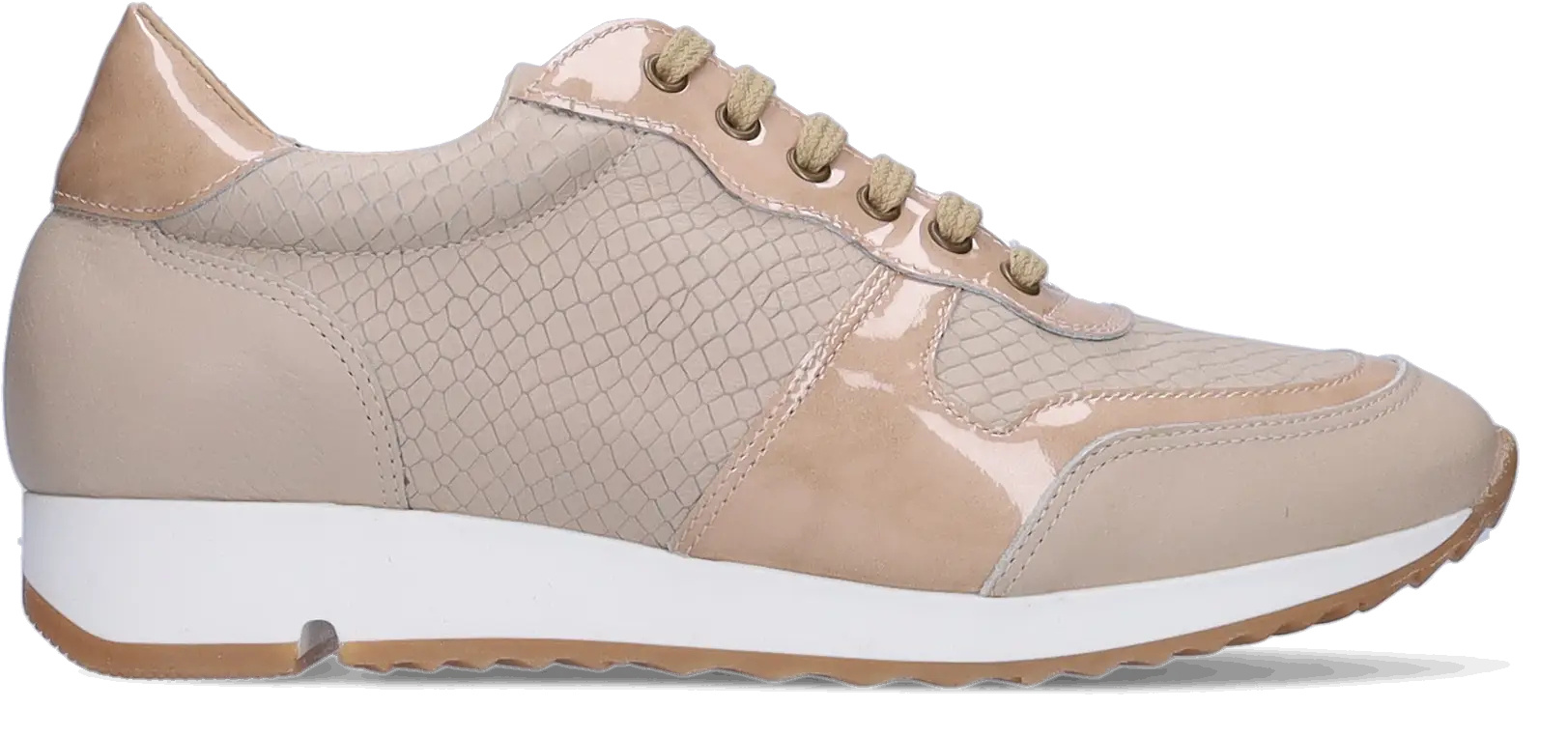 De stevige lederen Bermuda sneaker, beige en zandkleurig, is geschikt voor dames met brede voeten. Beschikt over reliëf aan de zijkant en en vetersluiting. Deze sneaker beschikt over een uitneembaar voetbed en is geschikt voor steunzolen.