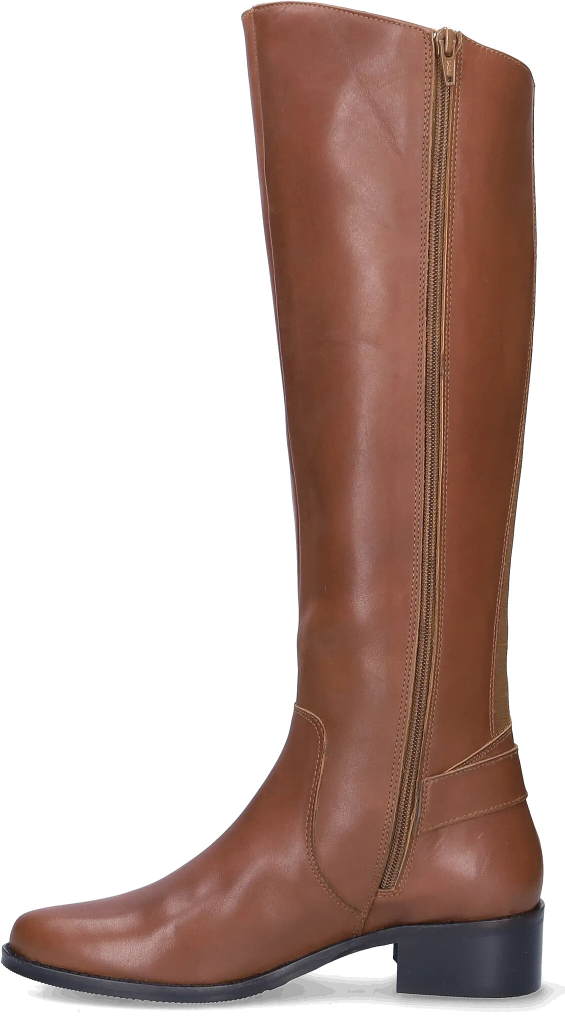 Botta is een klassiek model cognac kleurige, gladleren dameslaars met lage hak. Ontworpen met zowel een smalle als wijde schacht. Gemaakt van leer, met elastisch paneel aan achterzijde, afgeronde neus.