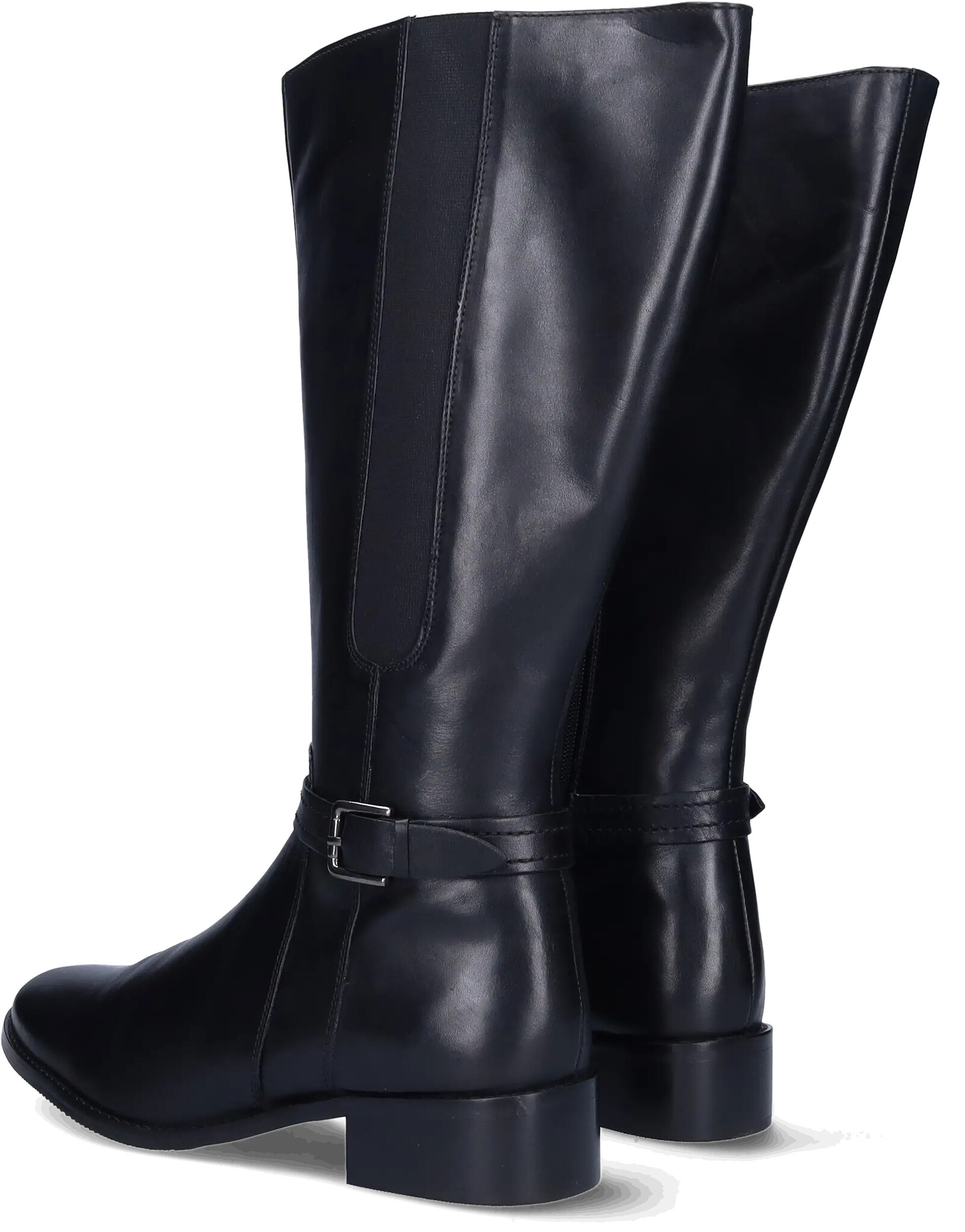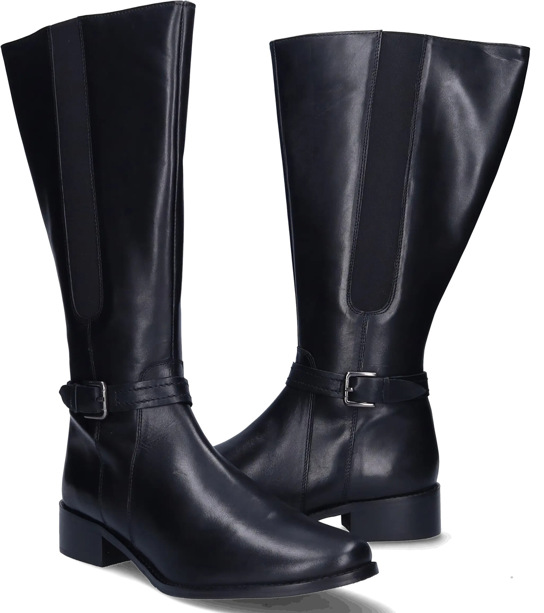 Calgary is een hoogwaardig leren zwarte laars met extra brede schacht. Beschikt over een leren band met gespsluiting op de enkel en een mesh inzetstuk voor een optimale pasvorm. pasvorm. Deze laars is voorzien van een ritssluiting, hak stevige rubberen zool en een verwisselbaar voetbed.