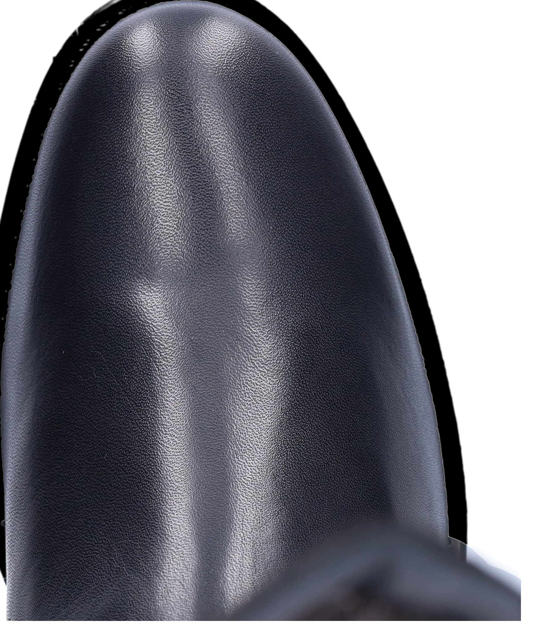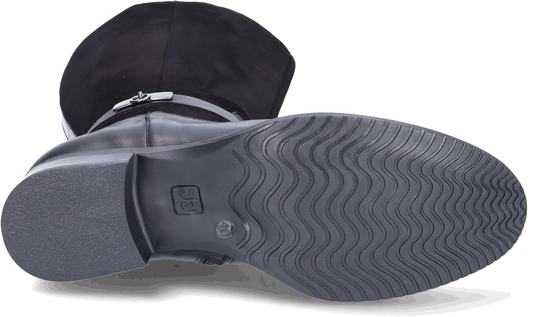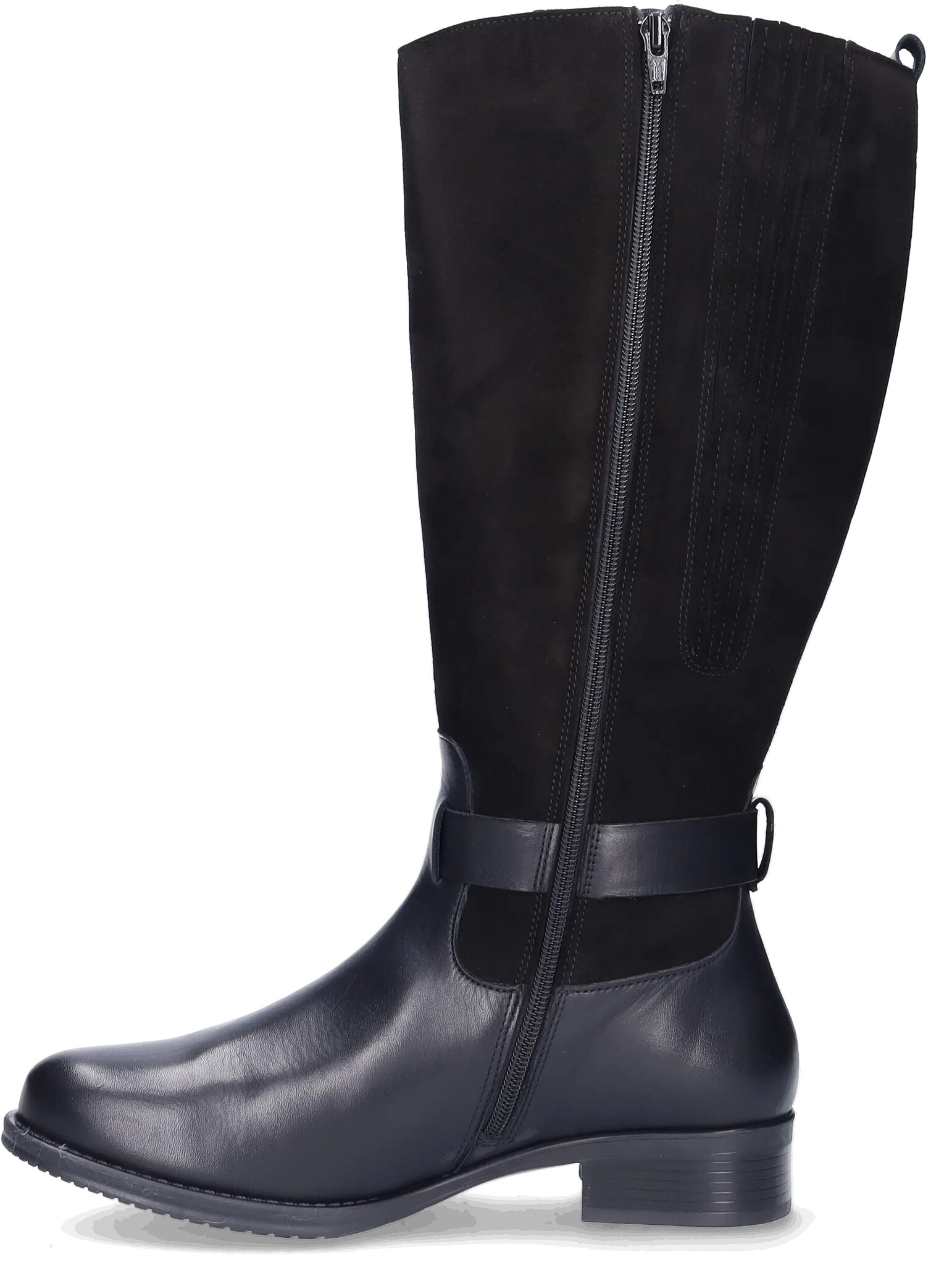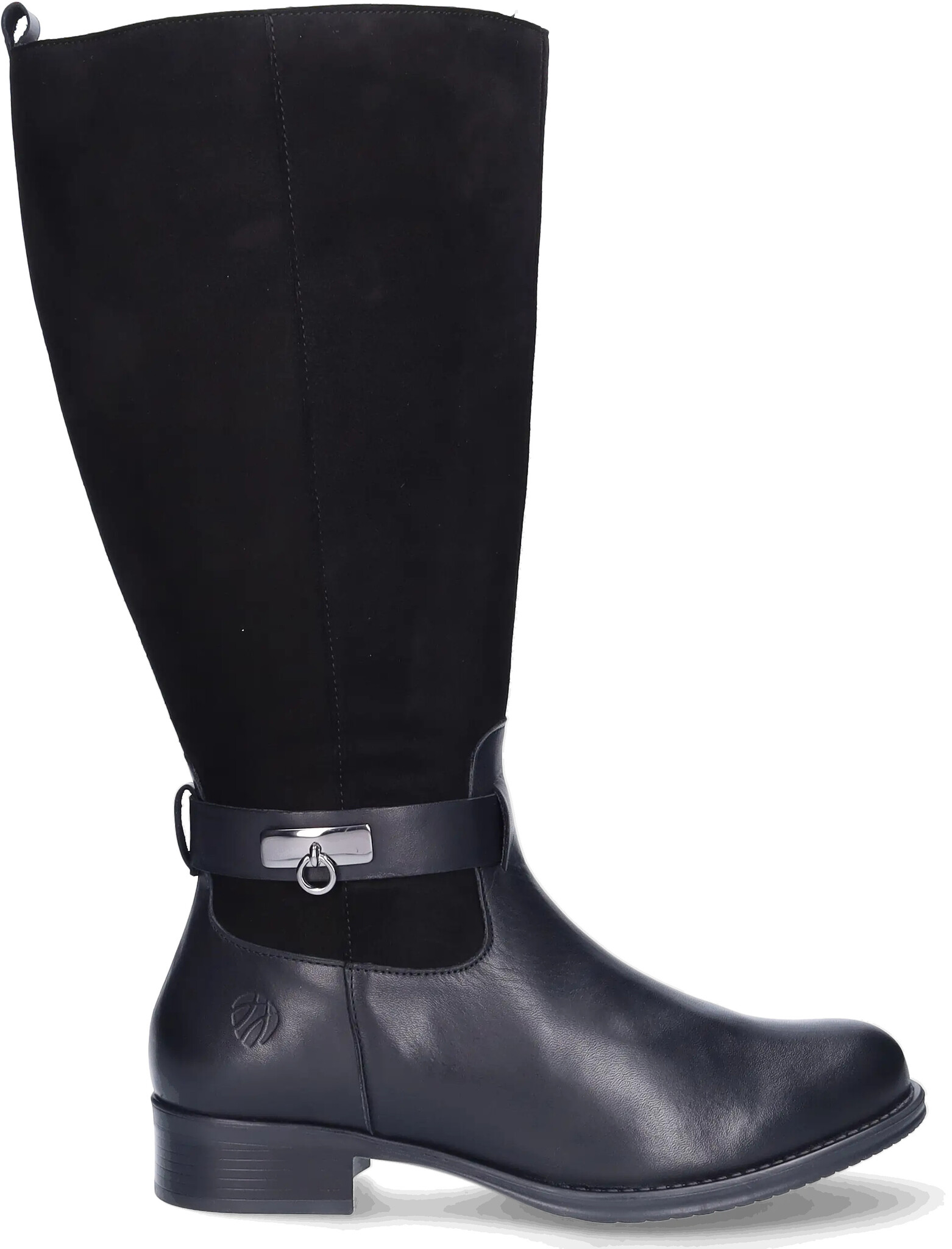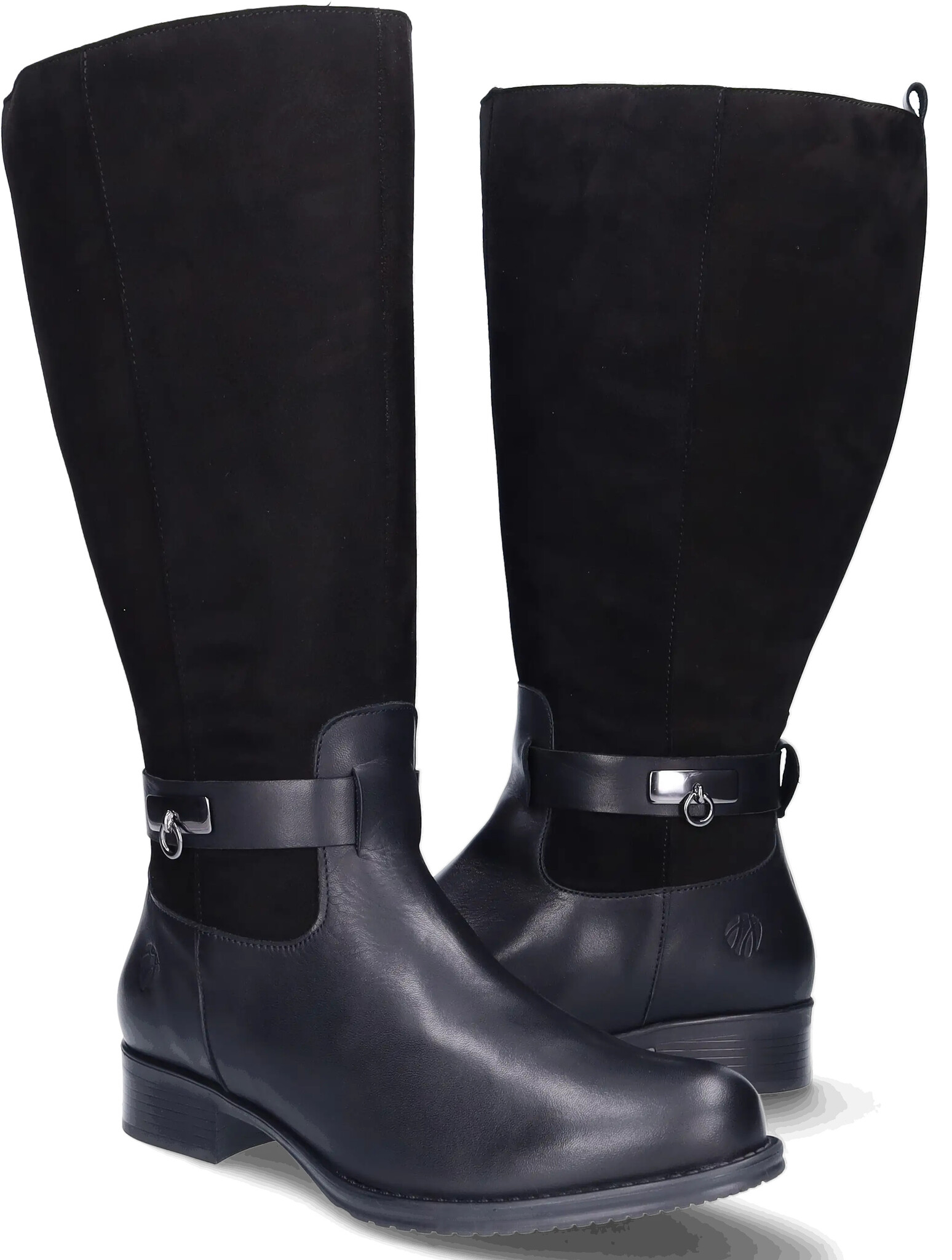 De groene Cheddar dameslaars met een brede schacht combineert glad leer met een suède schacht. Deze laars biedt een leren gesp rondom de enkel, een lage hak en een ritssluiting. Beschikt over een flexibele antislipzool en een verwisselbaar voetbed.