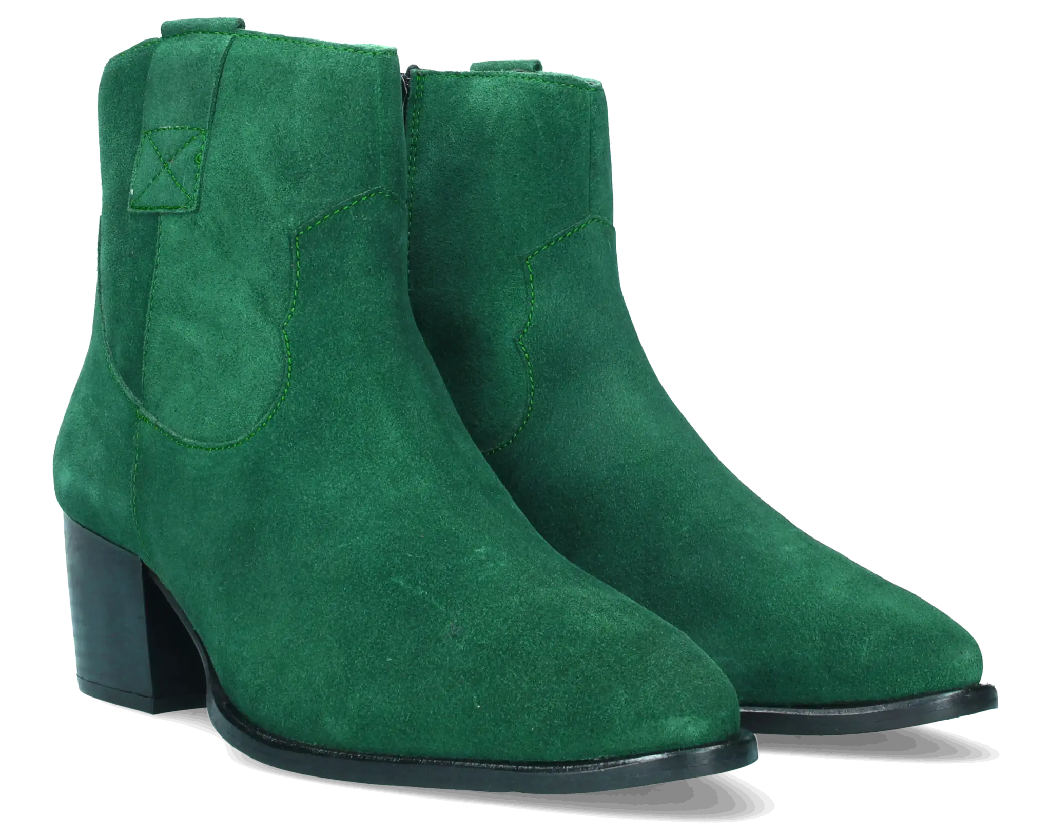Het Epirus enkellaarsje in groen suède combineert een modieuze uitstraling met optimaal comfort. Dankzij de lange rits en het uitneembare inlegzooltje trek je deze laars moeiteloos aan en uit. Het elegante hakje en zachte suède geven elke outfit een stijlvolle twist. Verkrijgbaar in diverse kleuren: groen, zwart, taupe en bordo. Ideaal voor dagelijks gebruik, zowel casual als gekleed