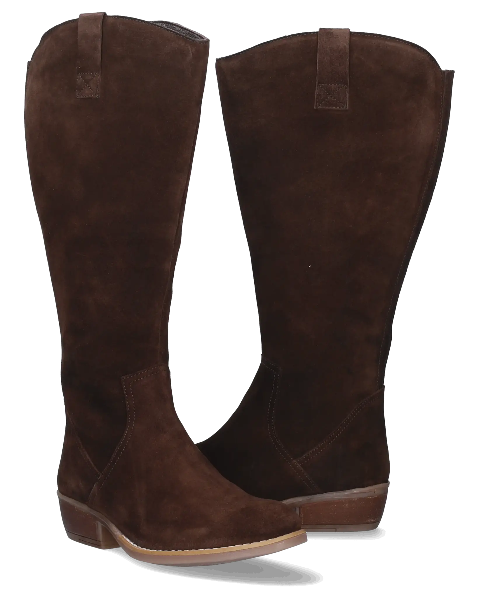 De Ferryhill is een stijlvolle suède extra brede schacht laars in een moderne cowboylaars‑stijl. Dankzij de lange ritssluiting die volledig tot onderaan opent, stap je eenvoudig in en uit. Het uitneembare voetbed zorgt voor optimaal draagcomfort en kan vervangen worden door eigen inlegzolen. Verkrijgbaar in diverse kuitwijdtes (M/L, XL, XXL, XXXL) zodat de laars voor ieder been perfect aansluit. De Ferryhill is beschikbaar in tijdloze kleuren als Zand, Jeans, Cognac, Zwart en Espresso. Ideaal voor een modieuze uitstraling met maximaal comfort.