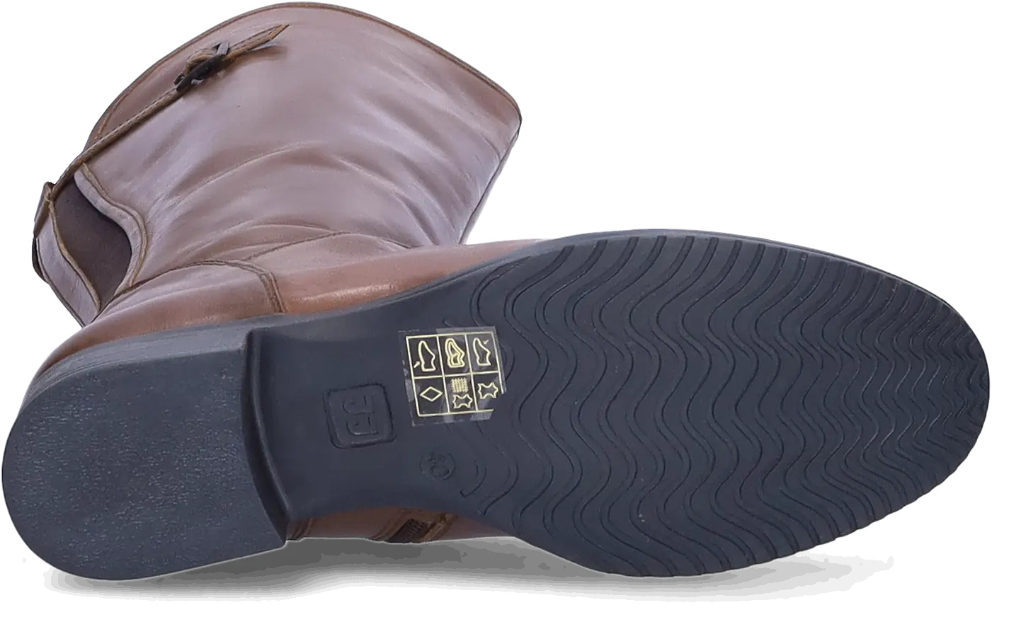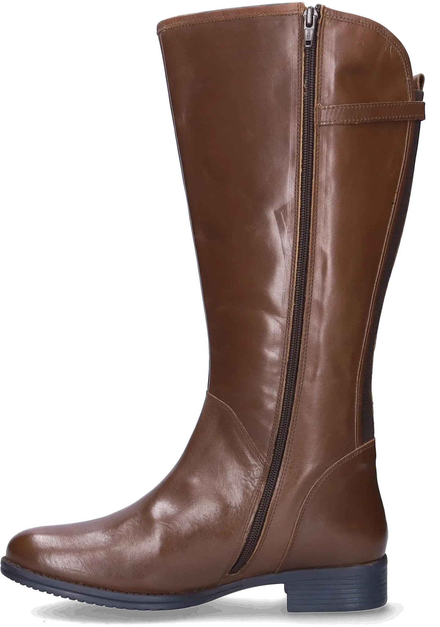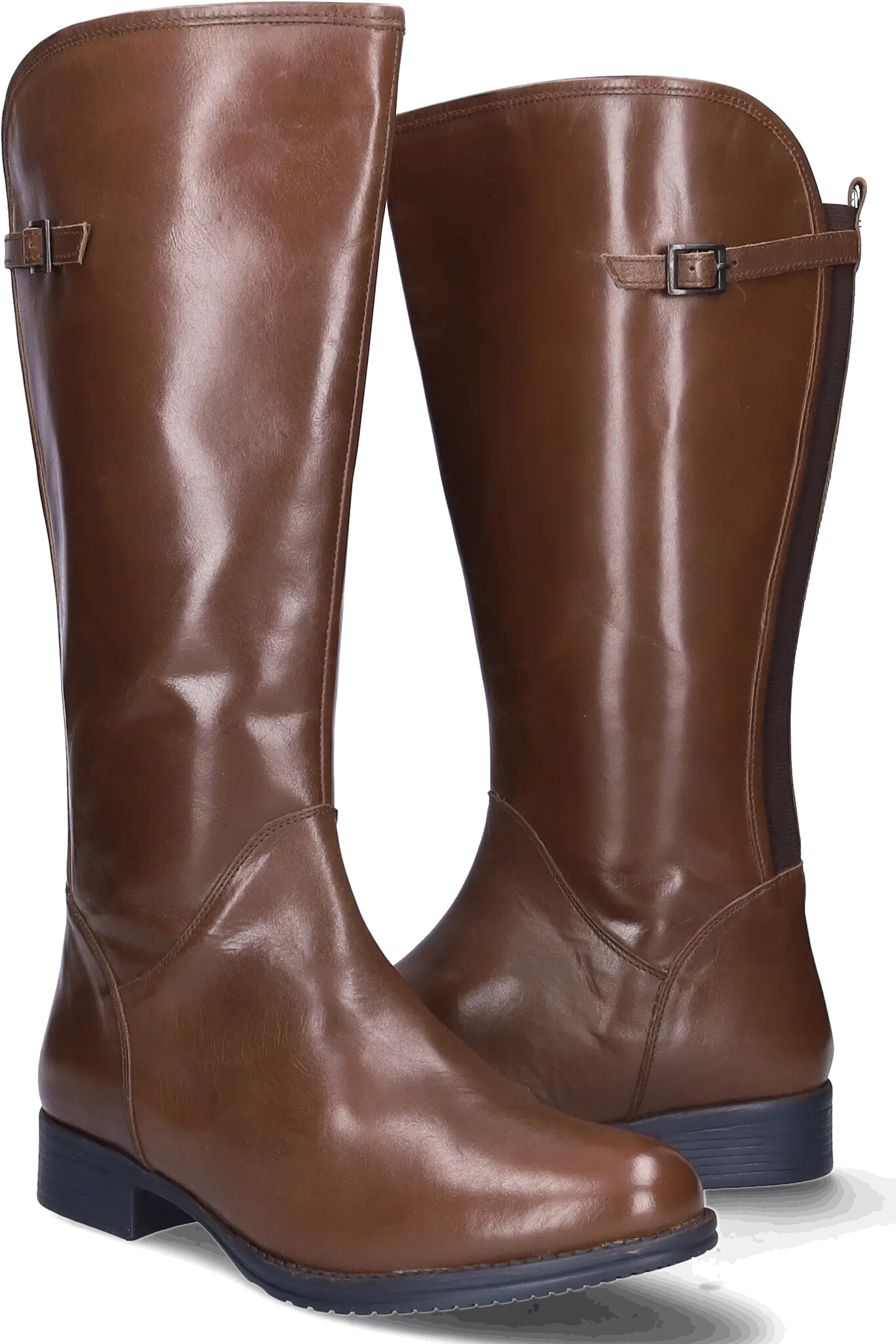 Kreta is een laars met brede schacht, gemaakt van zacht cognackleurig leer. Het is een verfijnde versie van de klassieke rijlaars, compleet met een stijlvol gespdetail. Dankzij de stretch-inzetstukken biedt de laars extra comfort en een flexibele pasvorm. De flexibele antislipzool zorgt voor stabiliteit en de uitneembare binnenzolen maken het mogelijk om steunzolen te dragen.