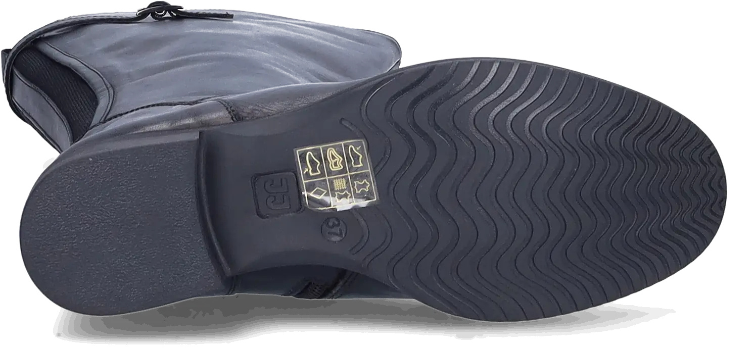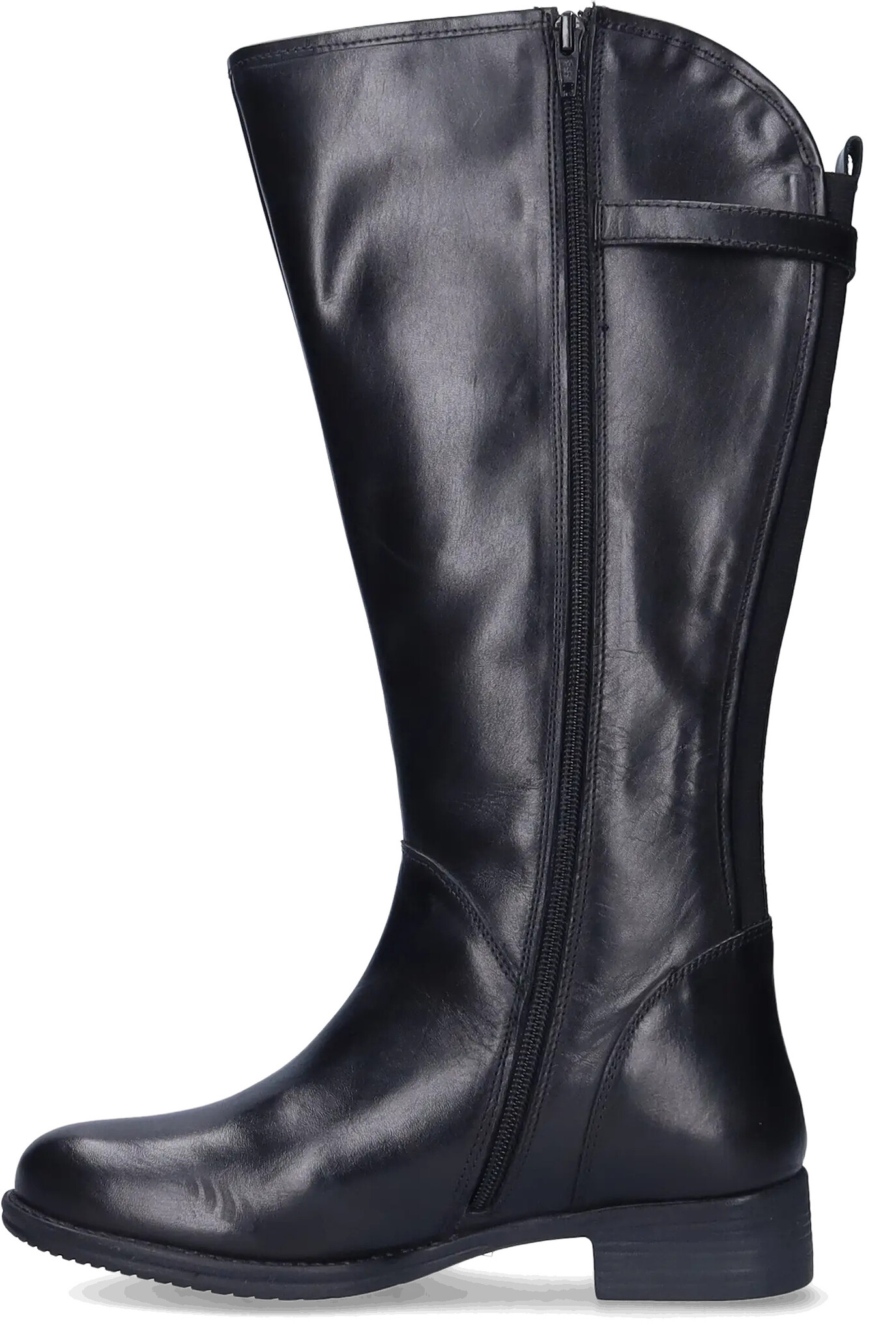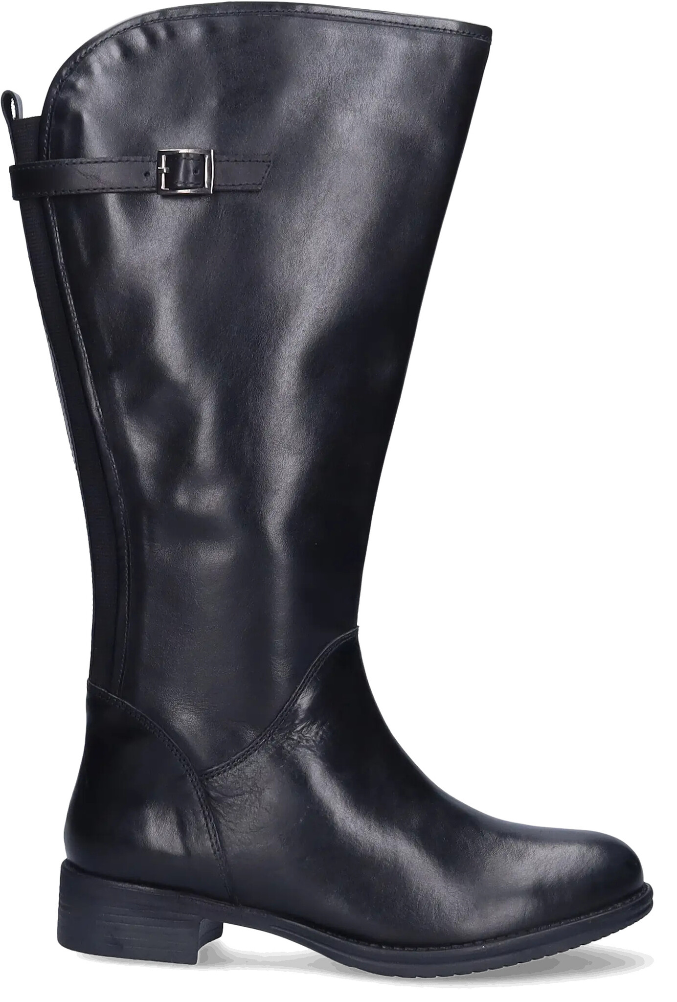 Kreta is een laars met brede schacht, gemaakt van zacht zwart leer. Het is een verfijnde versie van de klassieke rijlaars, compleet met een stijlvol gespdetail. Dankzij de stretch-inzetstukken biedt de laars extra comfort en een flexibele pasvorm. De flexibele antislipzool zorgt voor stabiliteit en de uitneembare binnenzolen maken het mogelijk om steunzolen te dragen.